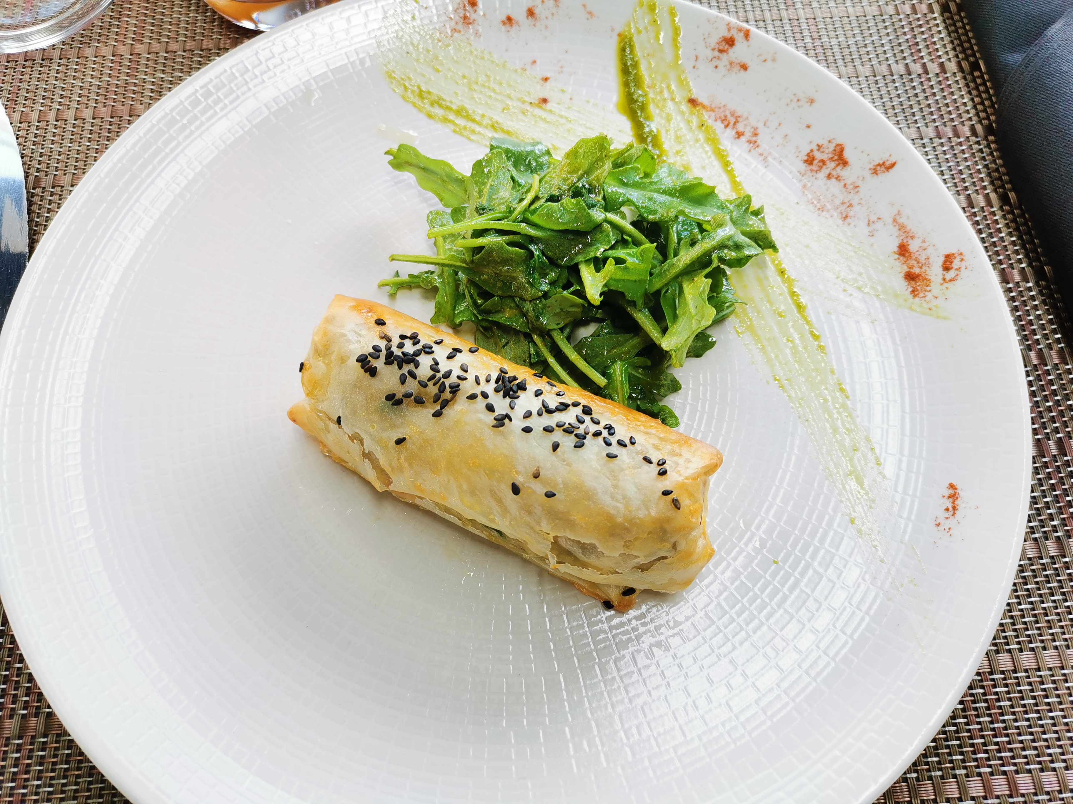 Pour l'instant on a fait que l'entrée. Le cadre est top . On entends les annonces de la cuisine ce qui n'est pas pour me déplaire et qui offre une expérience supplémentaire a cet entrée qui ma foi était excellente ,fraîche et goûtue. Hâte d'avoir le plat .