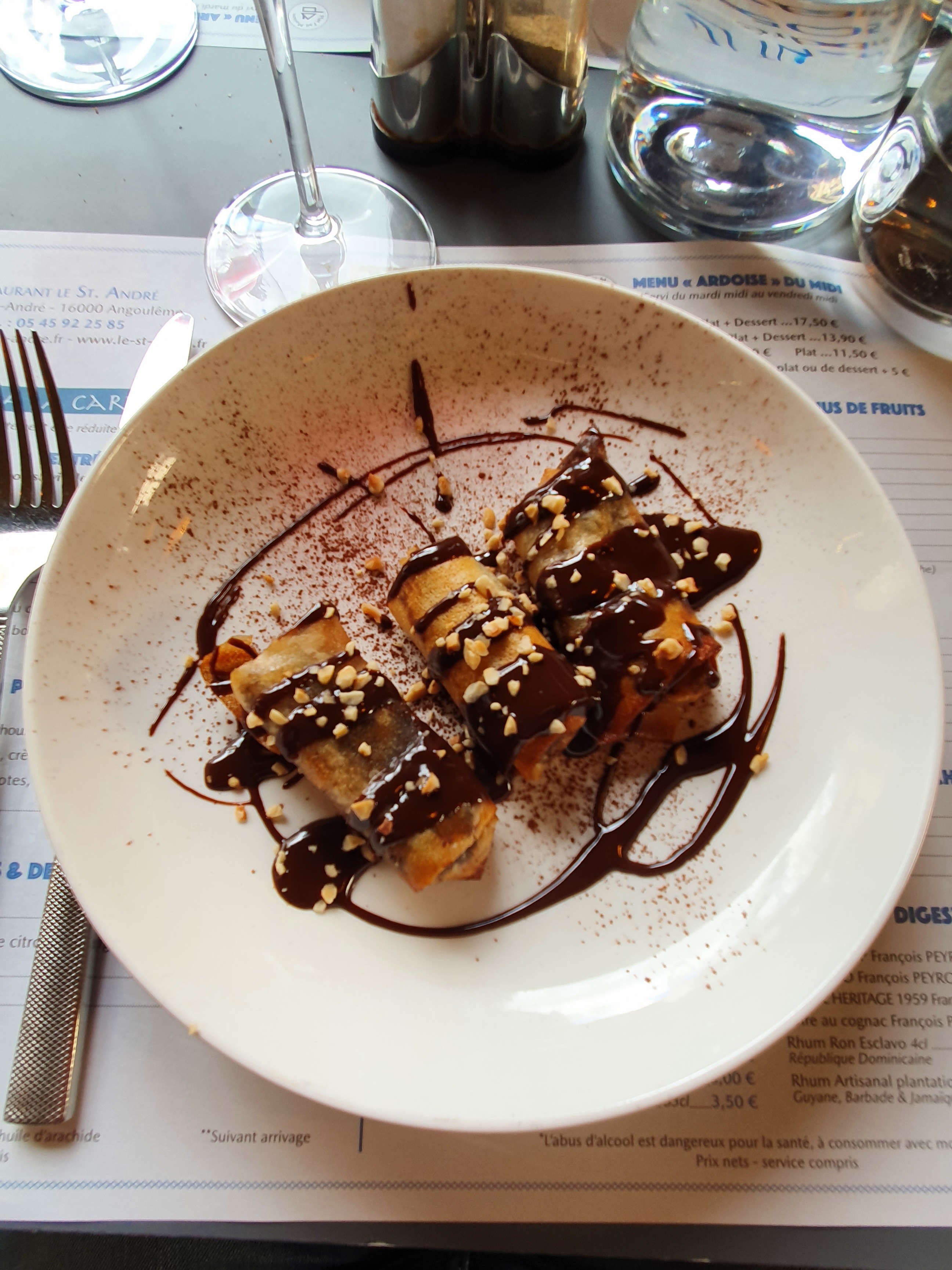 Pour un jeudi soir . Repas parfait. Le vieux pineau avec le foie gras ... un délice. Et le Concorde de chocolat léger et tellement bon.