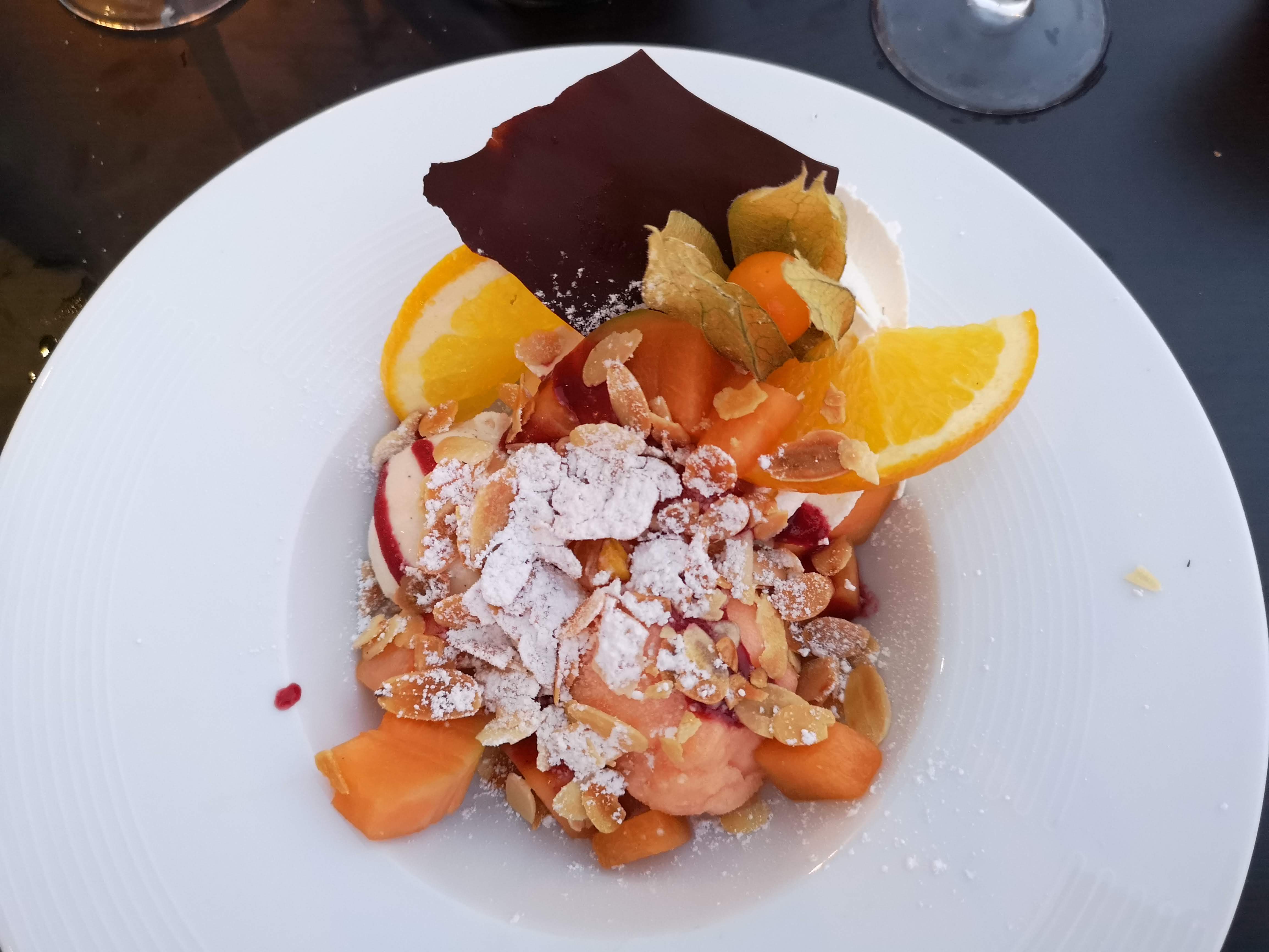 Un moment délicieux devant un décor de rêve ! Les fruits de mer et les huîtres gratinées : un régal ! Les loups grillés servis avec des légumes variés : délicieux ! Pour moi, malgré que je sois rassasiée, j’ai craqué pour les fruits frais coupés : j’ai bien fait ! C’était la petite touche de fraîcheur qui a clôturé ce repas parfait ! Quant à mon amoureux gourmand, il a craqué pour le vacherin … qu’il a adoré !!! Une très bonne adresse que je vous recommande 😃🩵🩵🩵
