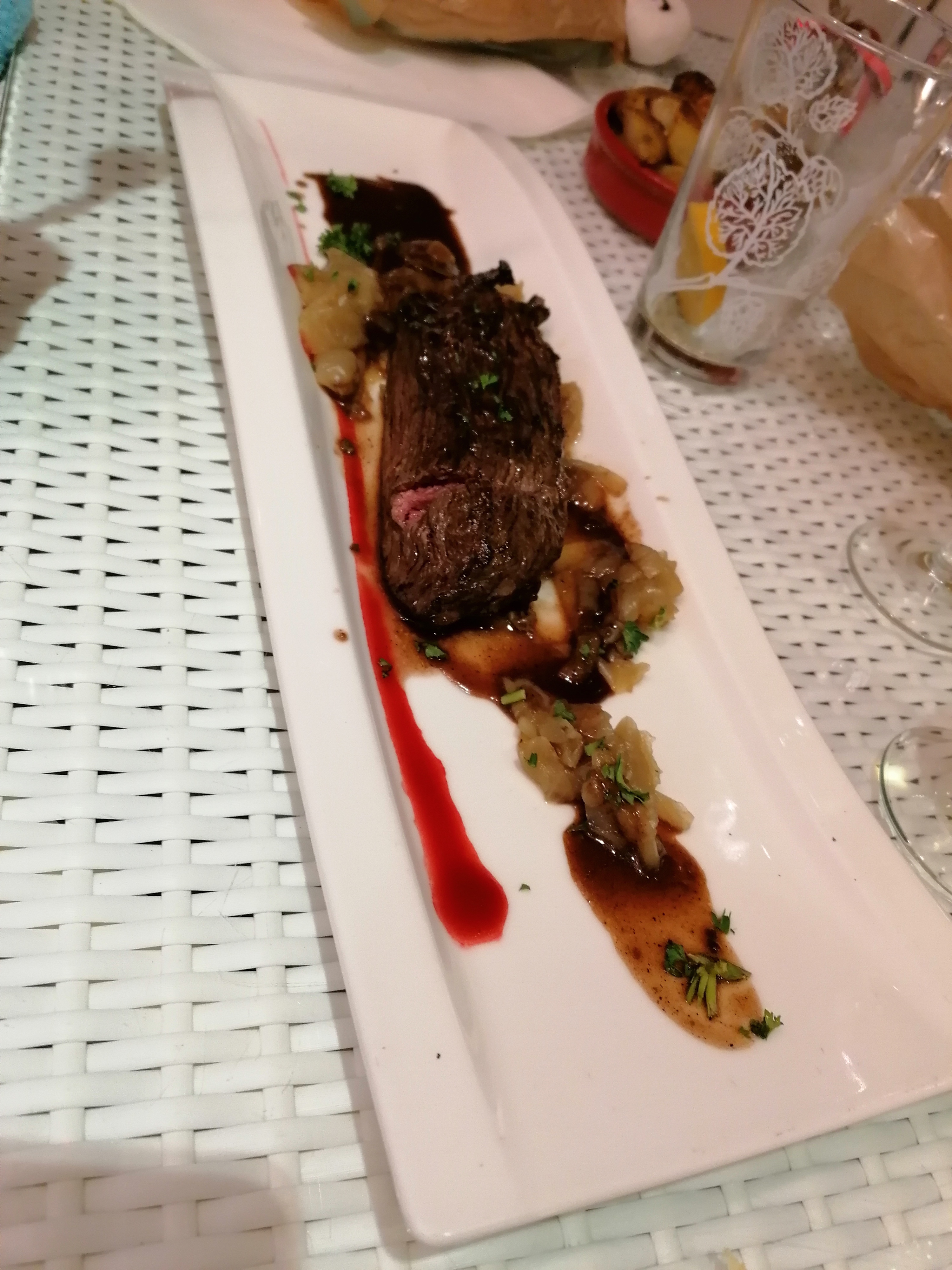 Même moi je cuisine mieux: pièce du boucher dont on attend une meilleure qualité, les moules marinières n'en avaient que le nom (pas de sauce dans la casserole) et surtout 2/3 des coquilles étaient vides. La carafe d'eau est remplacée par une bouteille en plastique donc un doute sur l'hygiène et les faisselles en dessert semblaient venir du destockage d'un lidl (pas certain de la fraîcheur ou de la date de péremption)