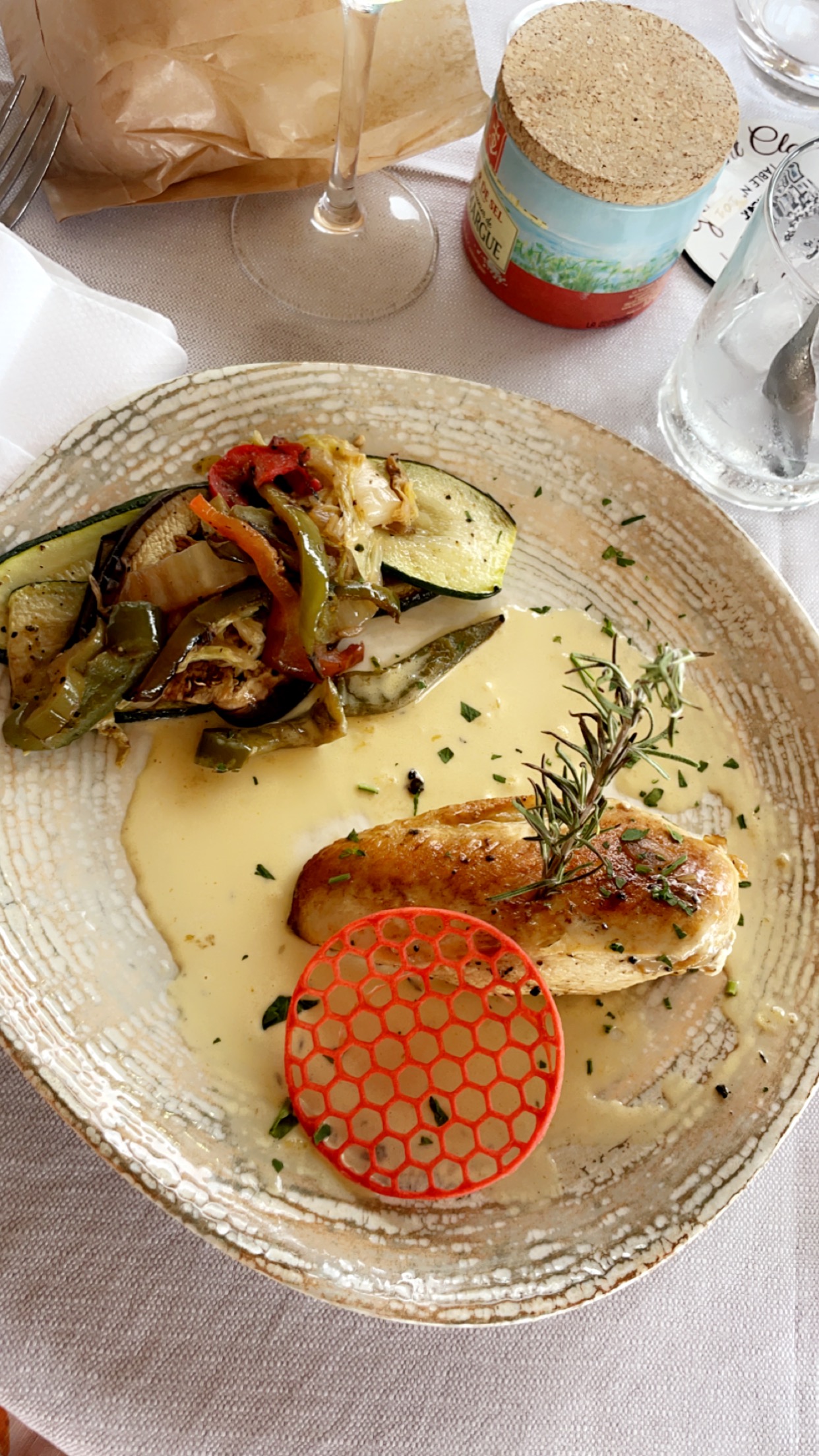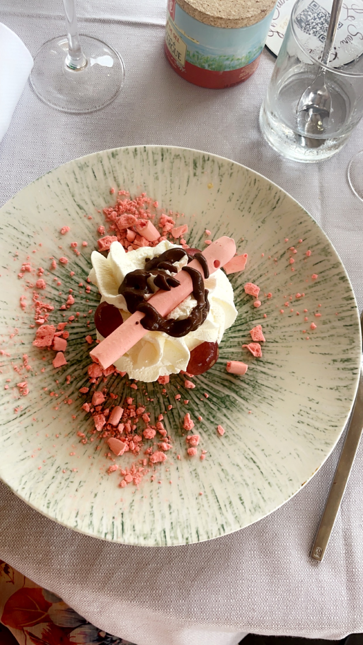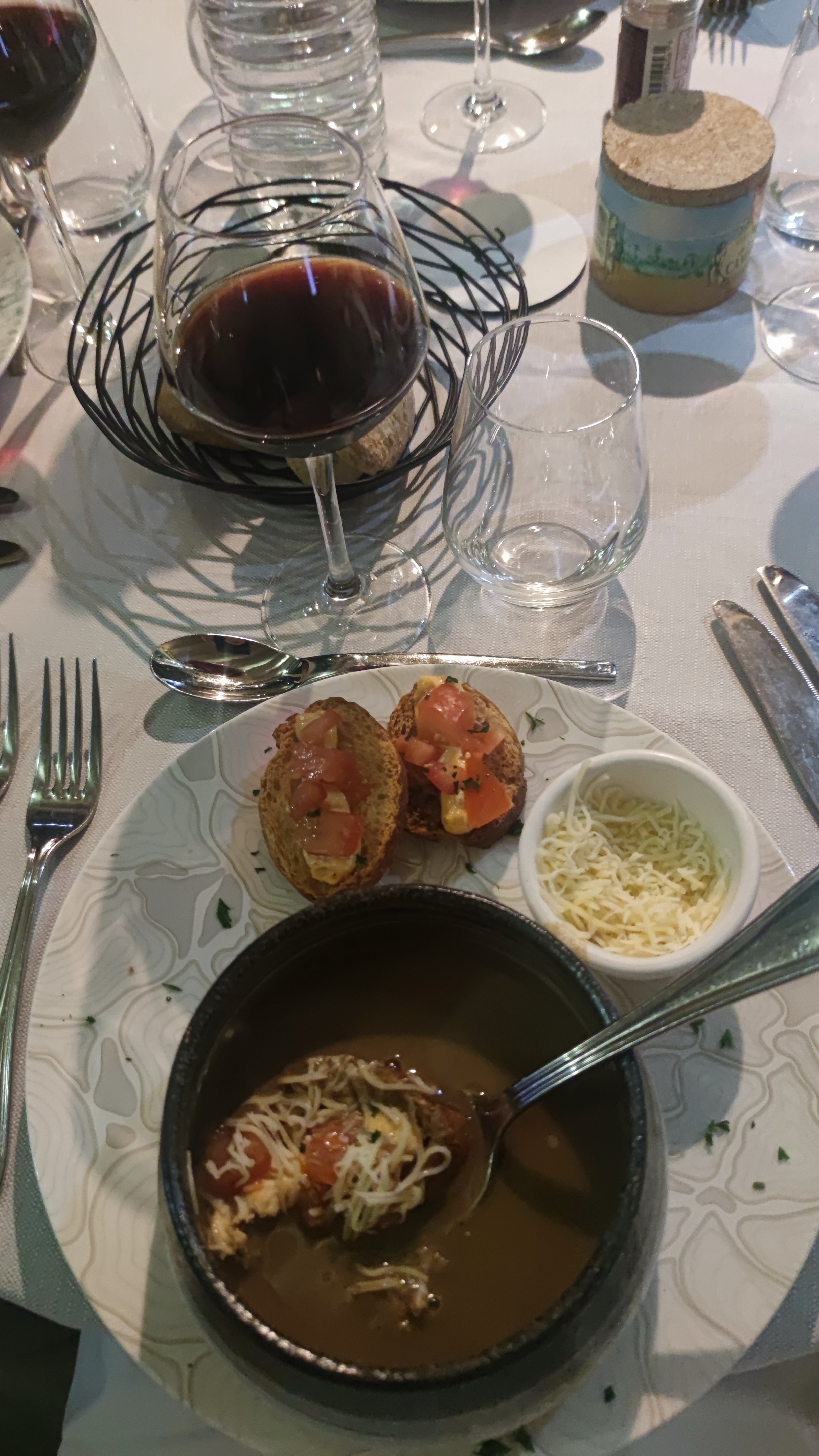 Aucune vue sur l’étang à cause de pluies diluviennes. Mais un super repas avec un service irréprochable. Sans oublier, cerise sur le gâteau, le sourire de Juliette. On reviendra quand il fera beau.