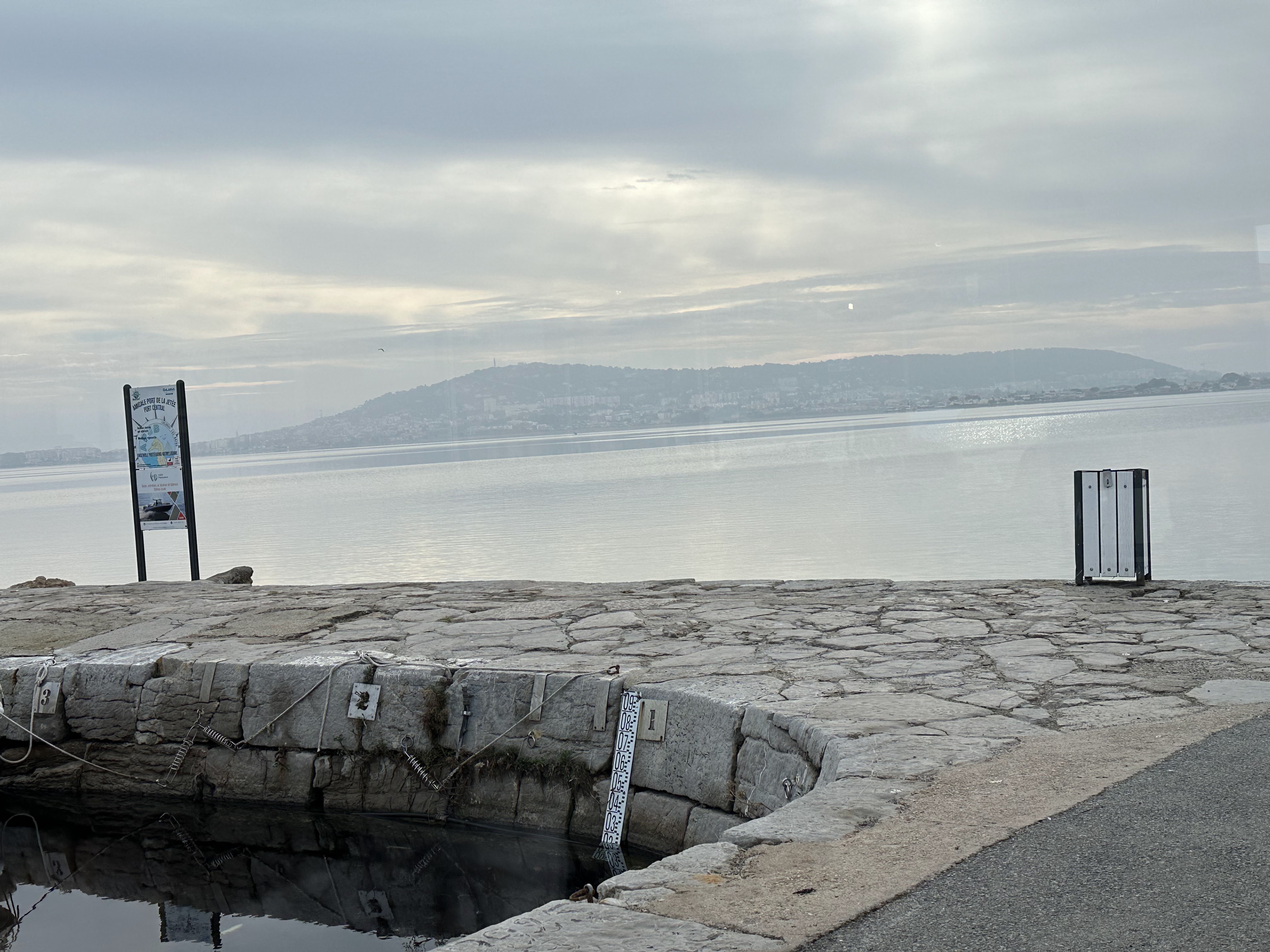Au bout d’1 h 50 minutes d’attente après la prise de commande à la partie brasserie (des moules marinieres… rien de compliqué), toujours rien. La gentille serveuse m’avait apporté très vite un verre de vin et du pain puis a disparu. Ensuite ? J’ignore. Jolie vue sur la lagune de Thau.