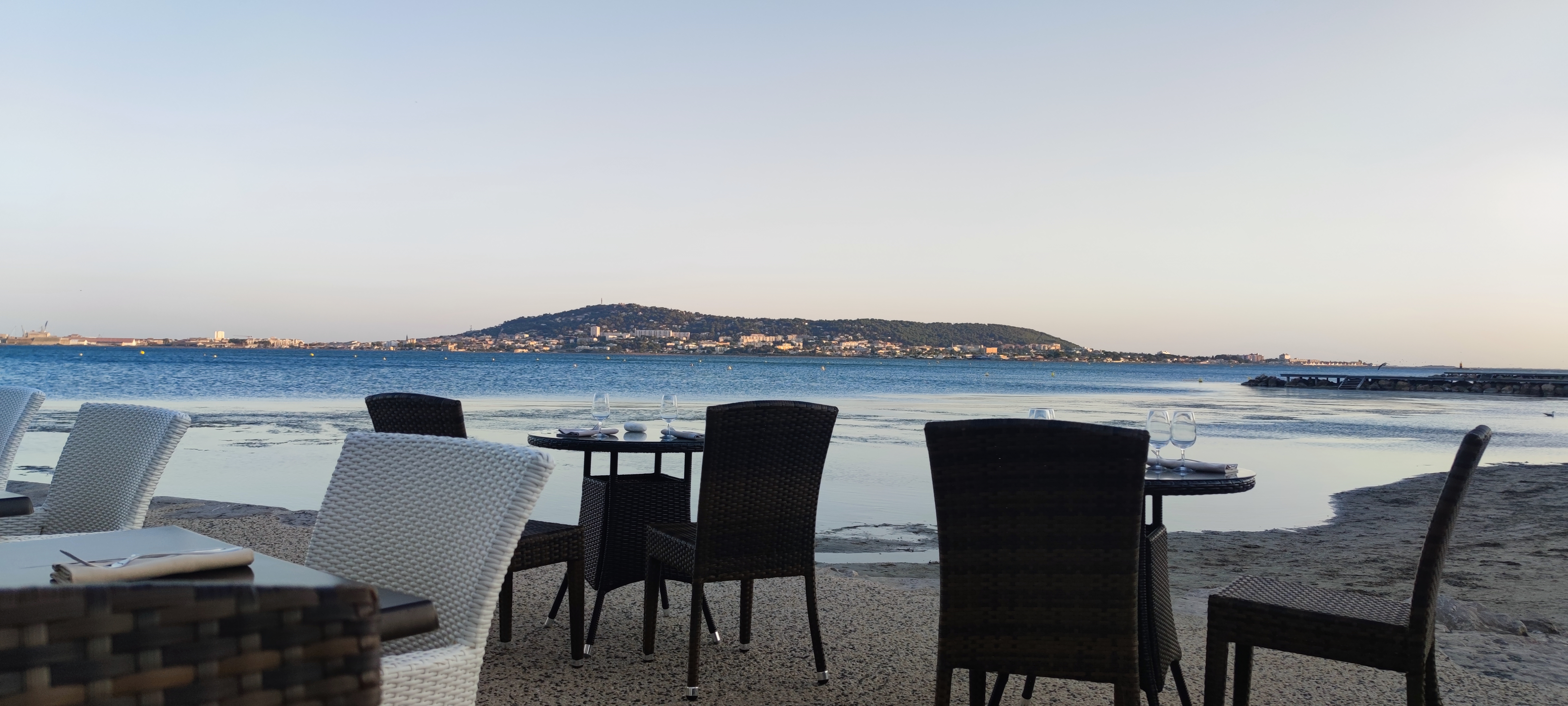 Lieu féerique. Réservez plutôt le soir, une table en bordure de terrasse pour voir le coucher du soleil ☀️ sur l'étang de Thau puis les lumières s'allumer sur le mont saint clair. Carte non pléthorique mais choix gourmands, gourmets. Vins de la région Service au petit soin Ambiance feutrée Nappe et serviettes en tissu qui ajoutent a l'impression de qualité qui se dégage de l'ensemble. A faire Refaire Partager avec famille et amis