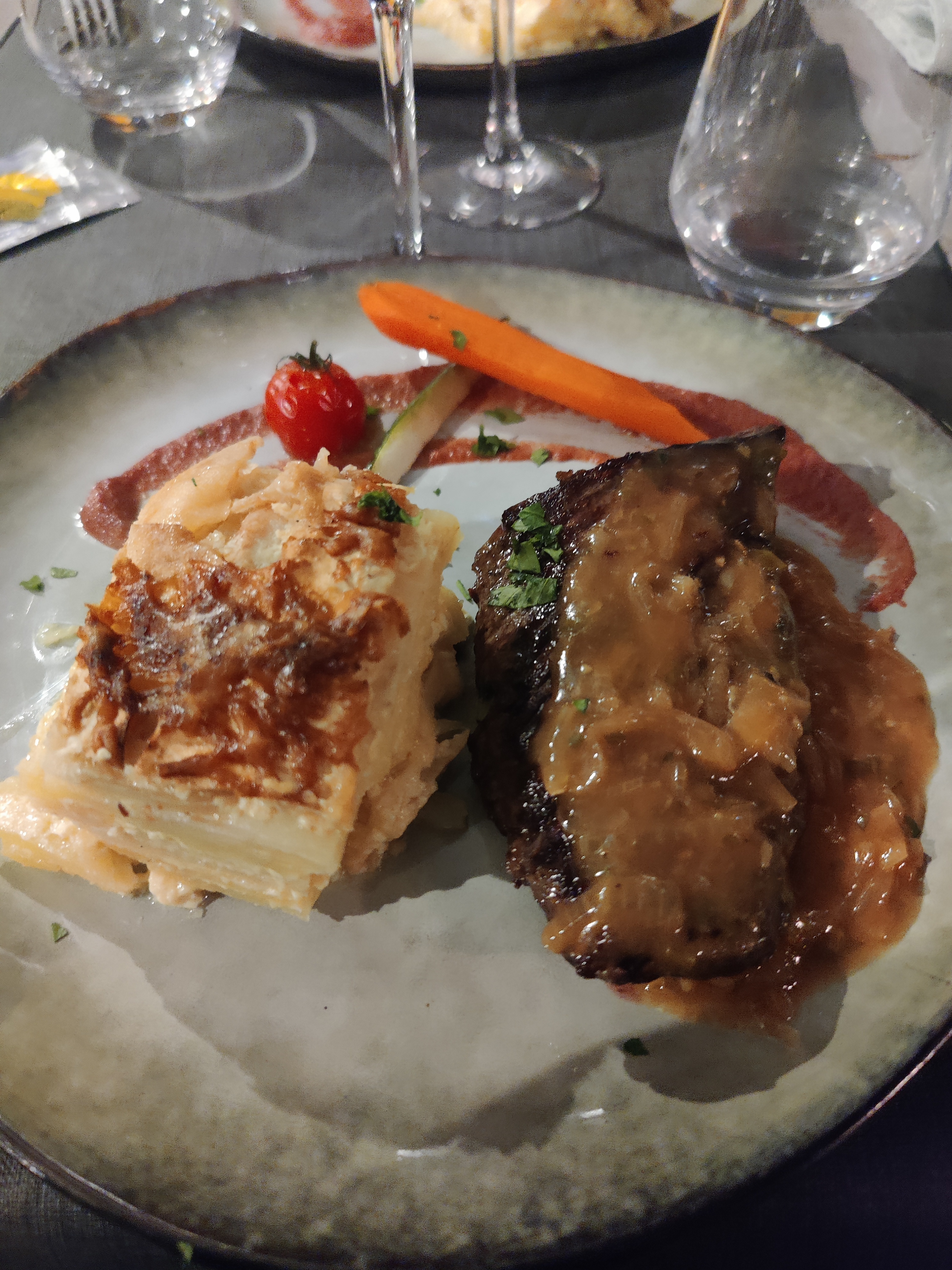 Exceptionnel pour un si petit village d avoir un si bon restaurant. De l accueil aux menus tout est fait pour satisfaire la clientèle. Ce jour là nous avons mange le T-bone de veau. Trop bon !
