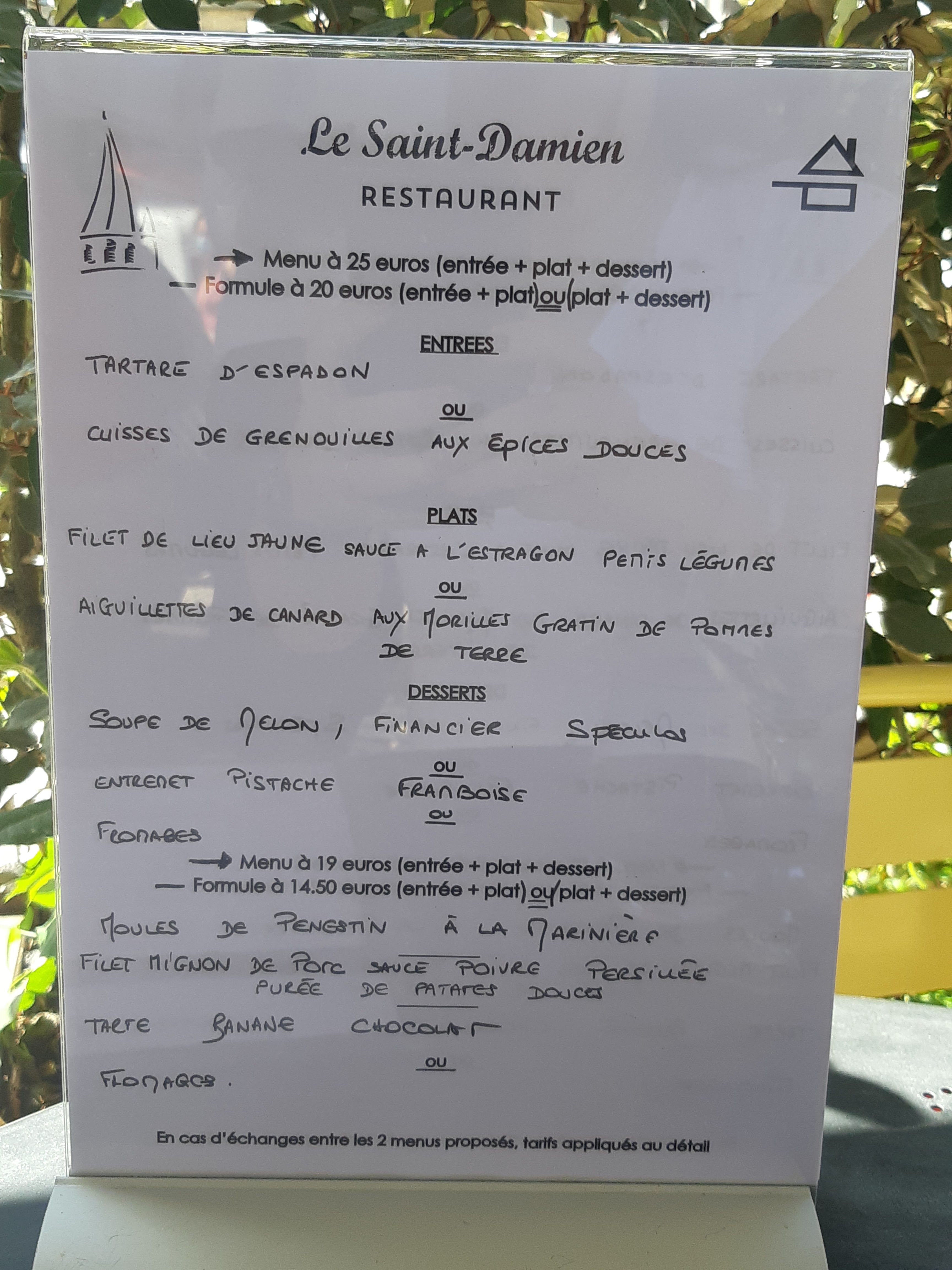 Une excellente adresse dans un très beau village. A notre arrivée un accueil avec le sourire, une table bien dressé avec serviettes en tissu. Les entrées, foie gras et assiette de la mer avec une belle présentation. Les plats,cote de veau cuite comme il faut ainsi que le cabillaud avec des accompagnements travaillé avec des produits frais. A ma demande une assiette de fromages avec trois différents. Les desserts étaient aussi bons et bien travaillé que tout le repas . Pour les petits bémol service un peu rapide mais néanmoins très agréable et attentionné, pour l'apéritif aucun accompagnement et enfin une petite erreur sur l'addition contant 4 menus à 32€ au lieu de 3 et un à 25€ . Nous étions content d'inviter ma sœur et notre beau frère au saint Damien et nous y reviendrons avec grand plaisir. Merci a toute l'équipe