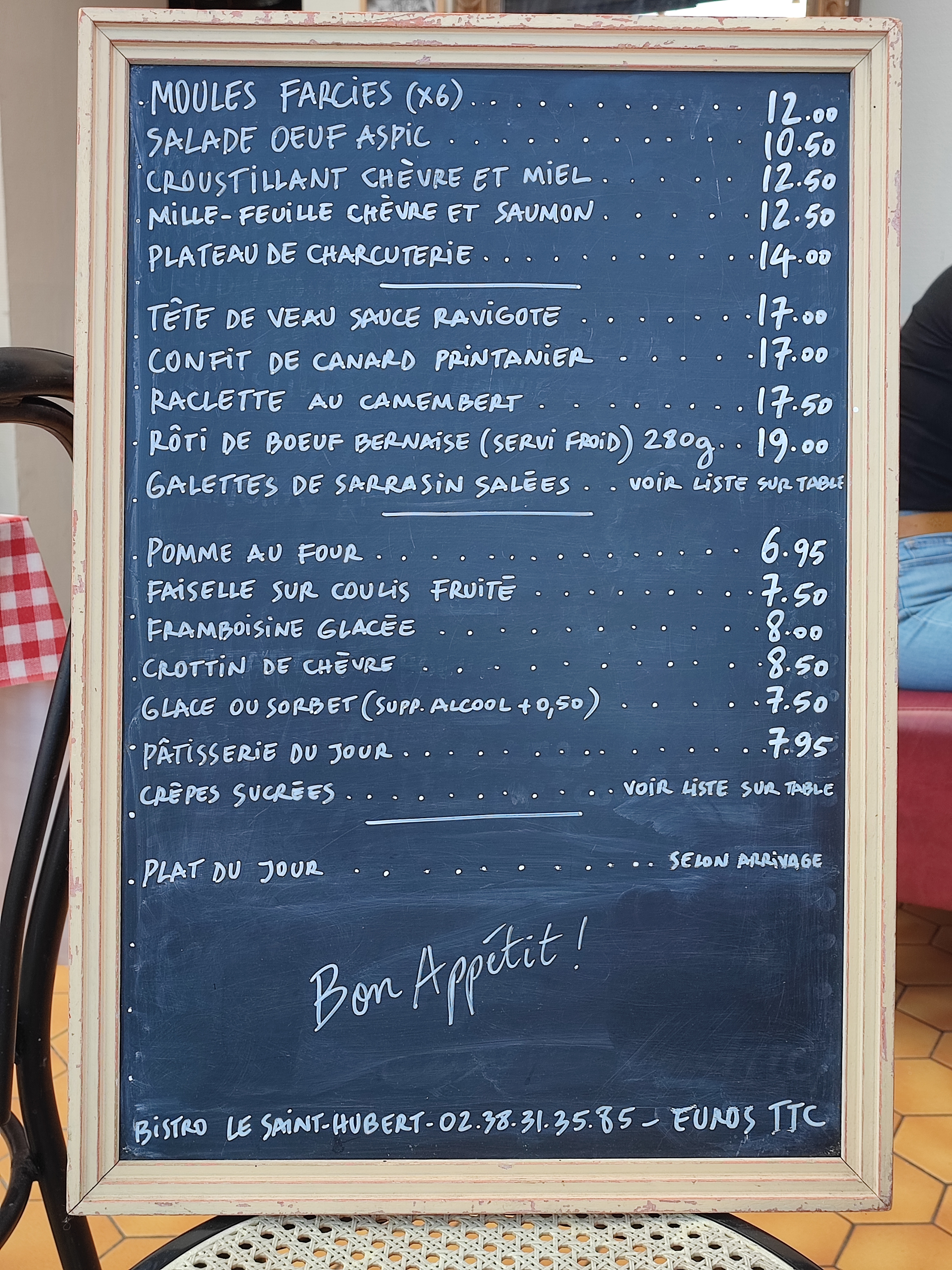 Nous avons bien mangé, tête de veau et camembert rôti. Serveur agréable, souriant, même s'il était seul pour une salle pleine. Entrée plat dessert à la carte. Merci pour ce bon moment.