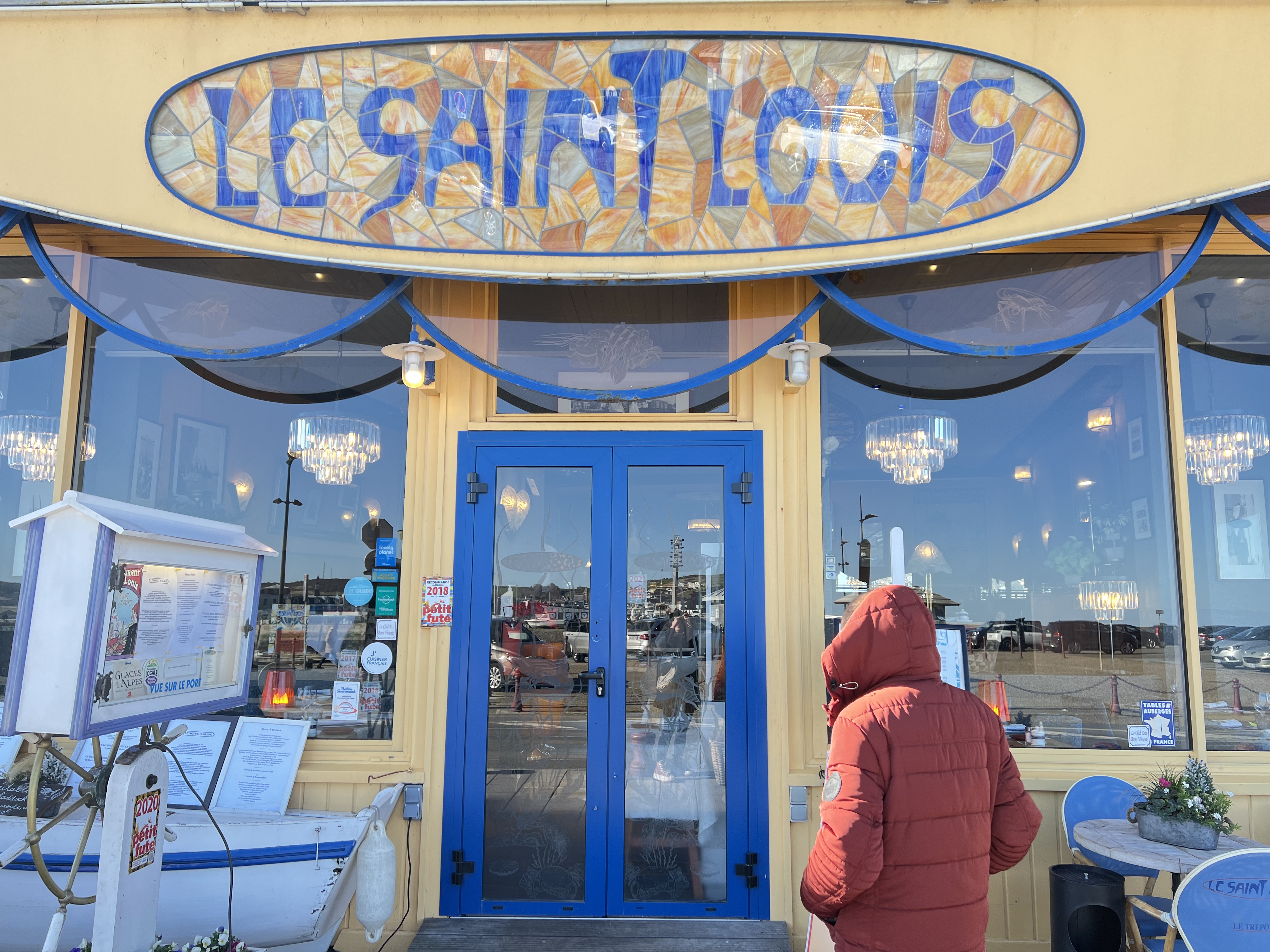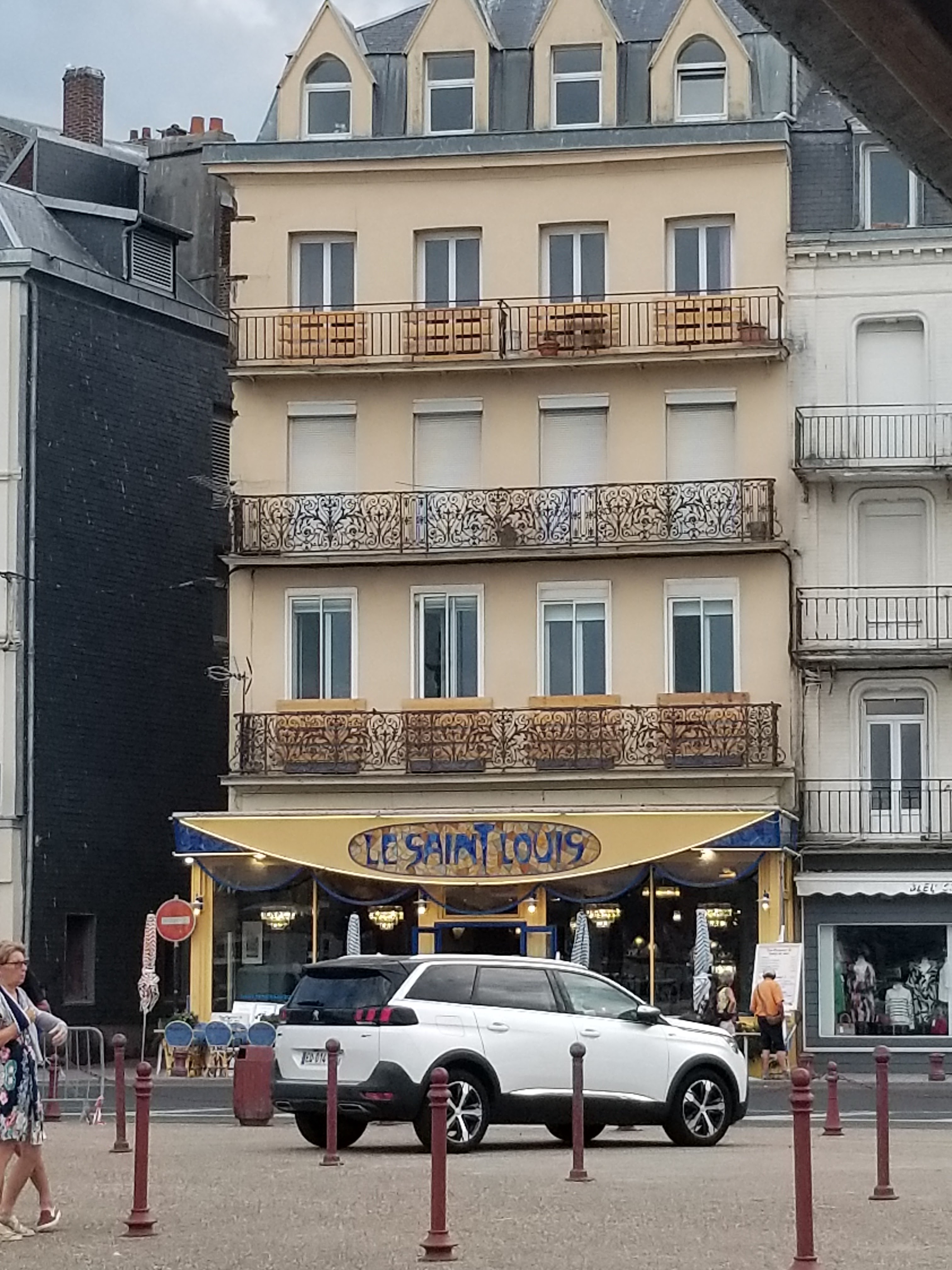 J'y suis passé le samedi 27 avril, nous avions réservé pour 2. Que dire, 2 serveurs pour l'établissement, identifiés comme tels, et 2 autres.. Nous avons pris 2 menus à 27 €, et avec 1 verre de vin blanc, 1 apéro, 1 carafe d'eau, 1 coca, 2 cafés, nous sommes montés à plus de 82 €. La veille, dans 1 établissement voisin, 2 menus à 37 €, les mêmes types de boissons et un total de 89 €. Ici, ils vous tuent avec les boissons. De plus, on nous a apporté la note sans qu'on l'a demande, ça et dire dégagez, c'est pareil. Autre chose, j'ai pris un soupe de poisson, honnête, sans plus, la pièce de viande et ses petits légumes, la pièce de viande mince, les petits légumes portaient bien leur nom : 2 pommes de terre grenaille, 1 demi carotte taillée, 1 cuillère à soupe de quinoa ! Et une branche de brocoli, quant à la farandole de sorbets, elle se limitait à 2 boules. La suite m'a franchement déplu. Vers 13h45, 1 couple anglophone avec 2 enfants entrent. Le serveur leur annonce d'un ton sec en français ' pas de menu, à la carte maintenant, trop tard'. Puis il revient prendre la commande en tapant sur son poignet à l'endroit où l'on porte la montre genre, 'grouillez-vous'... Comment dans 1 restaurant d'une ville touristique, personne ne parle anglais ou du moins fait preuve de gentillesse envers les étrangers non francophones. Personne n'a essayé d'aider ce couple, sauf les presser. Pour conclure, je n'irai plus au Saint-Louis et je ne le recommanderai à personne. À éviter donc.