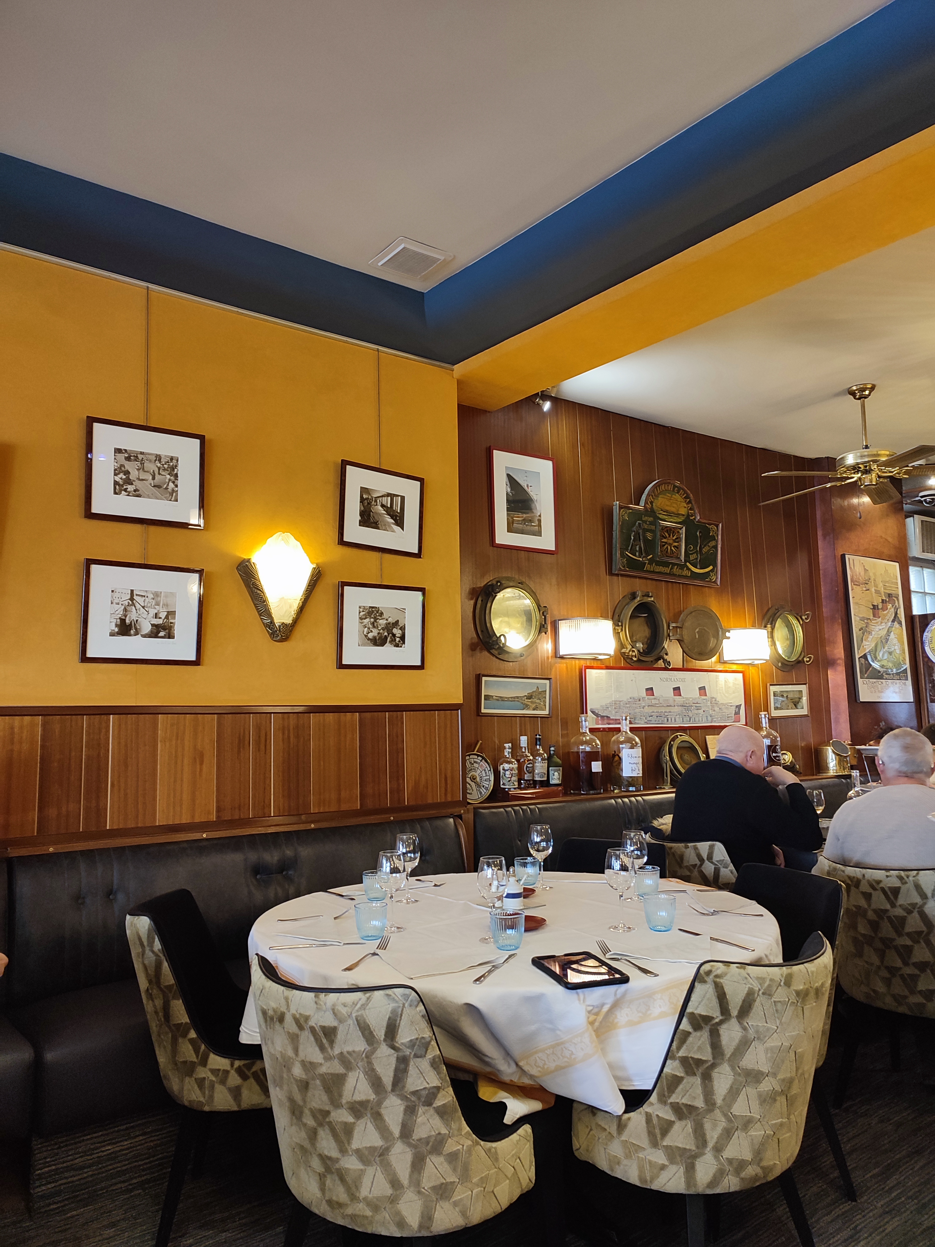 Accueillis sans réservation (pour le dîner, en semaine). J'étais dessus de ne pas retrouver le menu à 25 euros proposés le midi. Ce n'est pas l'un des plus abordables du quai mais la cuisine y est soignée et élaborée. Il aurait été souhaitable que les verres et décoration de table soient propres. En résumé, je m'attendais à mieux niveau cadre et service mais la cuisine est vraiment top.