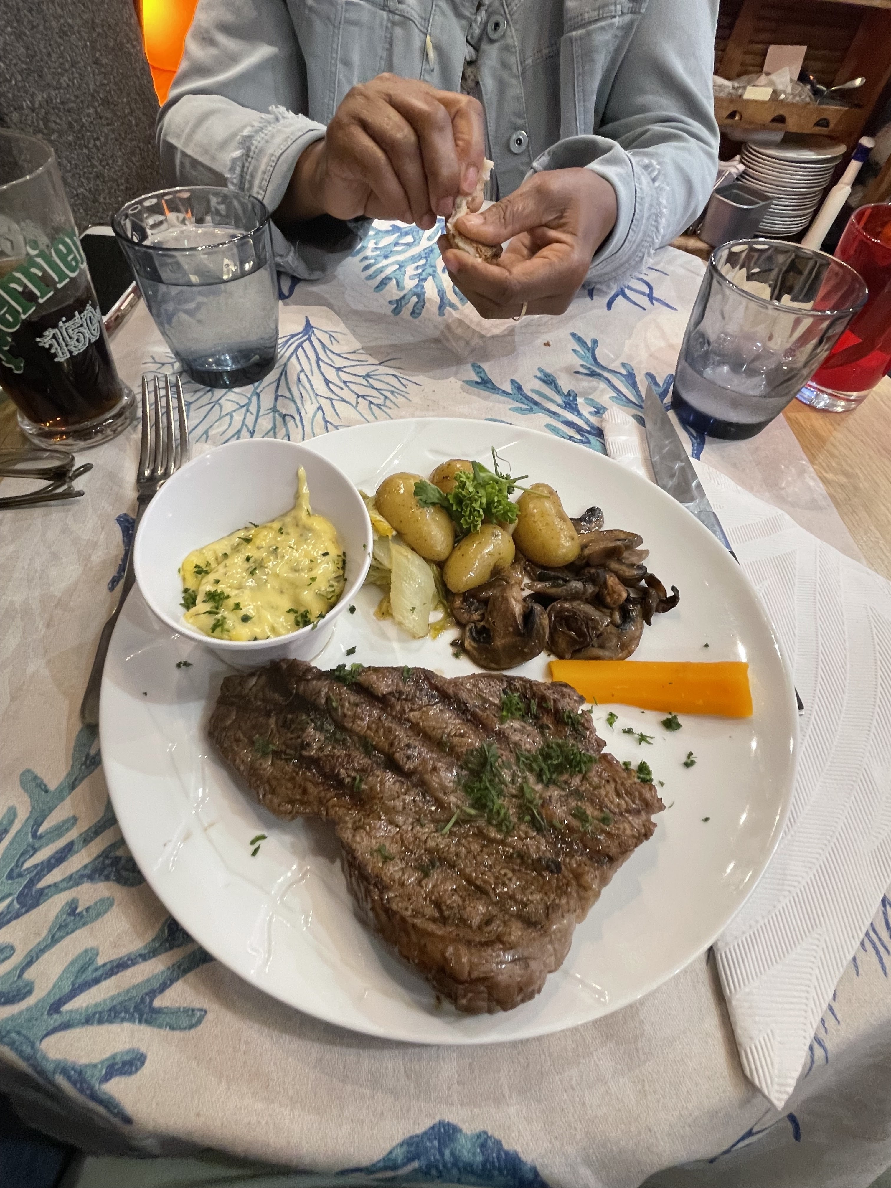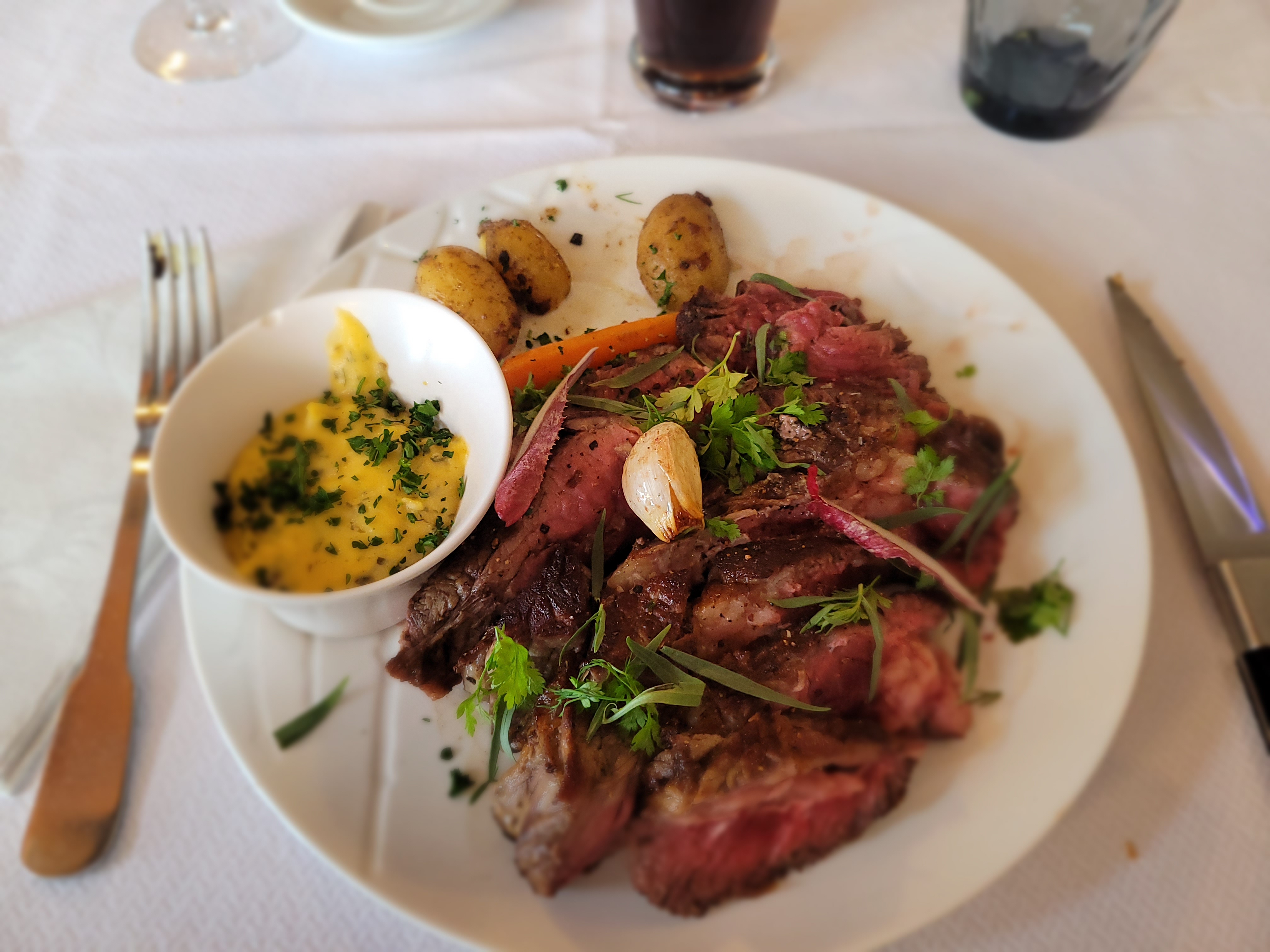 Bon. Frais. Jolie déco. La nappe particulièrement impressionné ma femme ;-) Un poil serrés cependant et le homard en entrée était un poil trop cuit et aurait pu gagner un peu + de mayonnaise.. c'était bon quand même et le reste était très bien, ne vous meprenez pas si vous me lisez M. le Cuisinier.