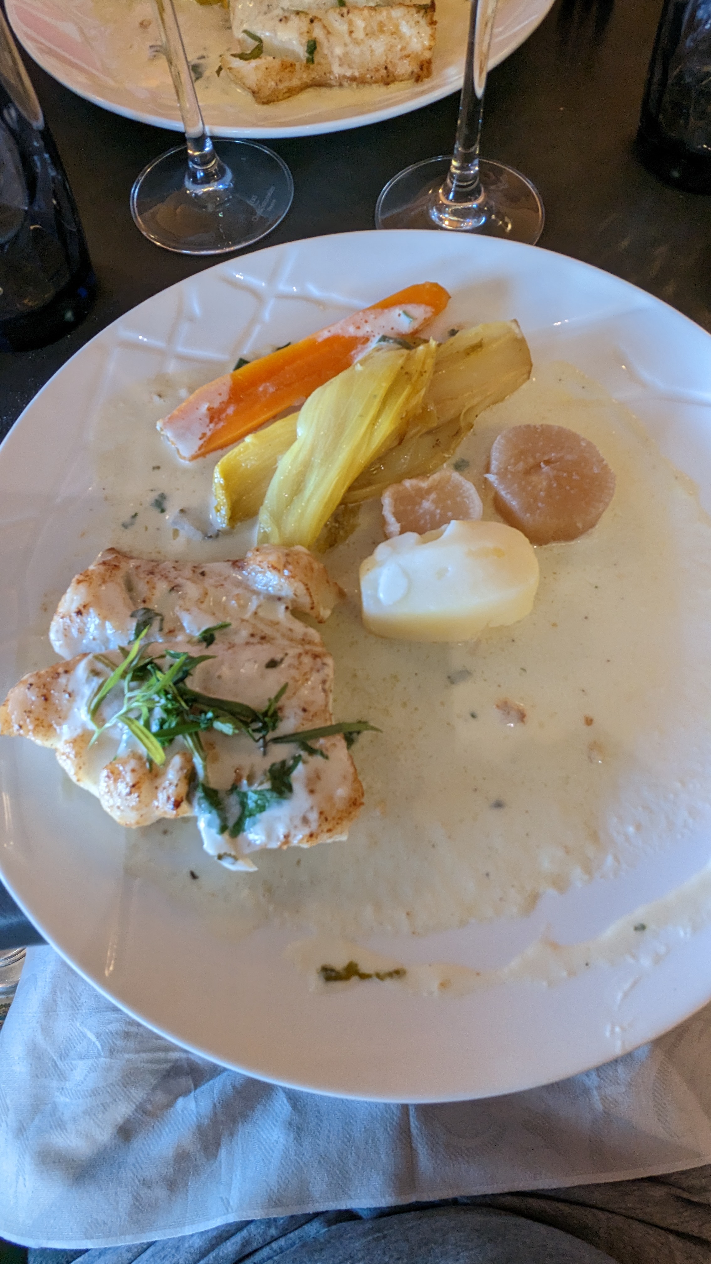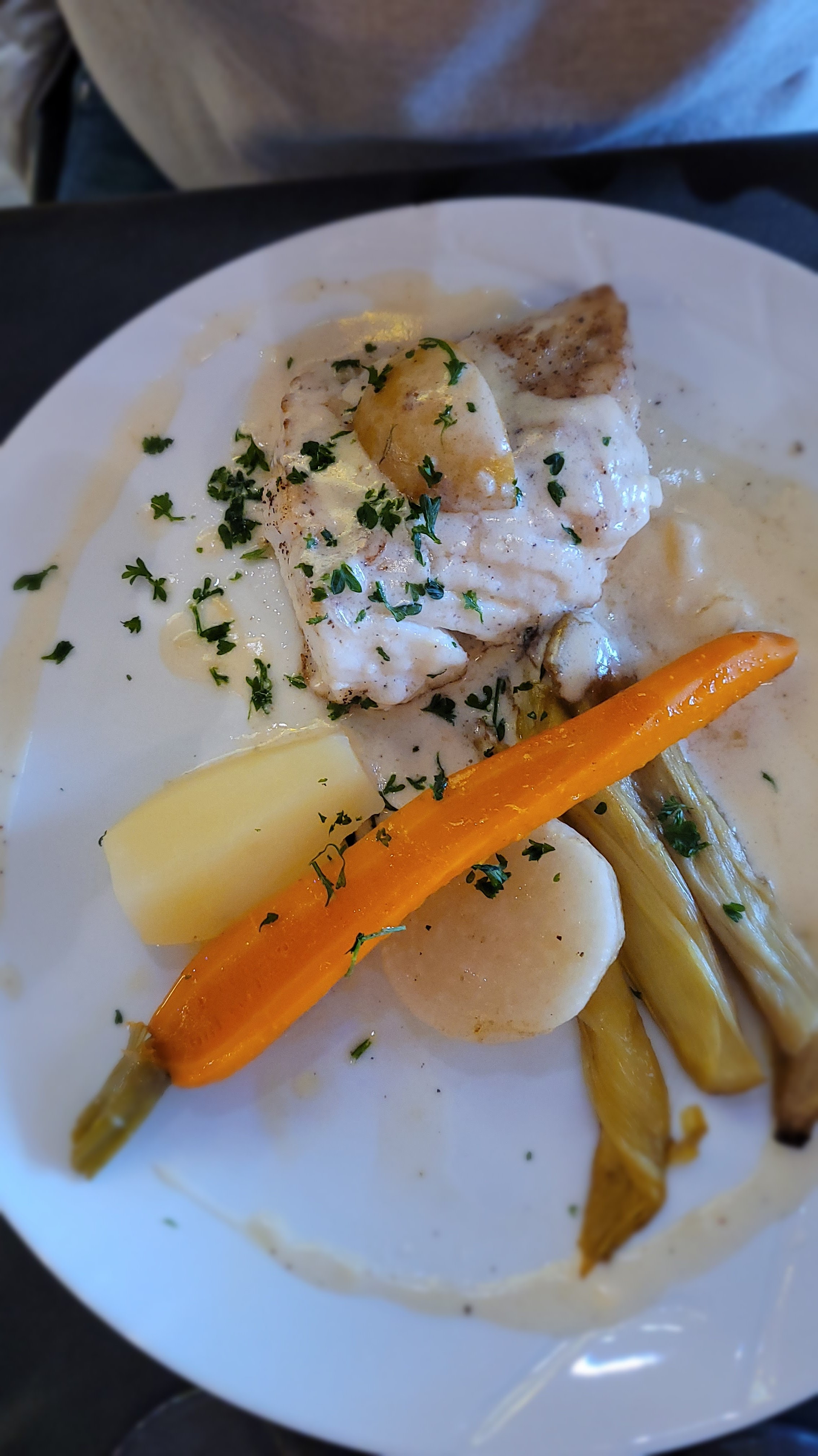 Dîner agréable, service souriant, produits frais de qualité. Dos de cabillaud et aile de raie bien préparés, bonne cuisine.