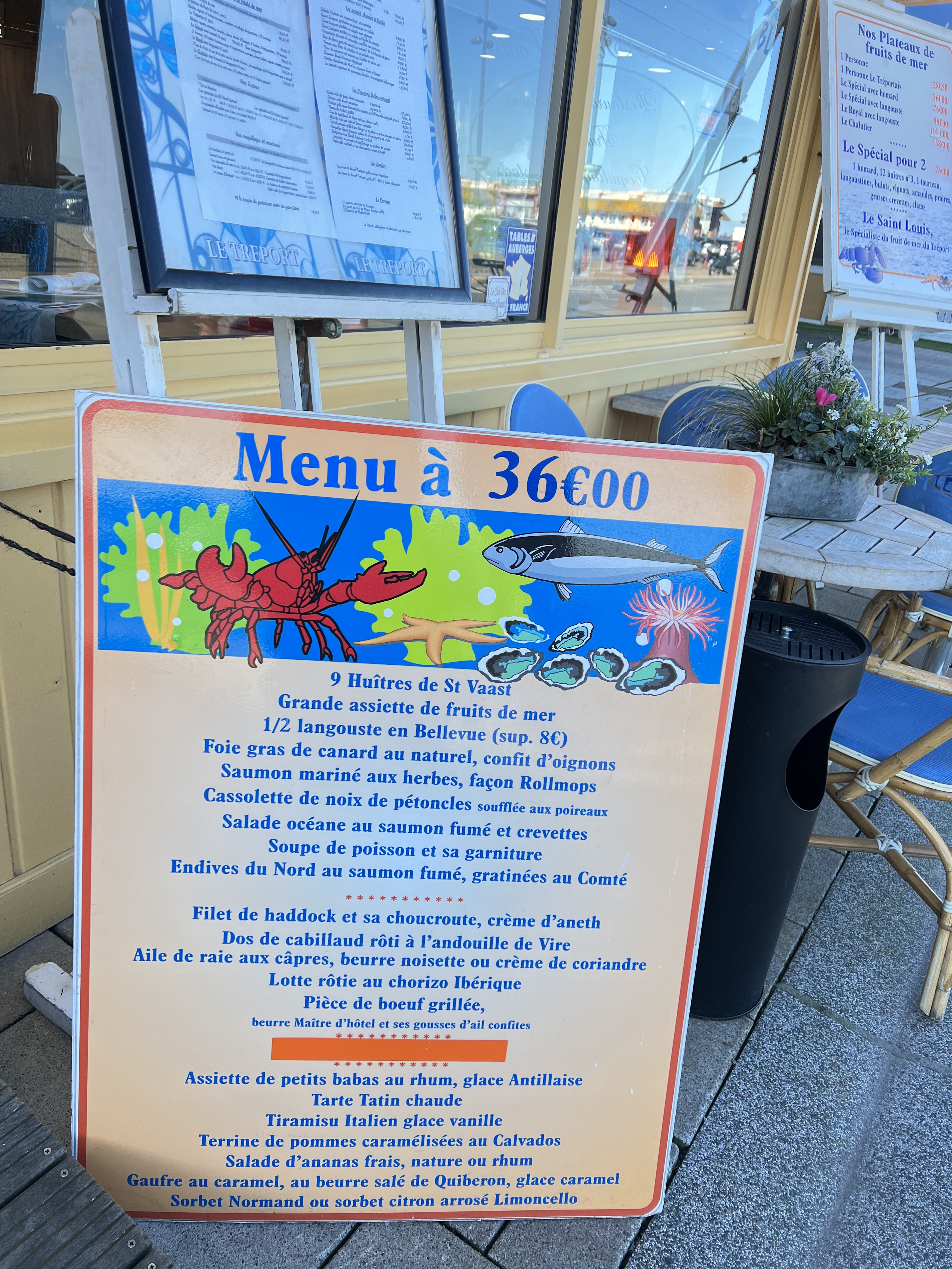 Acces simple en face de quai du treport avec du stationnement. un cadre tres chaleureux, un décoration en complement différente de l exterieur. Des serveurs disponible et agreable avec un petit touche d humour. Les plateau de fruit de mer sont bien garnie. Er contrairement a d autre pas 1 portion de chaque. Carte des vins interminable mais de tres bon conseil. Attention tout de meme a pense a réserver. Car meme hors périodes estival ce restaurant est vite complet. Au final une soirée sympathique dans un lieu agreable abec un tres bon rapport qualités prix.