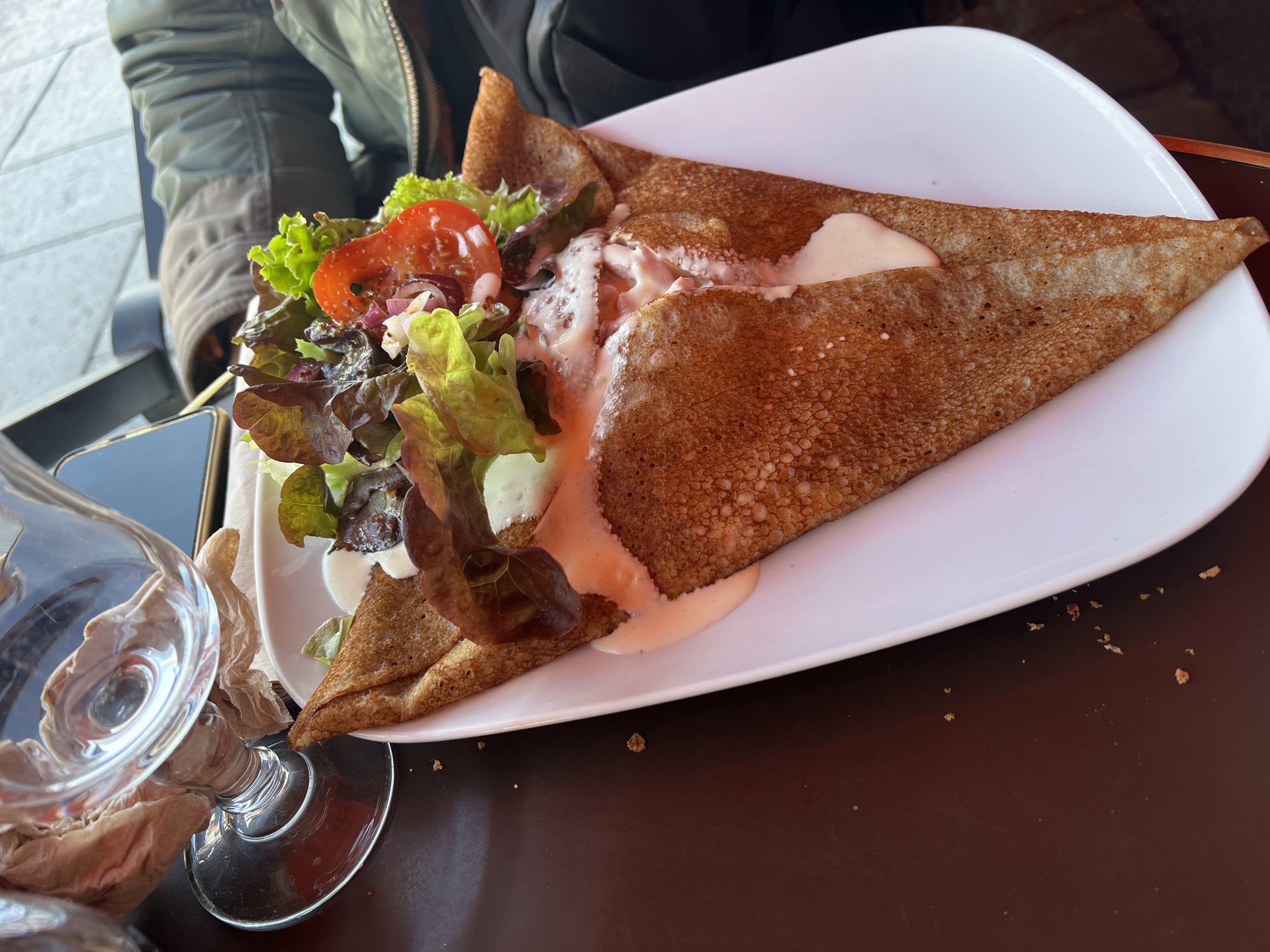 Les galettes n'étaient pas folles et morceau de papier dedans! (emballage du chèvre) Serveuse pas désagréable mais pas agréable non plus...pas très accueillant. Point positif service rapide !
