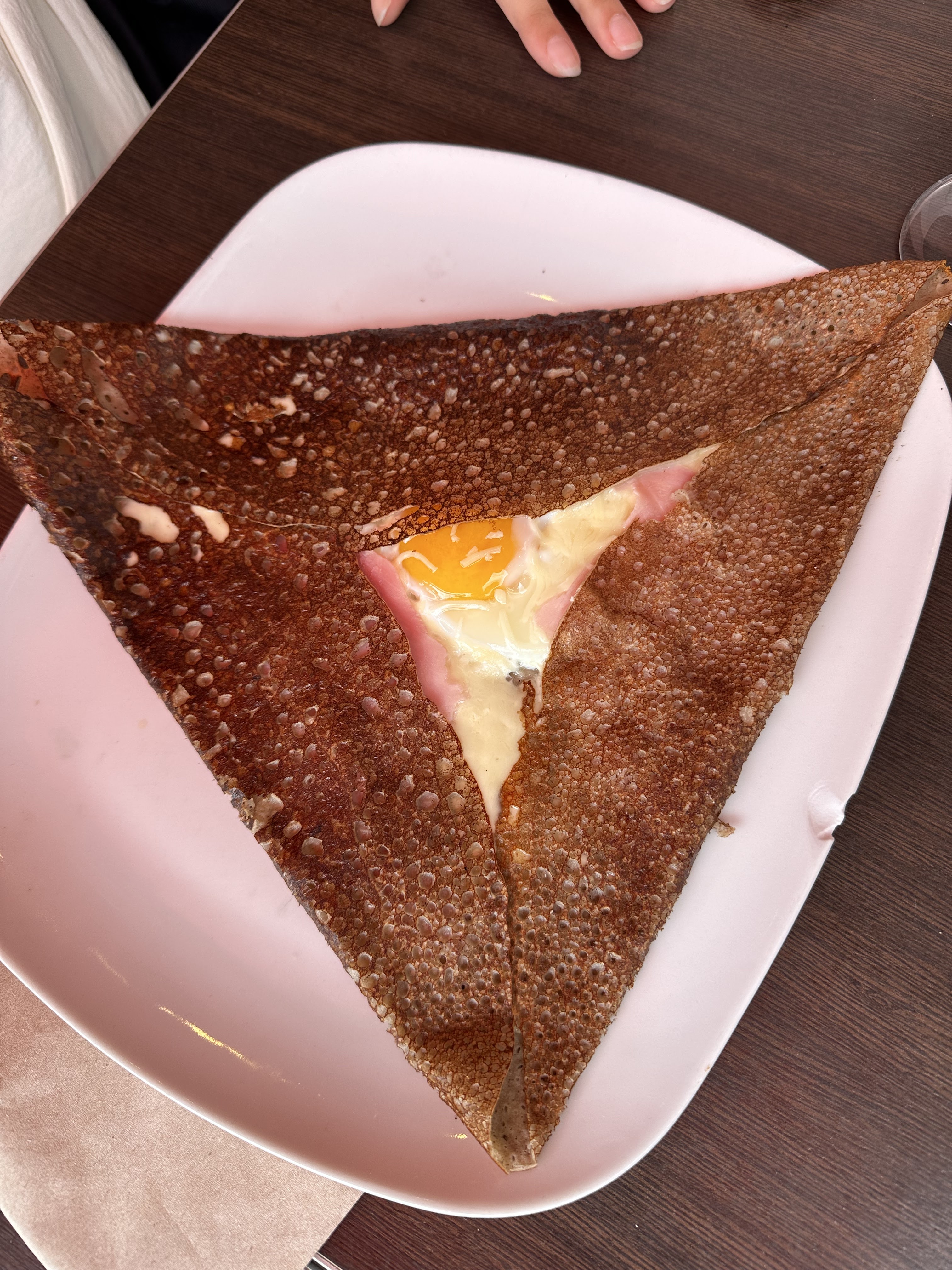 Très bon repas .(galette complète) Dommage de servir avec des assiettes ébréché ,manque une feuille de salade avec la galette