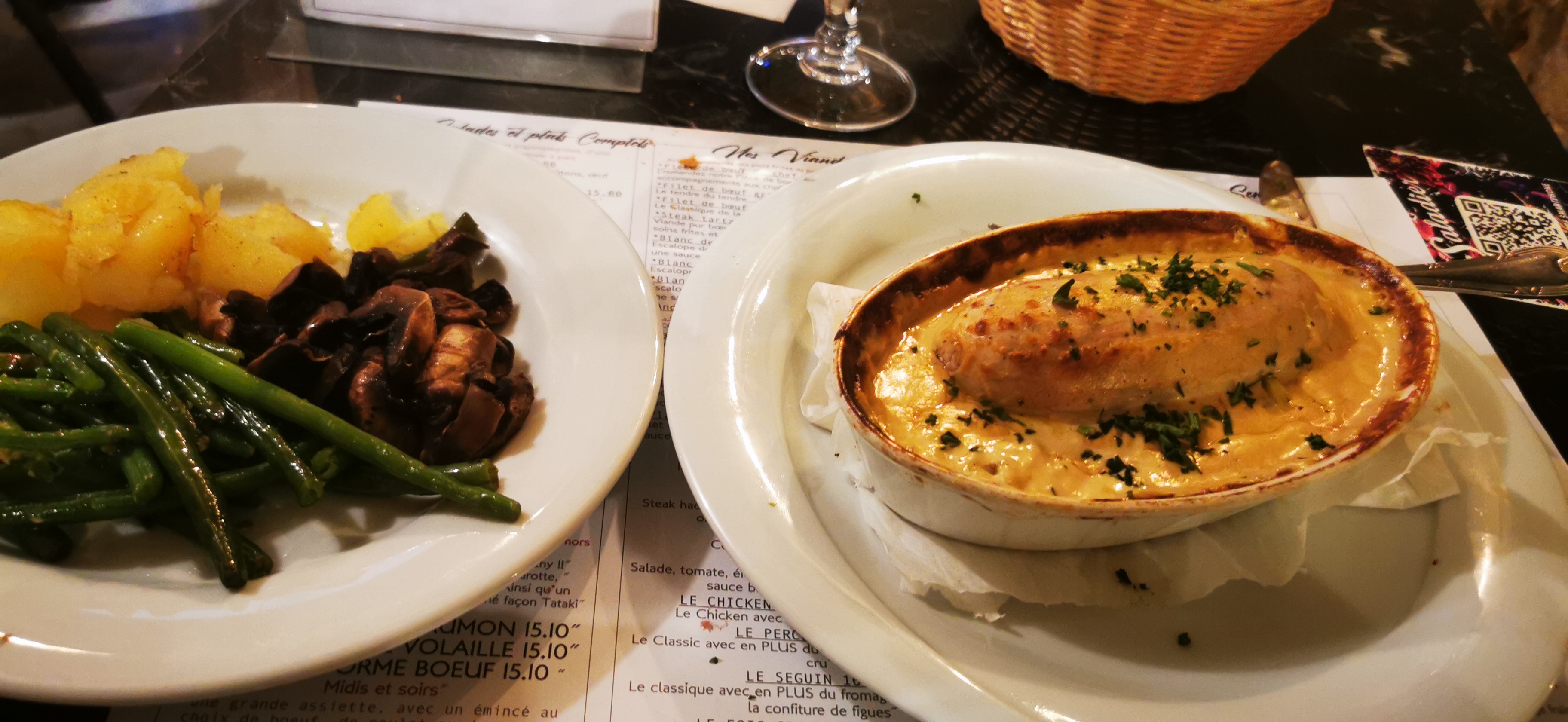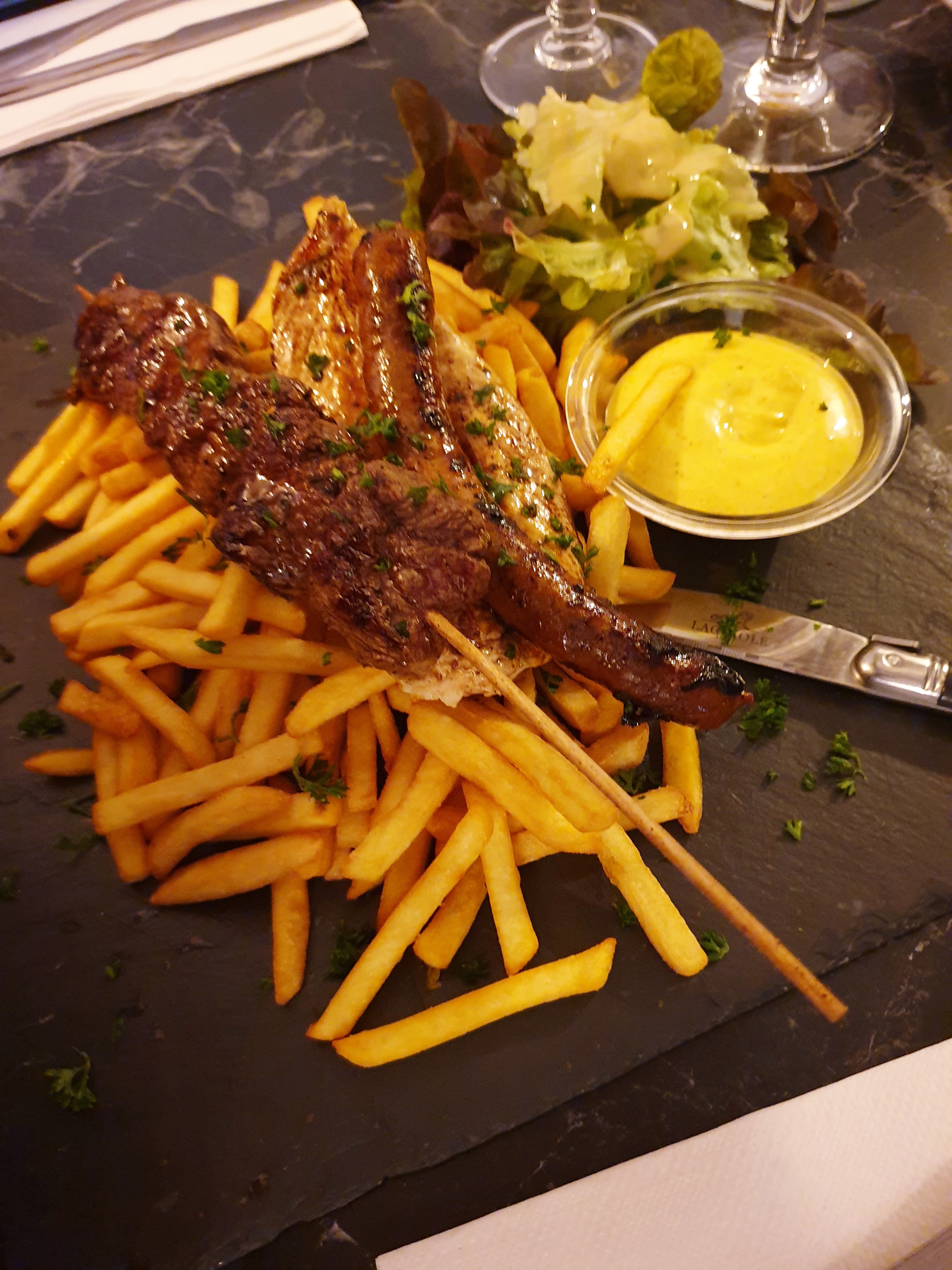 Nous avons très bien mangé en revanche service juste catastrophique. La serveuse n'arrêtait pas d'oublier ce qu'on lui demandait : pour l'apéro elle ne parvenait pas se relire, nous a demandé nos boissons, qui pour celle de mon conjoint n'est jamais arrivée, nous avons du lui remander elle l'avait oublié sur le bar (les glaçons avaient déjà totalement fondu) , mon compagnon n'avait pas de couteau nous lui avons demandé 3 fois : il n'est jamais arrivé nous nous sommes partagé mon couteau, idem pour le pain et la carafe d'eau nous avons du la relancer à plusieurs reprises ... Je tiens à préciser que vraiment nous ne sommes pas chiant comme client et que nous attendions vraiment avant de lui redemander. Plus d'une heure pour être servi avec comme excuse : vu que vous avez demandé bien cuit ça été long à faire. Euh enfaîte je cuisine chez moi aussi et 1h pour cuire 3 bouts de viande, non. Ne mettez pas vos dysfonctionnements sur le dos des clients, étant enceinte ma demande n'était pas un caprice mais une mesure que je dois prendre. A la fin, la serveuse débarrassait les tables tout en passant un appel téléphonique personnel... Du jamais vu. Nous n'avons pas pris de dessert, ni de café, nous n'allions de toute façon jamais les voir arriver... Arriver en caisse on nous redemande si on a pris des desserts ou des cafés, un peu lourd a force...