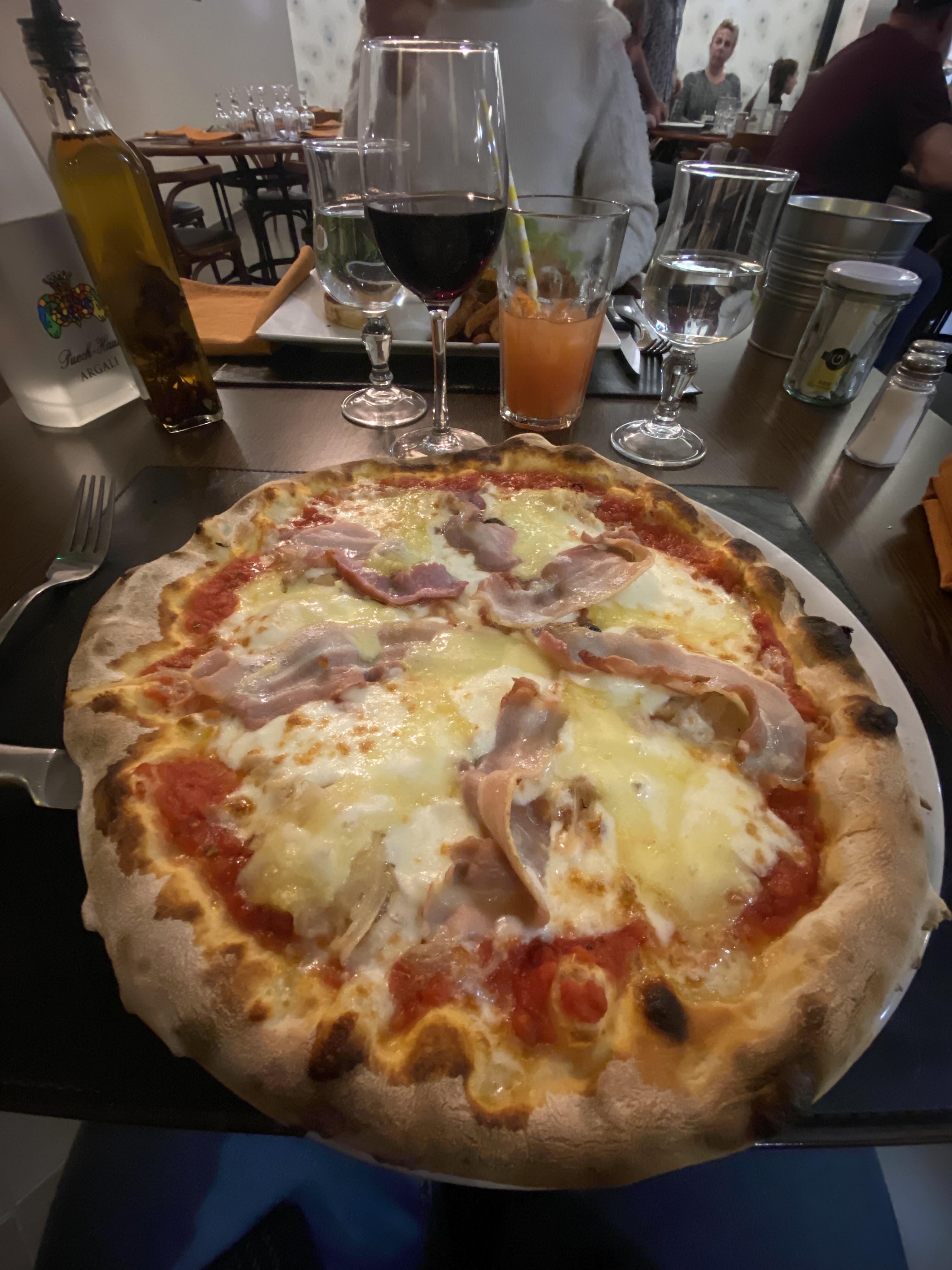 Bon mais très cher, des pizzas de 12 a19€ le verre de vin à 7,50€, sans compter les surplus, sauce, accompagnement...lieu sans charme. Personnels agréables