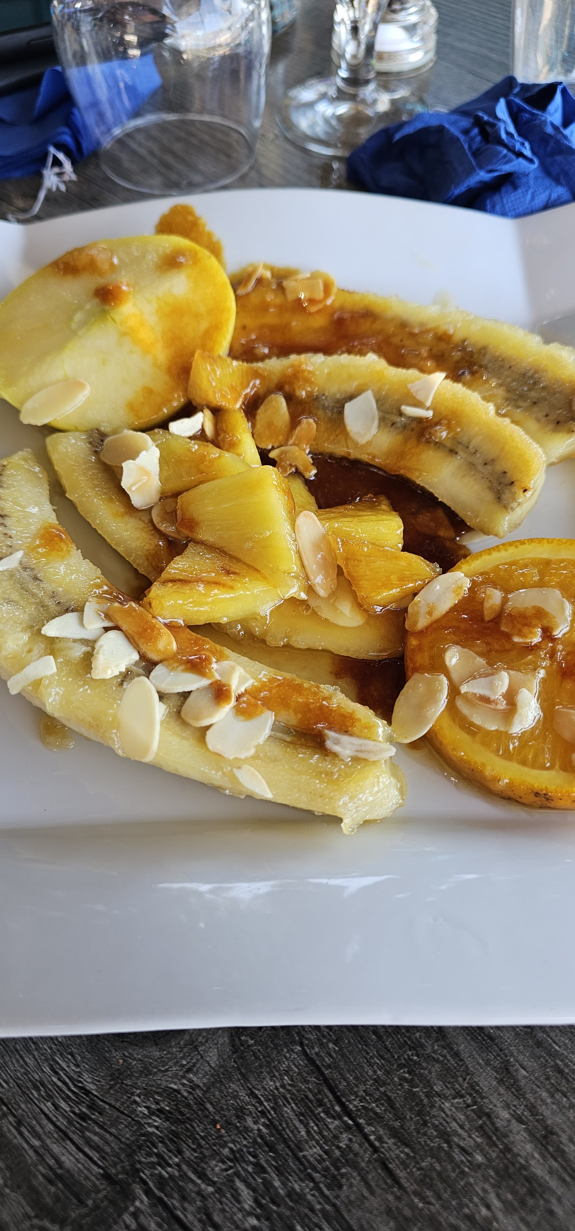 Après une matinée dédiée au bain et au bronzage nous avons apprécié la terrasse ombragée le rosé bien frais et les moules frites😋😋😋la note de douceur nous a été donné par un tiramisu au nutella🤗 Paul et Charles sont au petits soins pour leurs clients👏👏