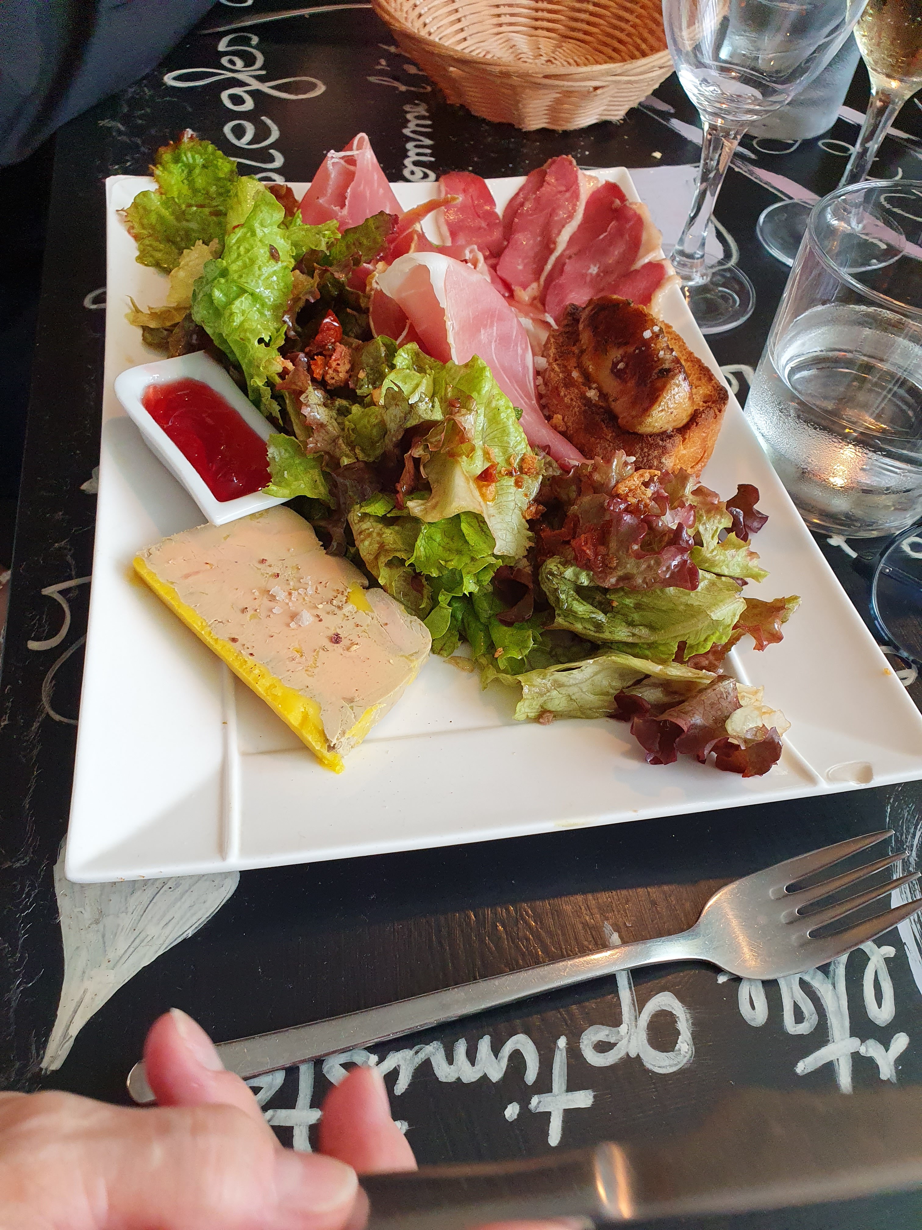 Si vous voulez goûter à la gastronomie du sud ouest,c'est la bonne adresse la salade Gersoise,une merveille copieuse avec sa tranche de foie gras mi cuit,l'escalope de foie gras poêlé.Pour un petit mangeur celà est suffisant,mais comme nous sommes téméraires nous avons pris le magret entier avec sa sauce foie gras et ses pommes de terre salardaise,même si nous sommes de bons mangeurs nous avons eu du mal à finir,plus de place pour le dessert dommage car la carte des desserts était appétissante. Belle carte des vins avec de bons Côtes de Gascogne. Mérite vraiment le détour .