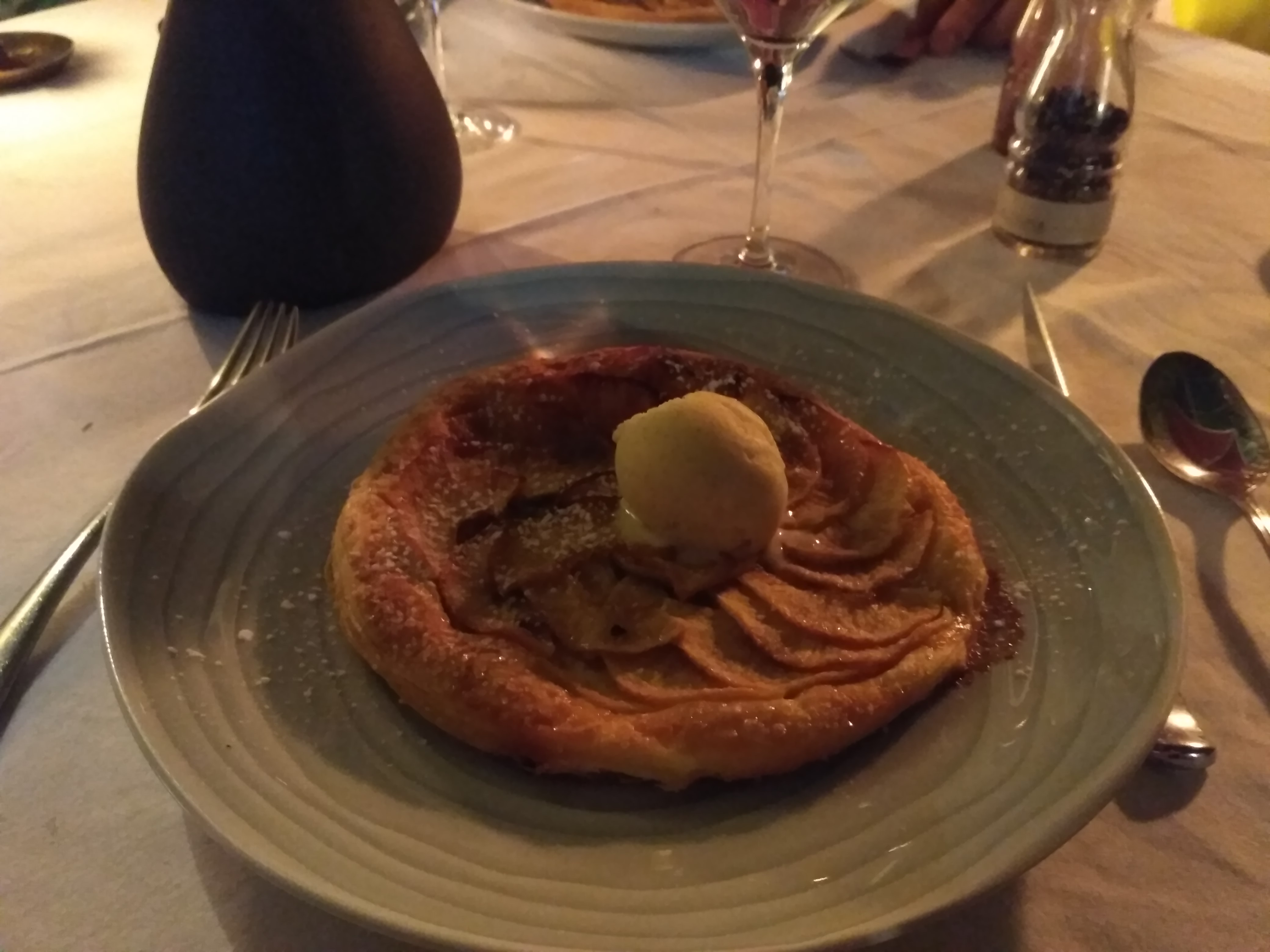 Arrivés dans réservation, très bon accueil, service sympathique et efficace. Bonus en fin de repas avec cette tarte fine qui n’était pas commandée à l’avance et qui a été détournée en cuisine pour notre plus grande satisfaction!