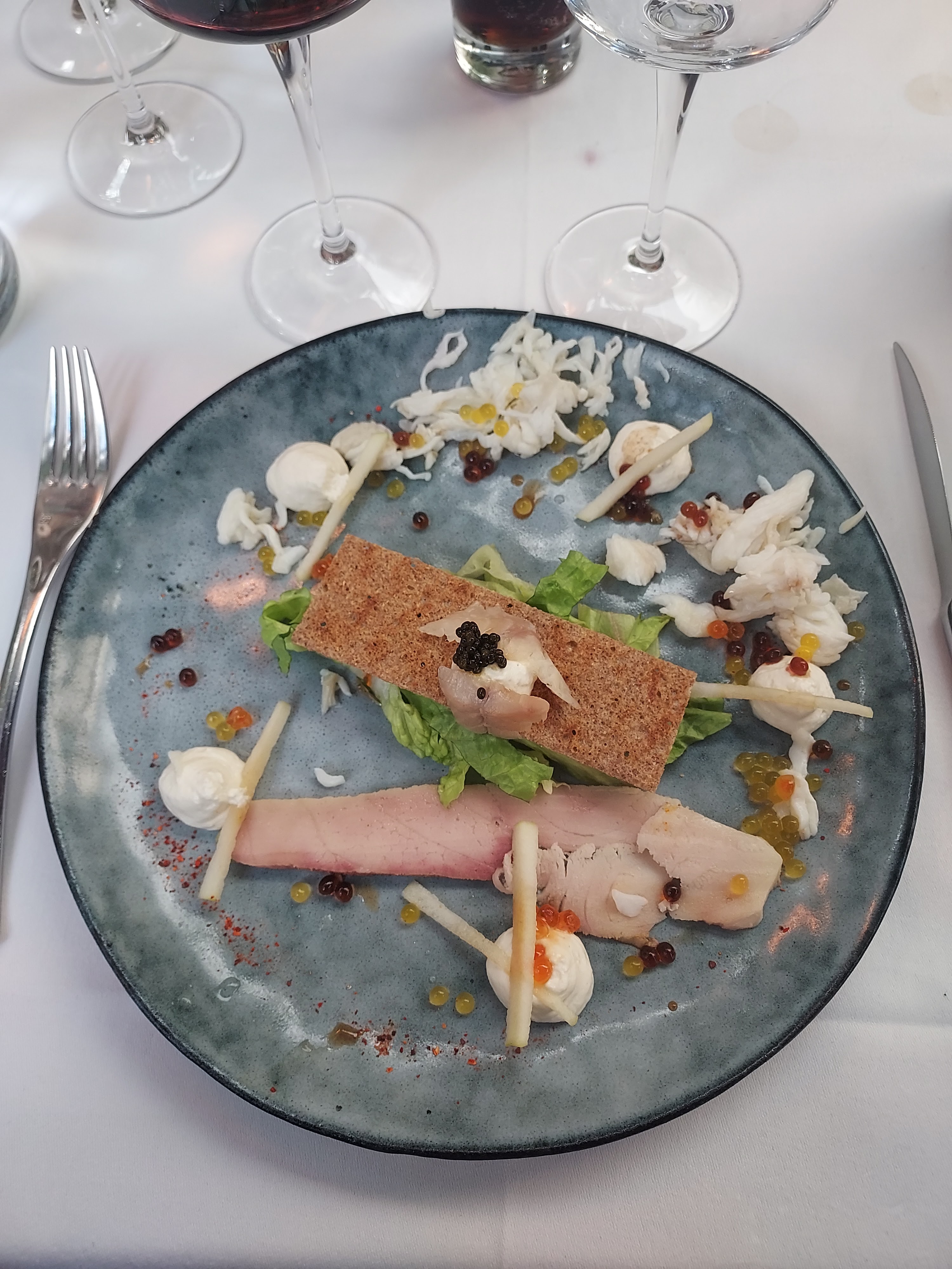 Un vrai régal. Très bel établissement. La carte est très détaillé et le serveur très gentil, il a su répondre à toutes nos questions avec gentillesse. Les vins sont délicieux (nous avons testés 2 rouges et 1 blanc aux verres) Les plats sont très bien présentés et vraiment très très bons (j'ai vraiment adorée les St Jacques au caviar) Nous n'avons eu aucunes déceptions et avons passés une très très agréable soirée.