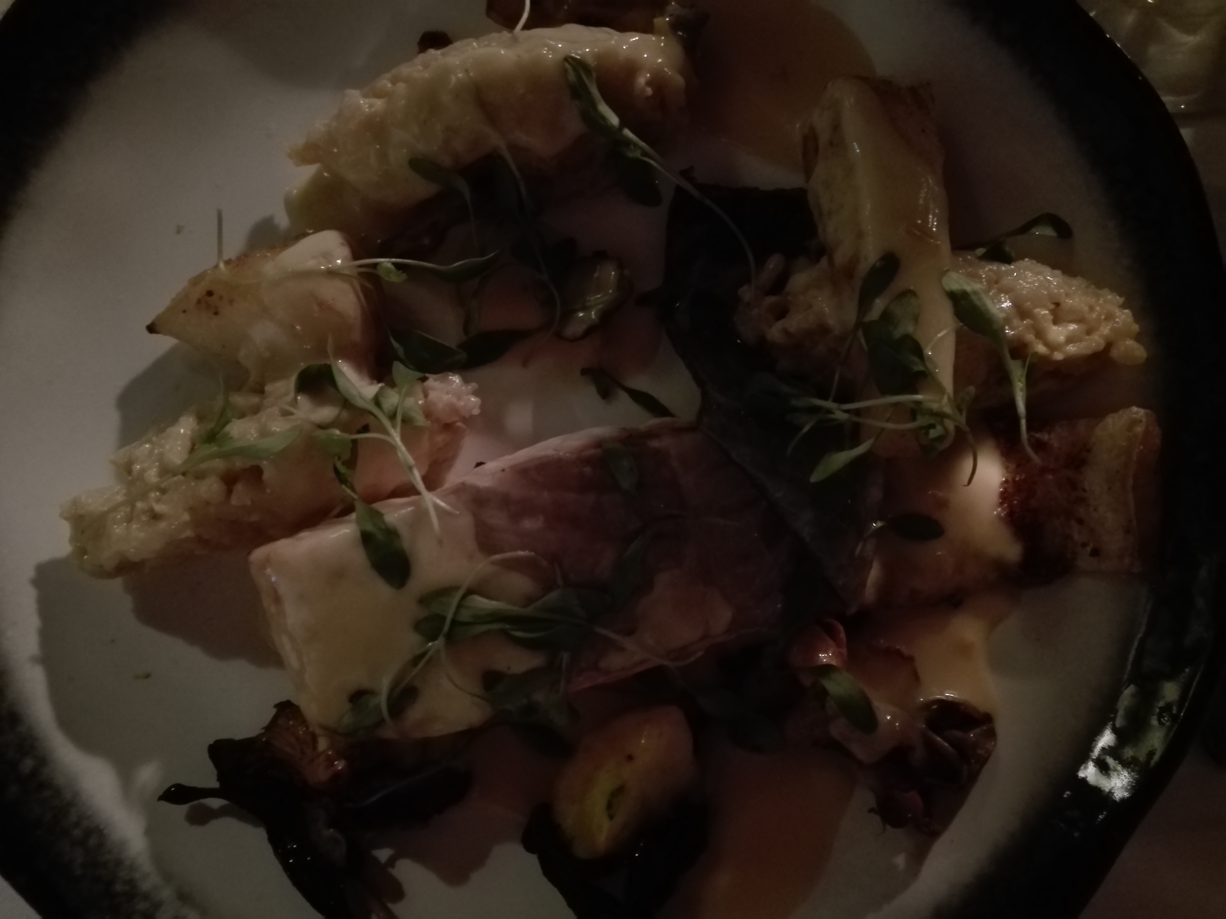 Lieu super sympathique les plats sont travaillés avec un équilibre des saveurs juste top une présentation qui donne envie le poisson était délicieux si vous êtes dans le secteur je vous le conseille
