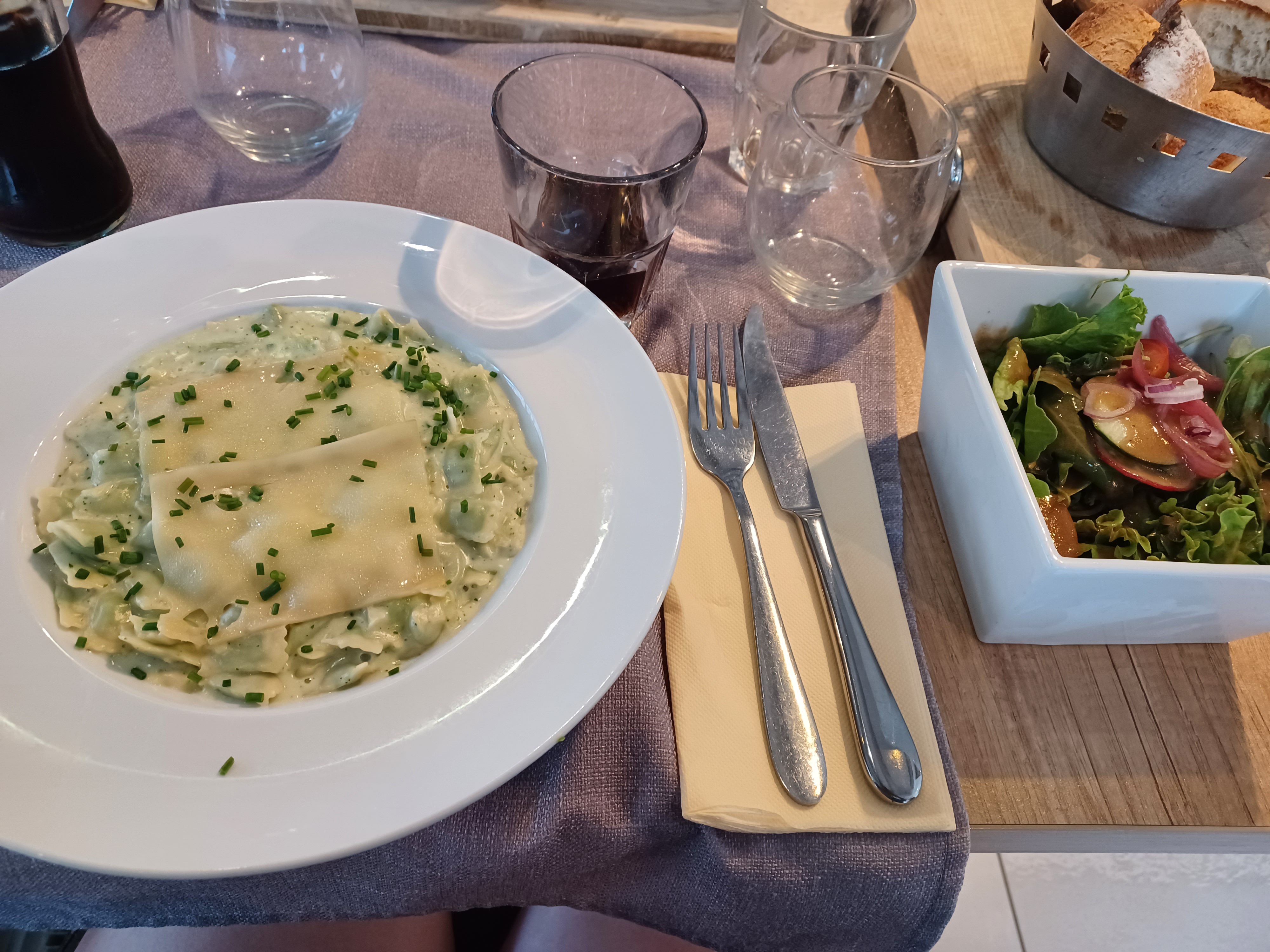 Testé plusieurs fois mais dernière expérience décevante (ravioles trop cuite) Le personnel est sympathique et accueillant