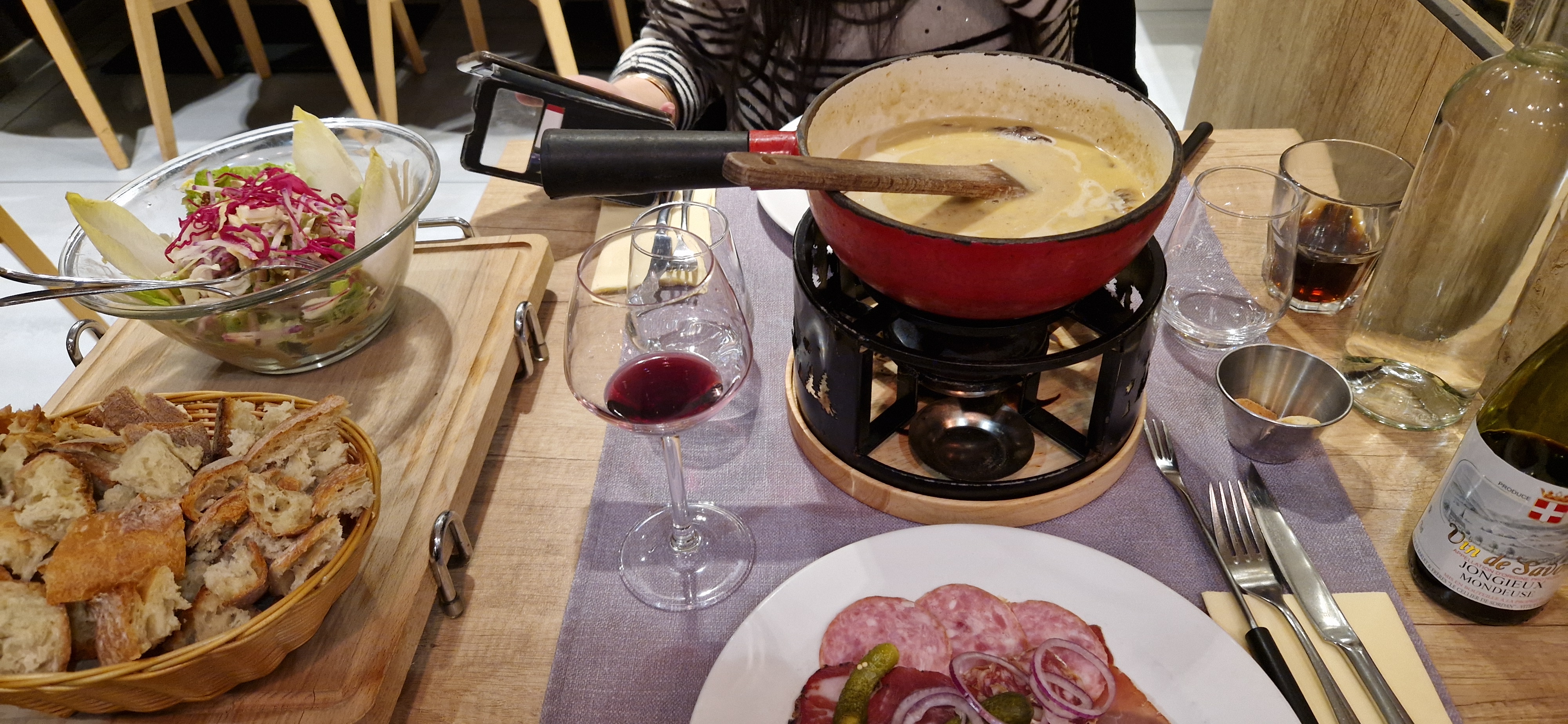 De passage sur Chambéry avec des amis, il fallait qu'on se fasse une fondue savoyarde dans un resto, Savoie oblige ! On etait 8 et on s'est bien régalé ! 😋 Beau cadre et propre et personnel faisant bien son travail. Bref, on y a passé un bon moment.