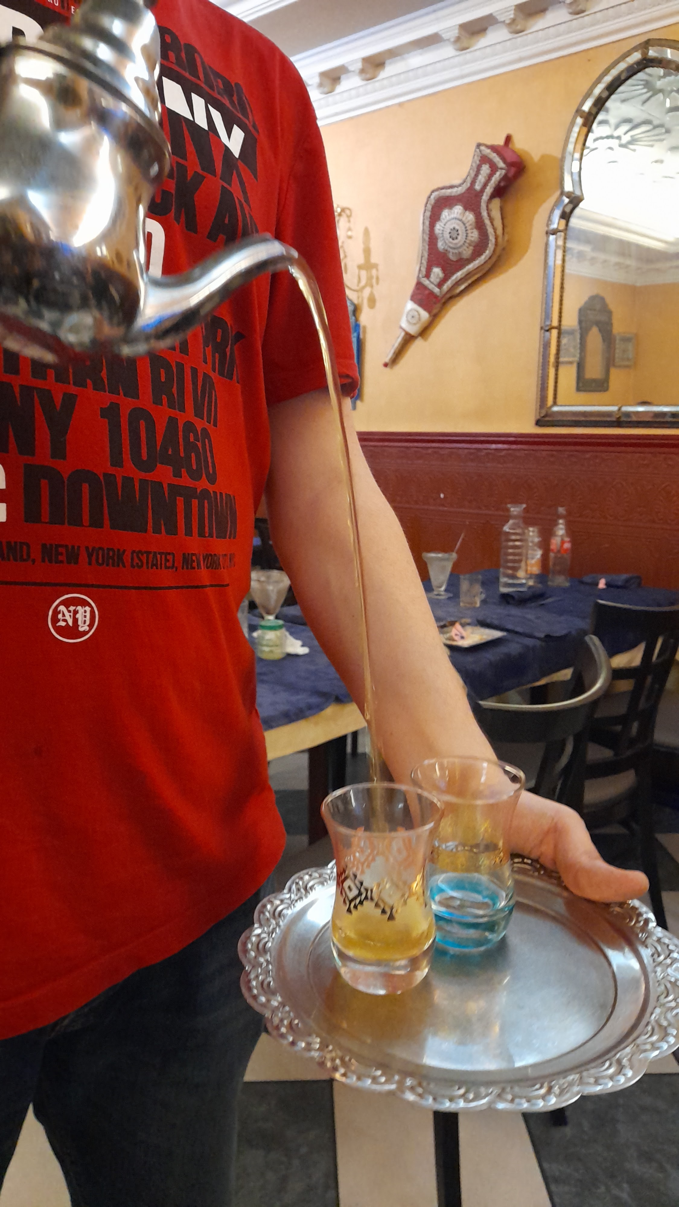 Décor chaleureux du Maroc. Menu varié. Personnels super😁😁😁😁😁. Thé à la menthe good 👍👍👍
