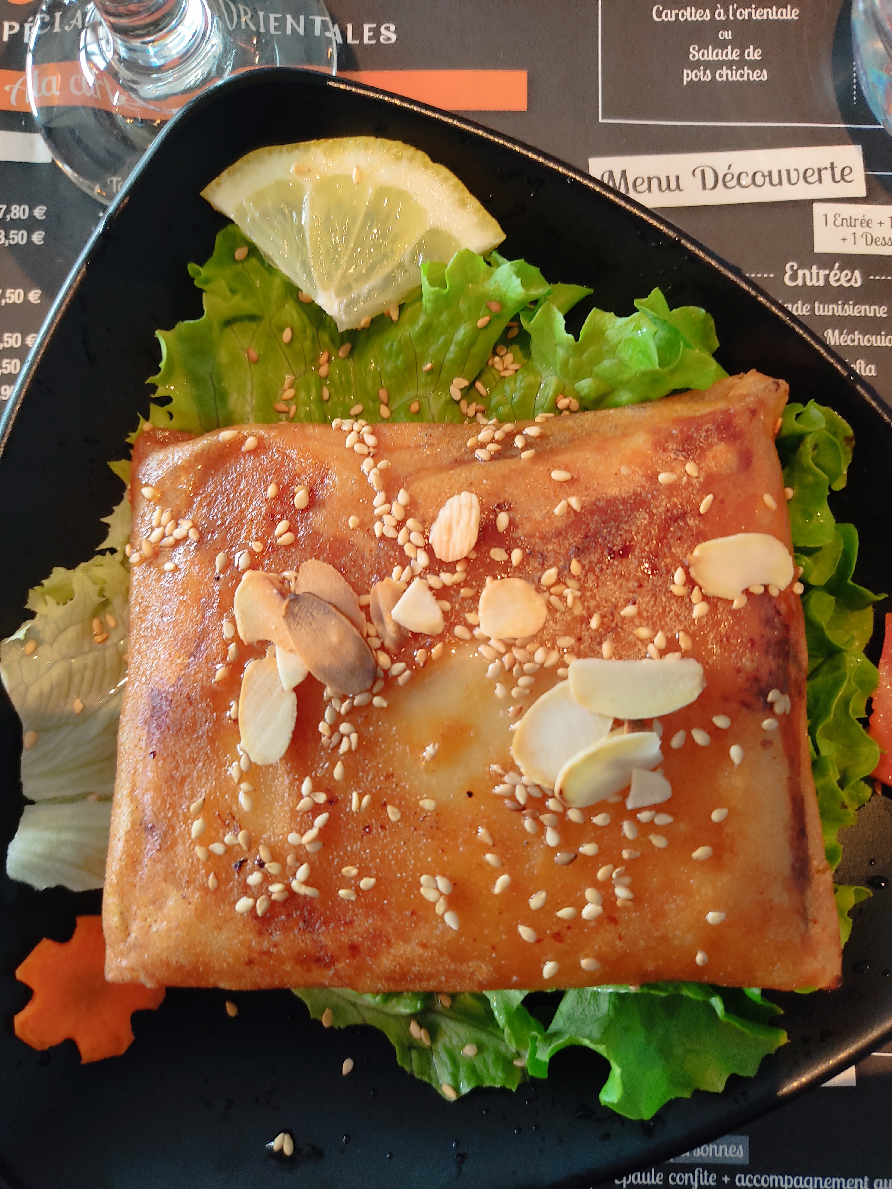 Tout simplement le meilleur restaurant de compiegne. Plats délicieux et généreux, une salle chaleureuse décorée avec goût pour vous mettre dans une ambiance orientale. Un personnel au petits soins. Allez-y les yeux fermés !