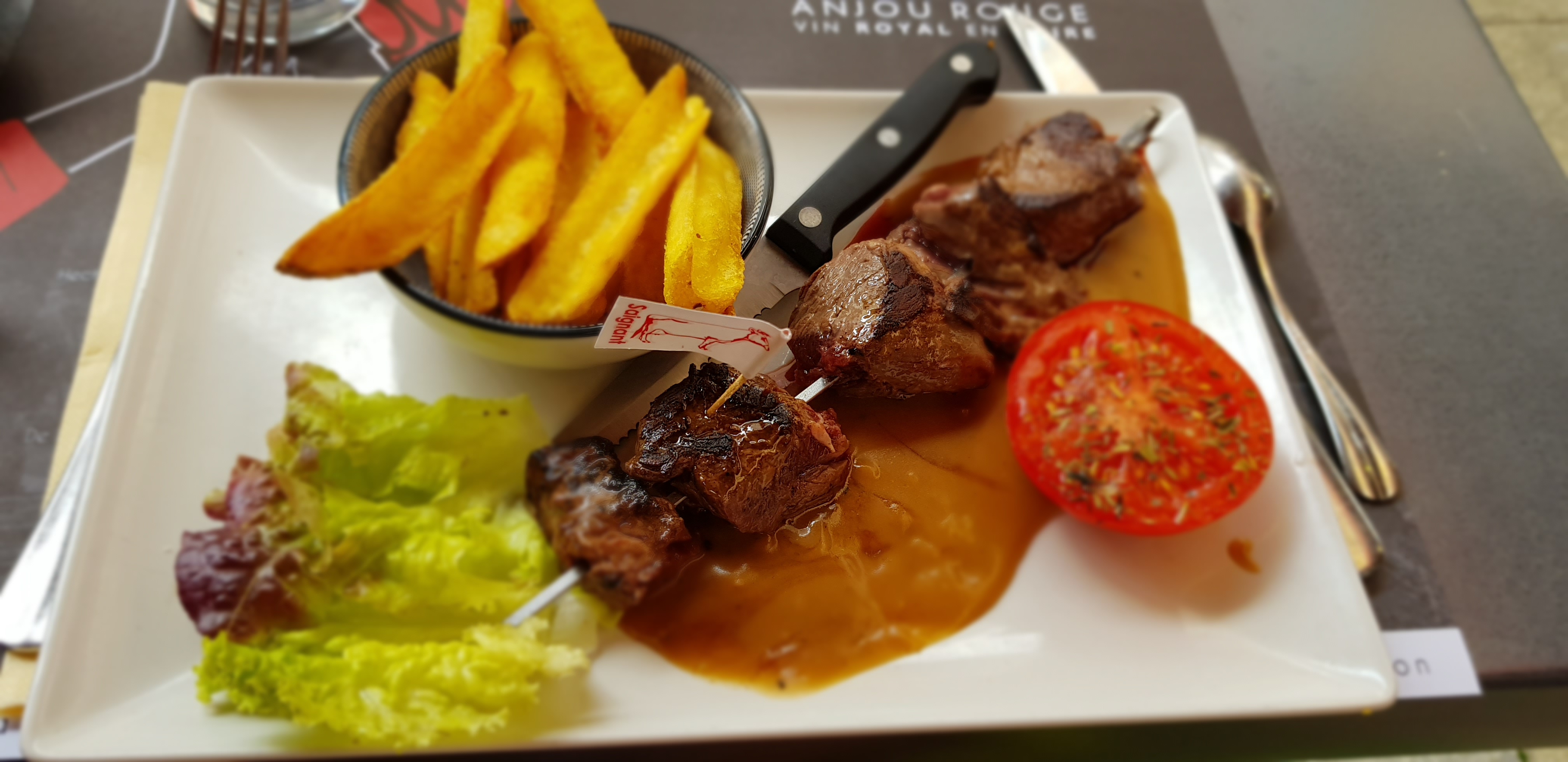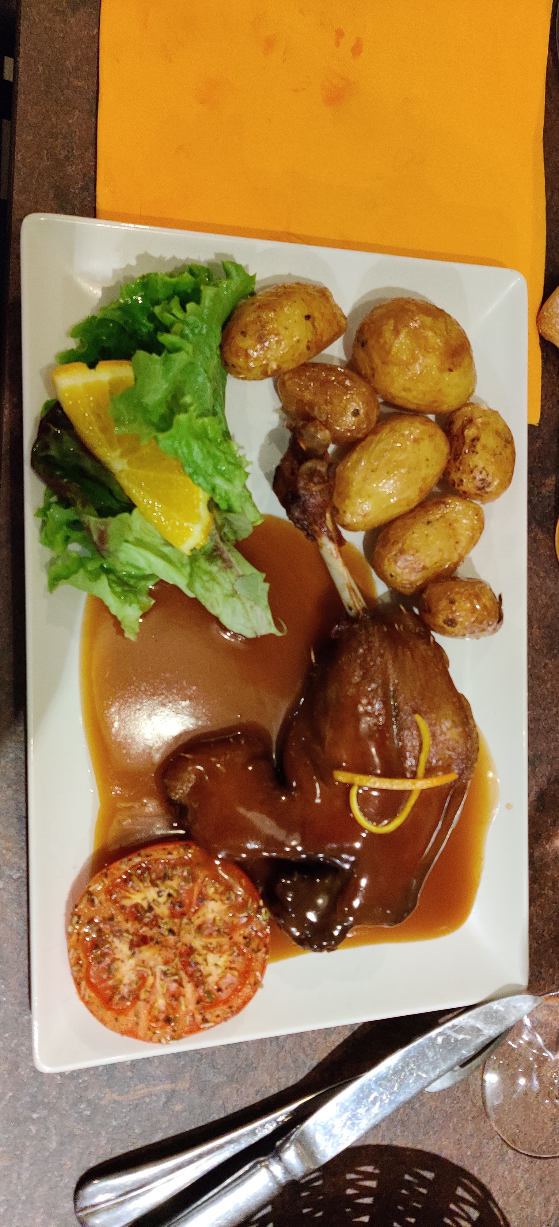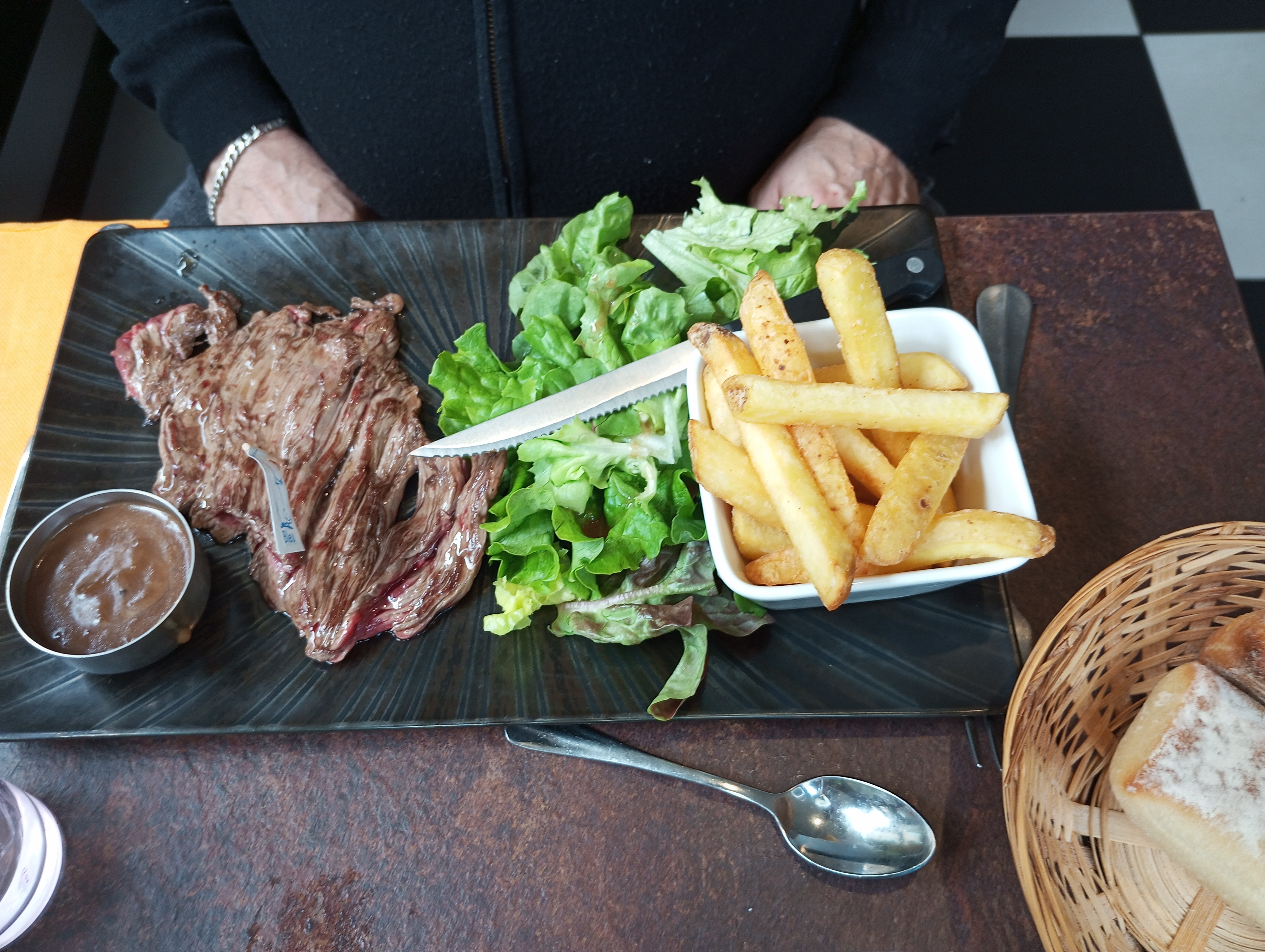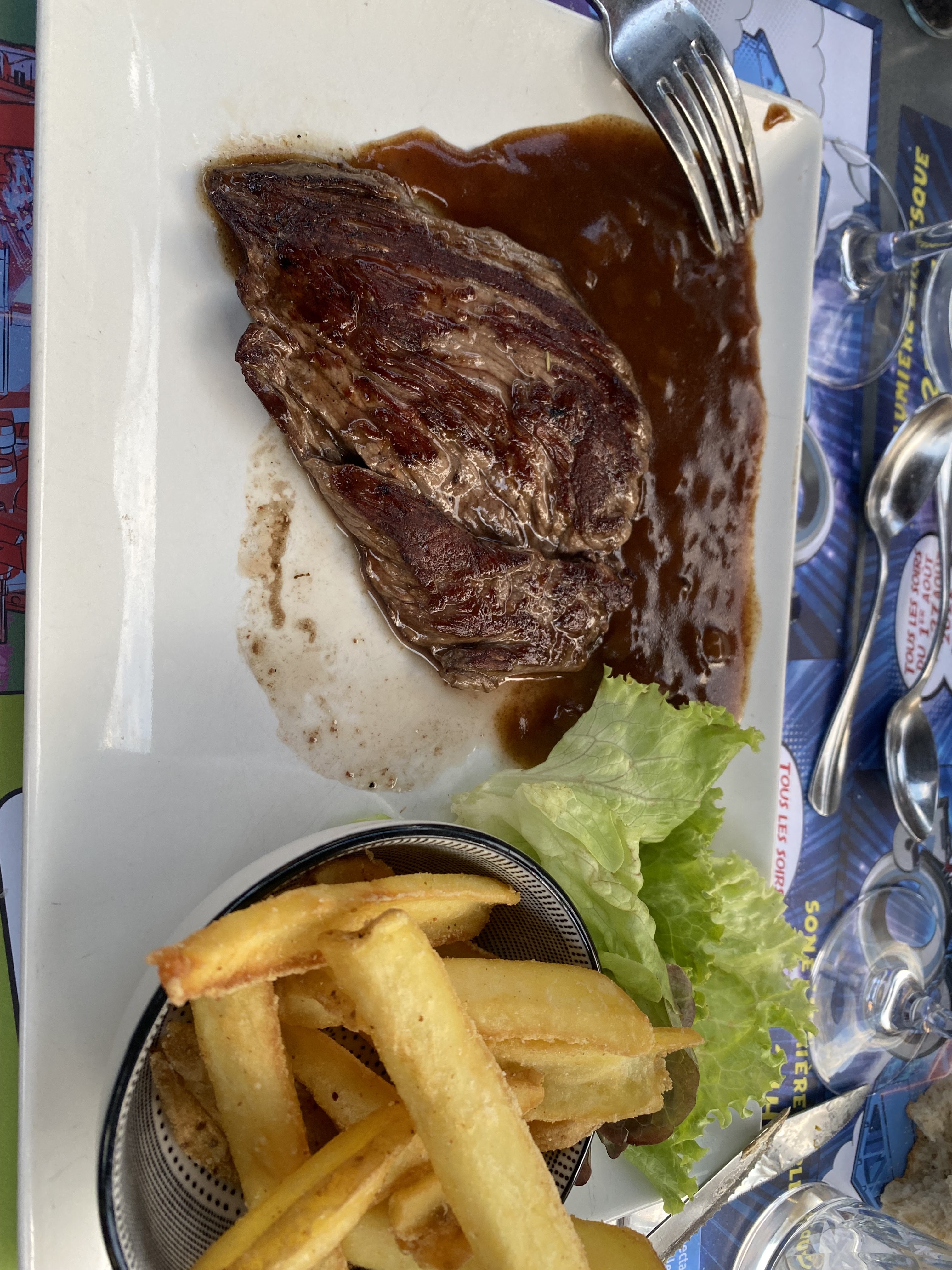 Franchement rien a redire seul petit point les couteaux mais bon rien de bien méchant, frites excellente, canard fondant, bavette pas nerveuse un délice nous nous sommes régalés 🤤 Serveuse plus que sympathique malgré les gestes barrière et le masque continuer comme ça 💪😉