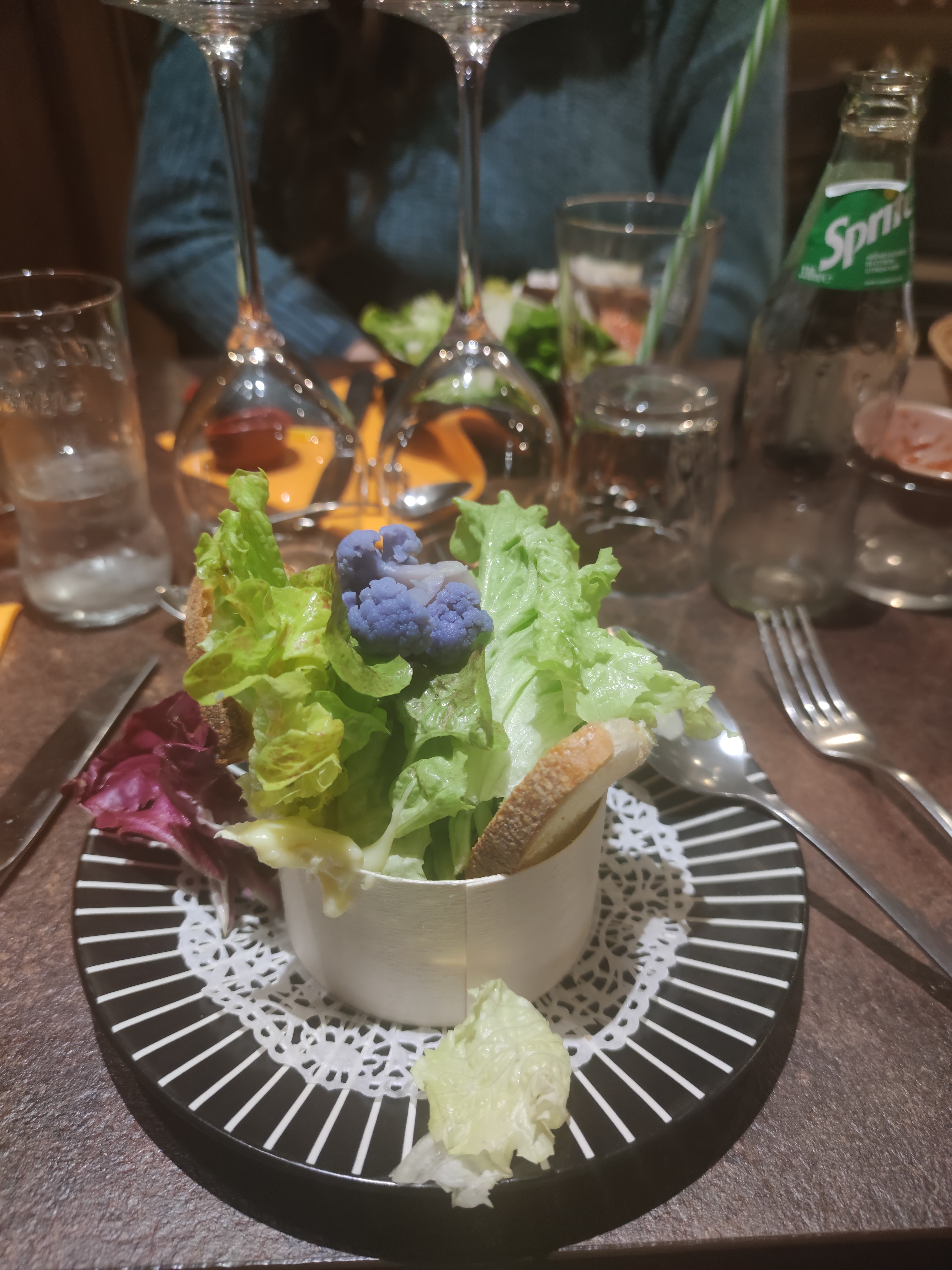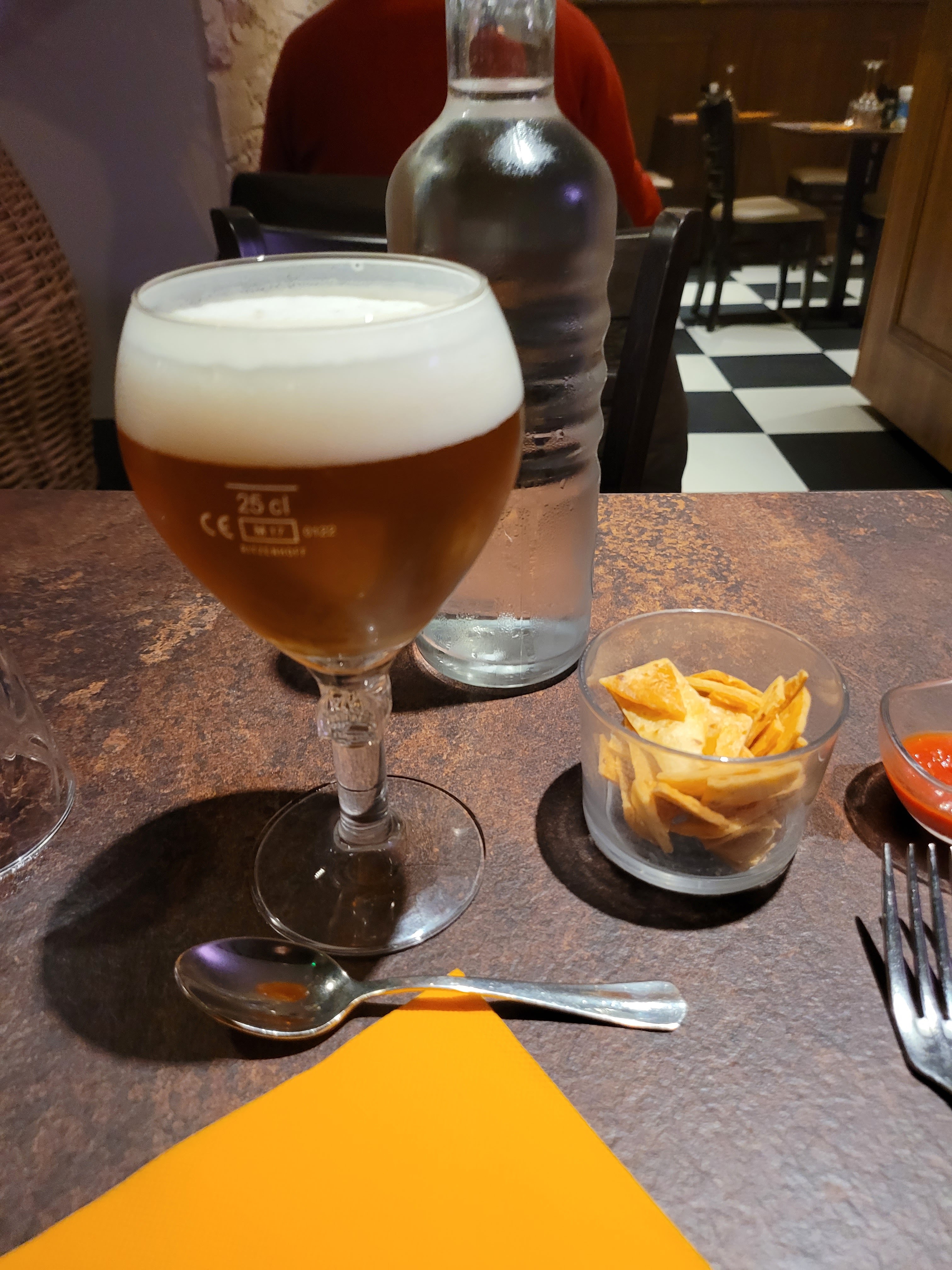 Verre à bière tenu par le dessus ! Verres à cocktail qui dégoulinent sur la main du serveur (qui reste aussi muet qu'immuable ! Pas d'excuses pas de proposition de refaire le verre). Pas eu le temps de finir l'apéritif que les plats arrivaient alors qu'on avait précisé de mettre en attente... bref, heureusement que les plats étaient bons!