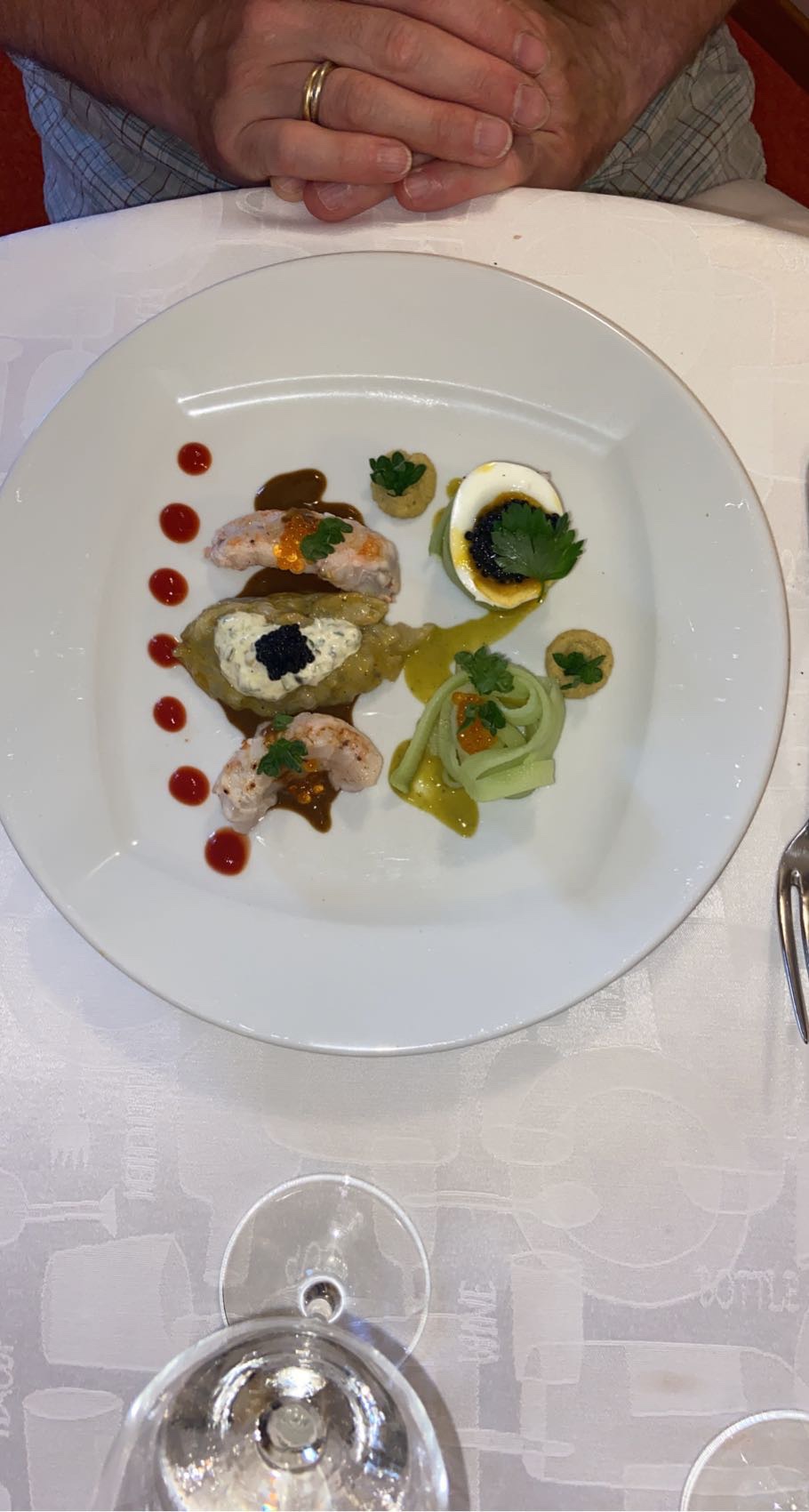 Après avoir vu les commentaires et la vidéo du chef nous avons sélectionné ce restaurant nous nous faisions un plaisir d'y aller 12h30 arriver bon accueil par la patronne pas un client, au final 3 tables de 2 personnes les mignardises qui accompagnent l'apéritif étaient d'une autre époque l'entrée de mille feuille de foie gras sotie du frigo beaucoup de gelée et quelques copeaux de foie gras. L' Entrée royale de tomate au navarin de homard n'avait que le gout du frigo. les assiettes de la patience étaient dans le même style, aucune recherche soupe de petits pois qui sentaient l'eau, les plats chauds étaient à peu prés corrects mais pas du niveau d un gastro surtout avec un menu à 50 euros par personne les desserts rien de transcendant, très quelconques. Je dois dire que c 'est la première fois que je mets une réclamation à un restaurant. En conclusion, ce restaurant ne mérite pas les éloges qui apparaissent sur le net
