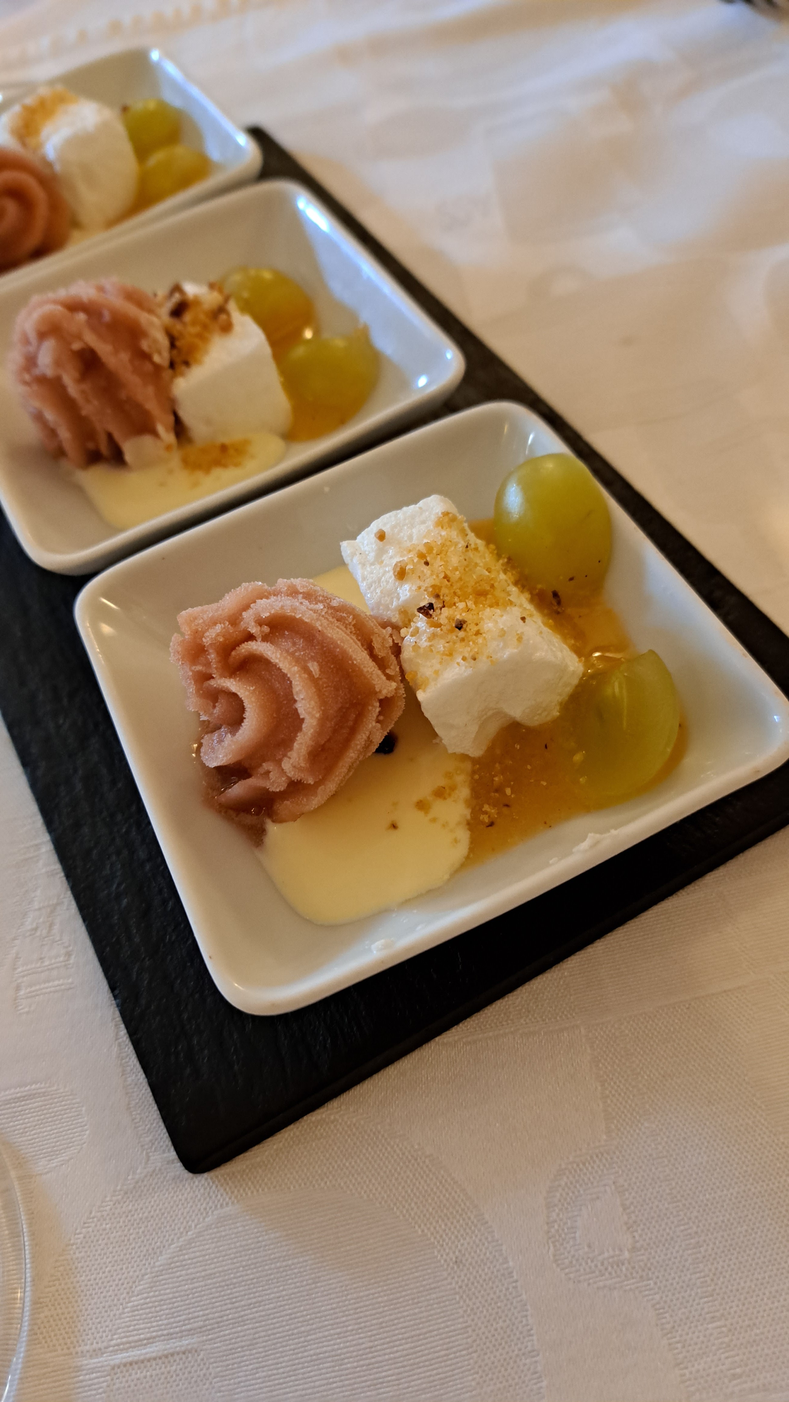 Pas trop mal , mais pour le prix on pourrais s attendre a mieux , tous les interludes était bon et originaux , par contre bémol pour les desserts , carrément pas à la hauteur du restaurant.