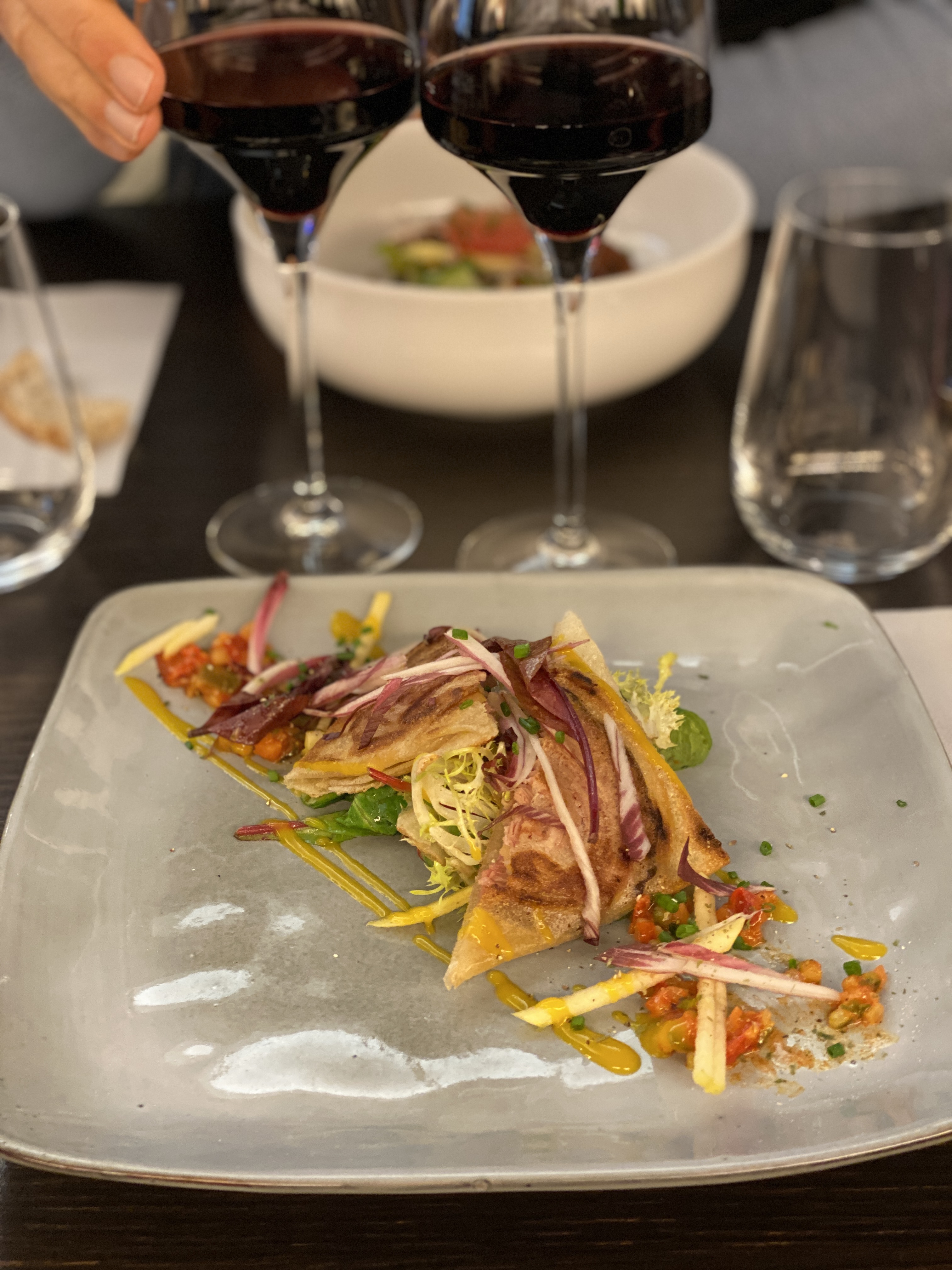 Très belle découverte à l’occasion d’un dîner, dans une ambiance cosy et décontractée. Menu entrée plat dessert avec une raviole remplie de goût (en photo), suivie par une viande rouge bien tendre (cuisson unique choisie par le chef). On conclut parfaitement ce repas avec un moelleux chocolat. Je recommande à 100%