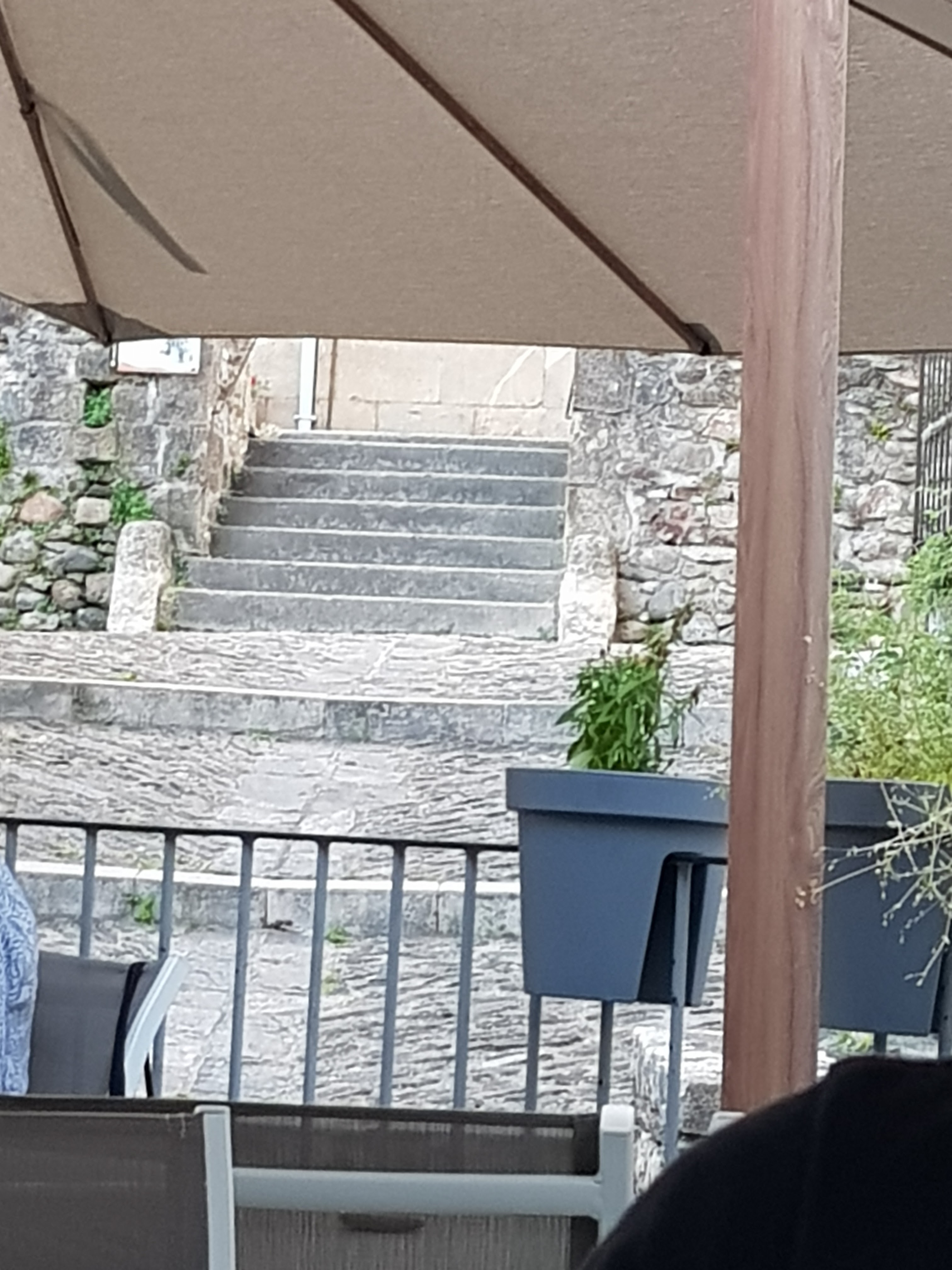Coup de coeur pour ce resto de Florac, au pied de l'église, avec une très jolie terrasse, tenu par un jeune couple sympathique qui a choisi de travailler avec les petits producteurs locaux. Nous reviendrons...