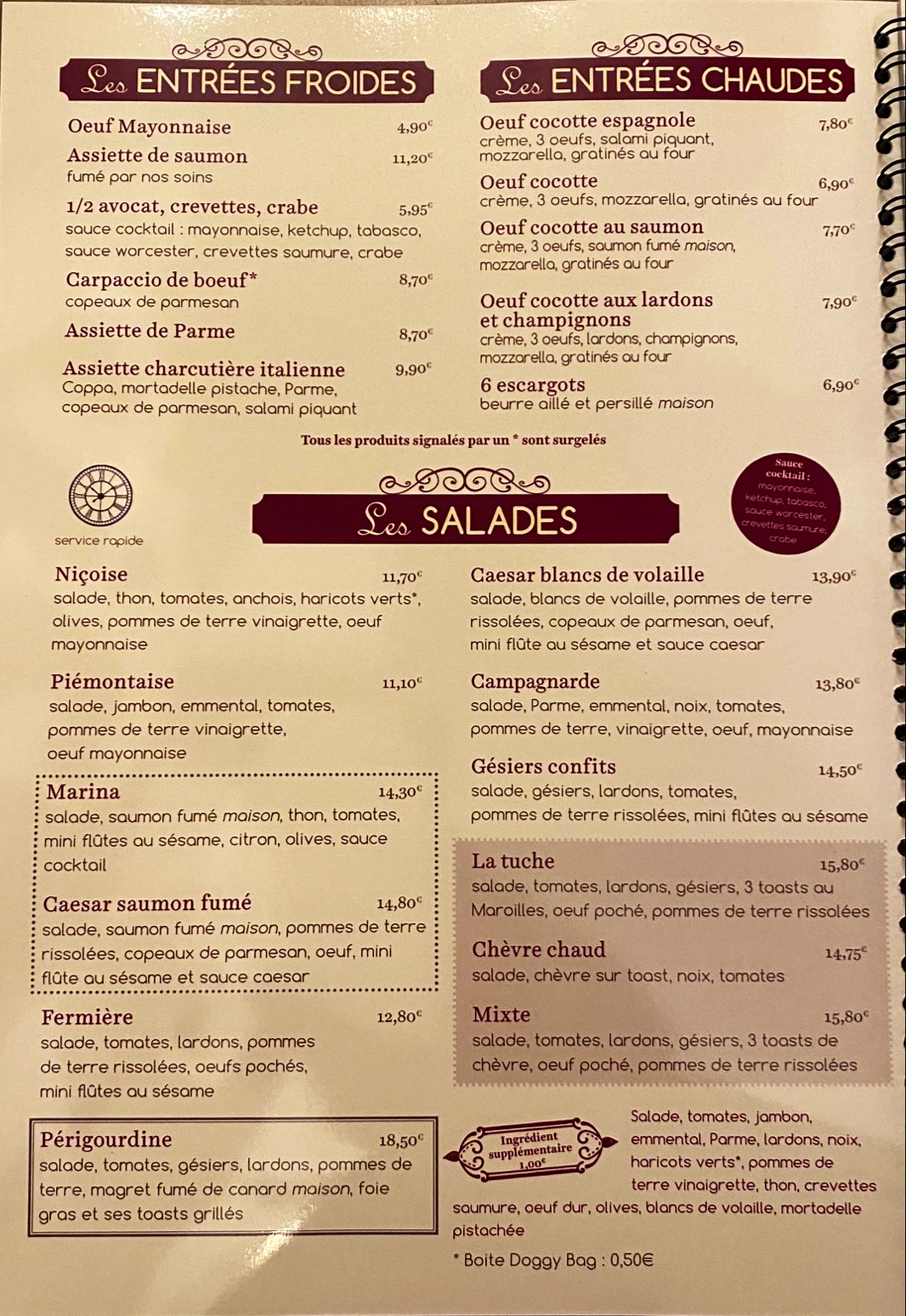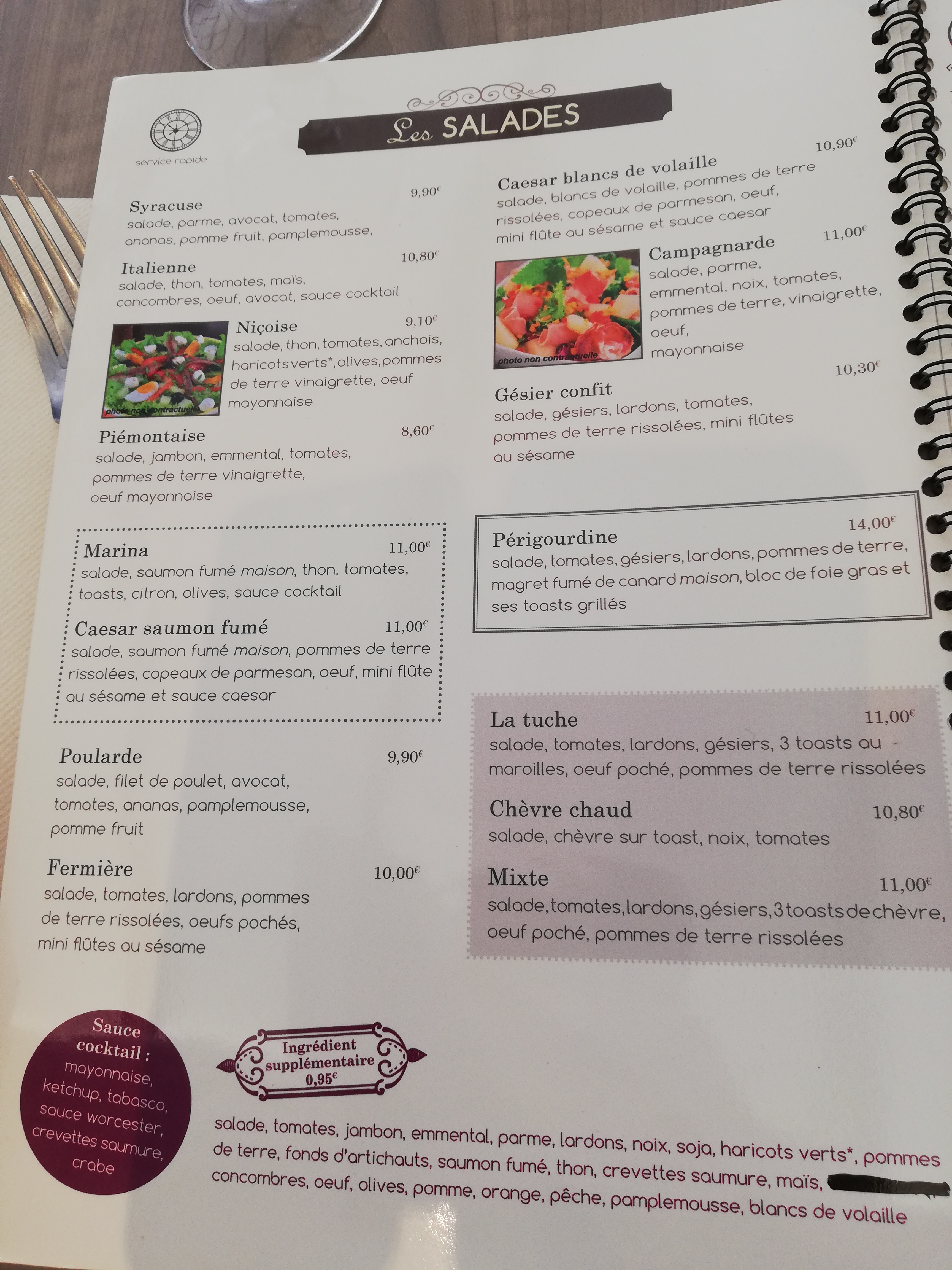 Bonne expérience ! Repas très copieux et ingrédients de qualité ! J ai pris une salade campagnarde..J ai pris la grande car j'avais très faim ! Je pense que la petite aurait suffisante je n'ai pas réussi à tout manger ! Elle était pourtant très bonne !