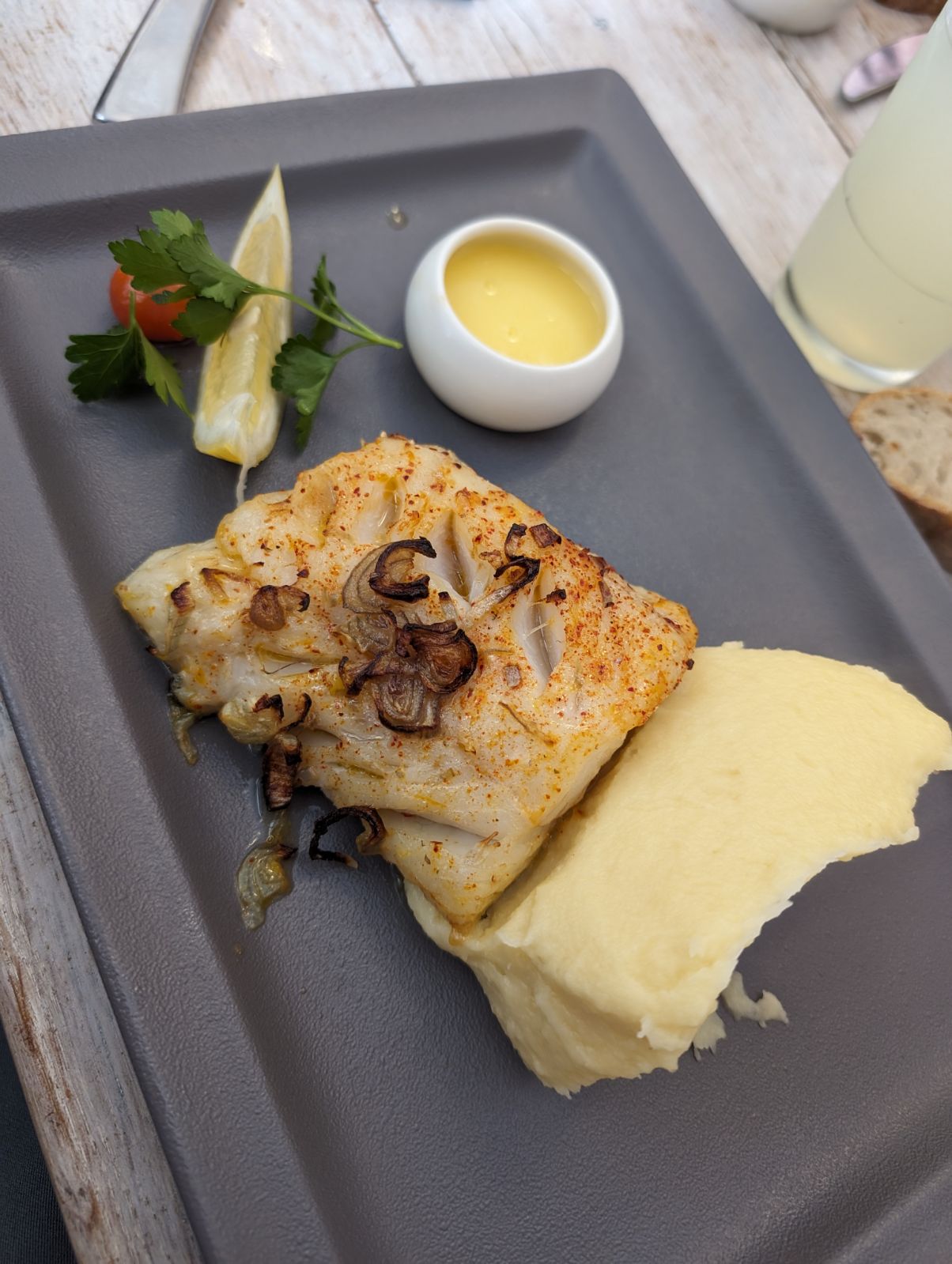Très bon poisson. Pêché localement, cuit comme il faut et accompagné d'une bonne purée maison. Prix raisonnable.