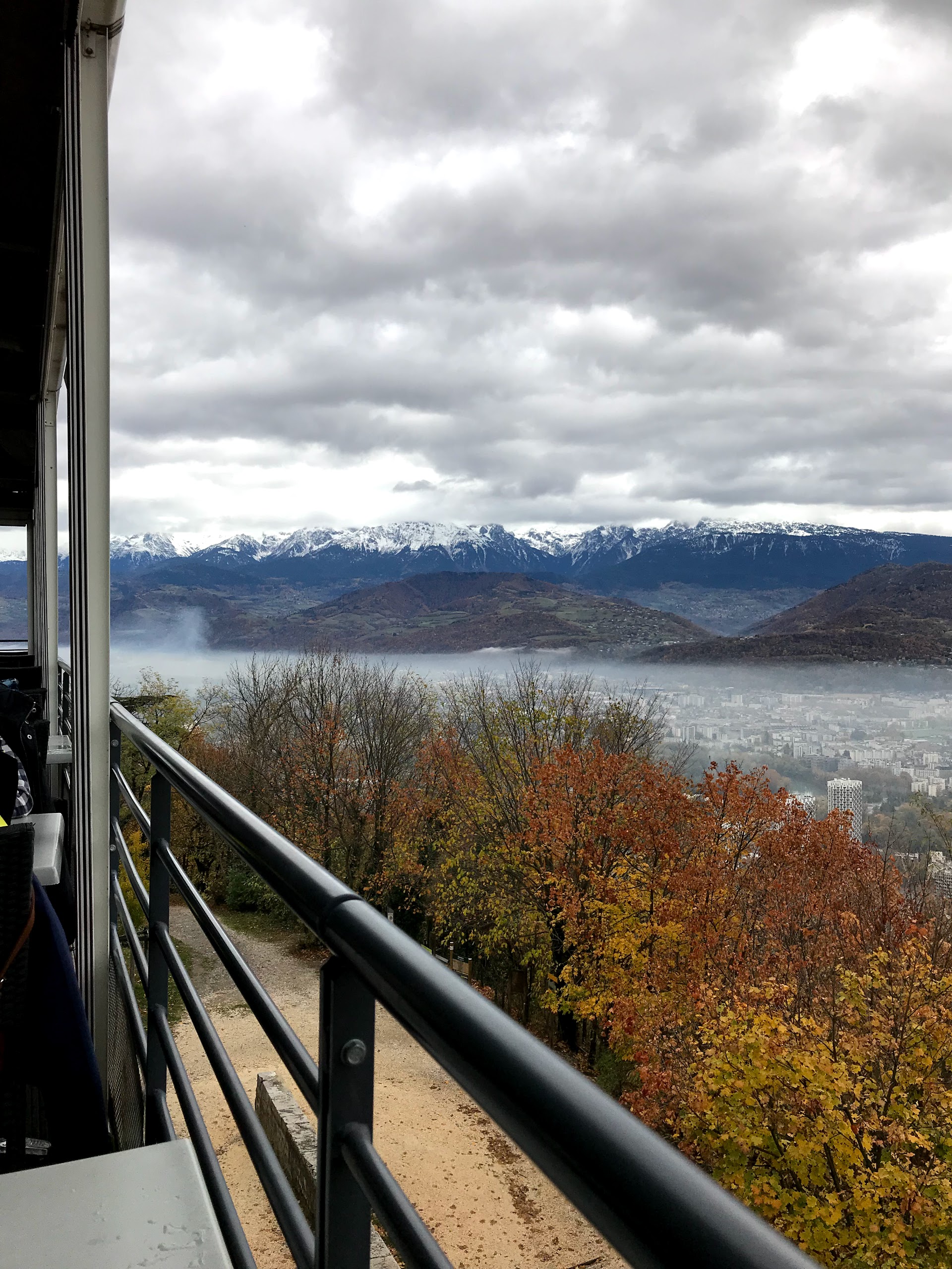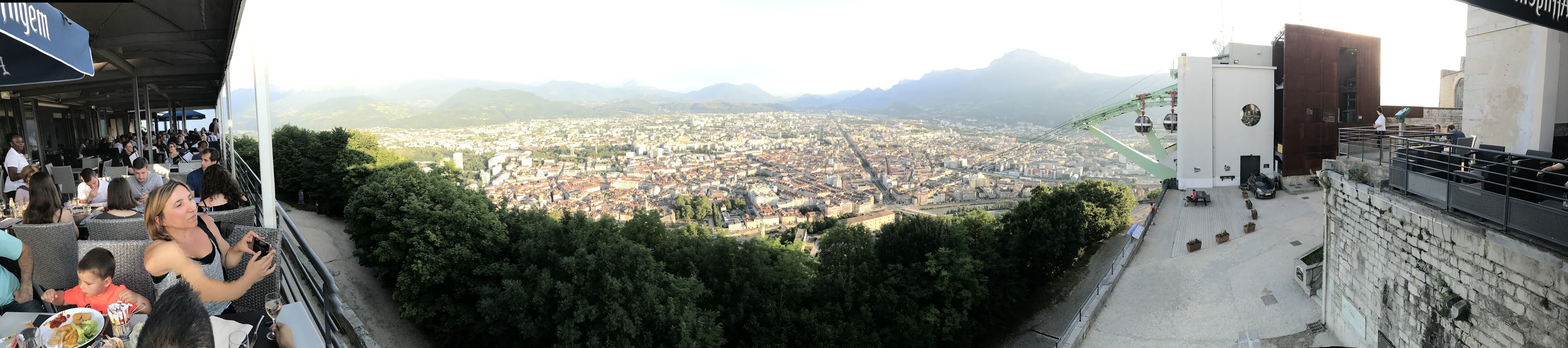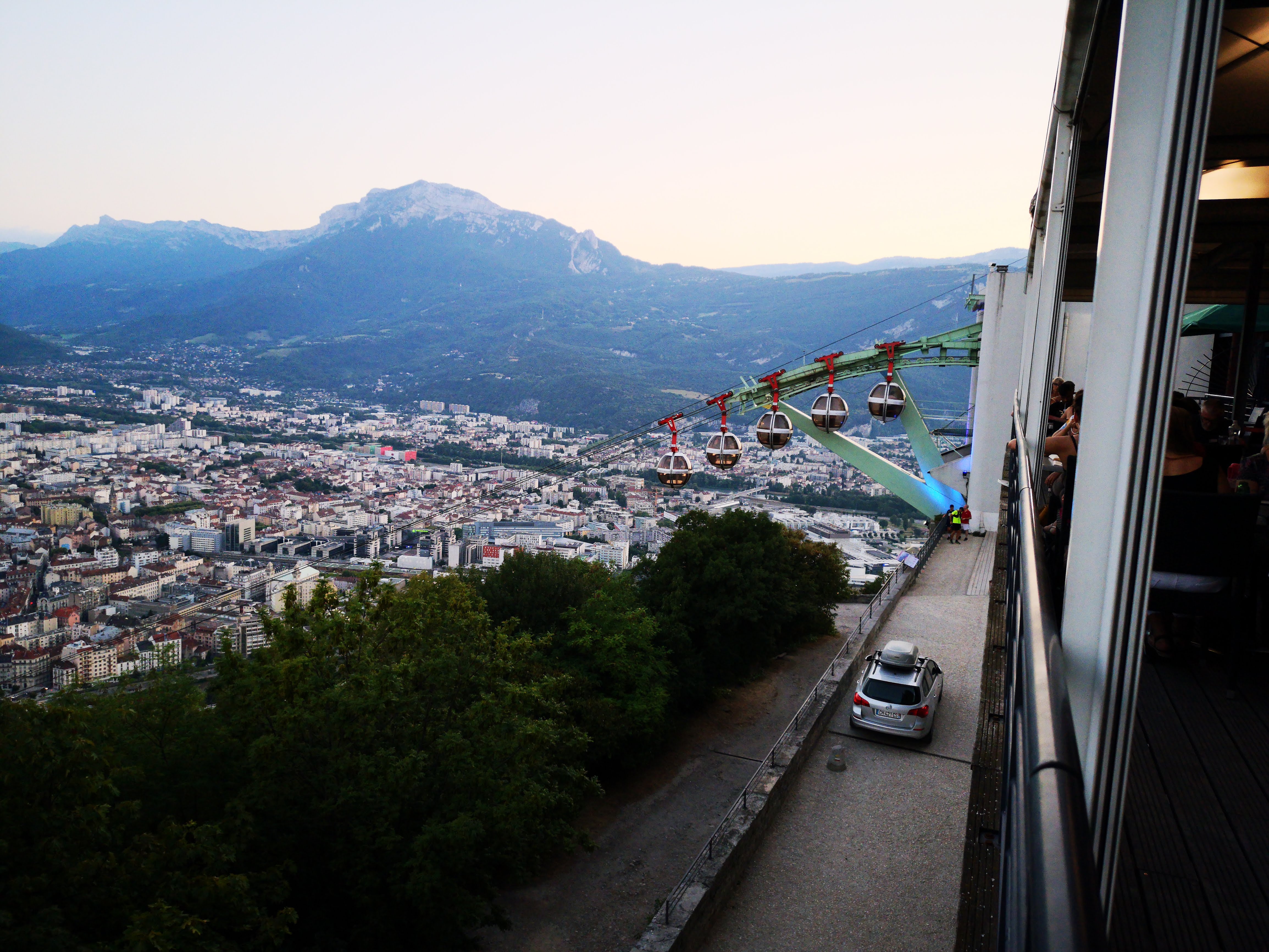 On y monte avec les bulles et on admire la vue sur Grenoble en mangeant avec plaisir