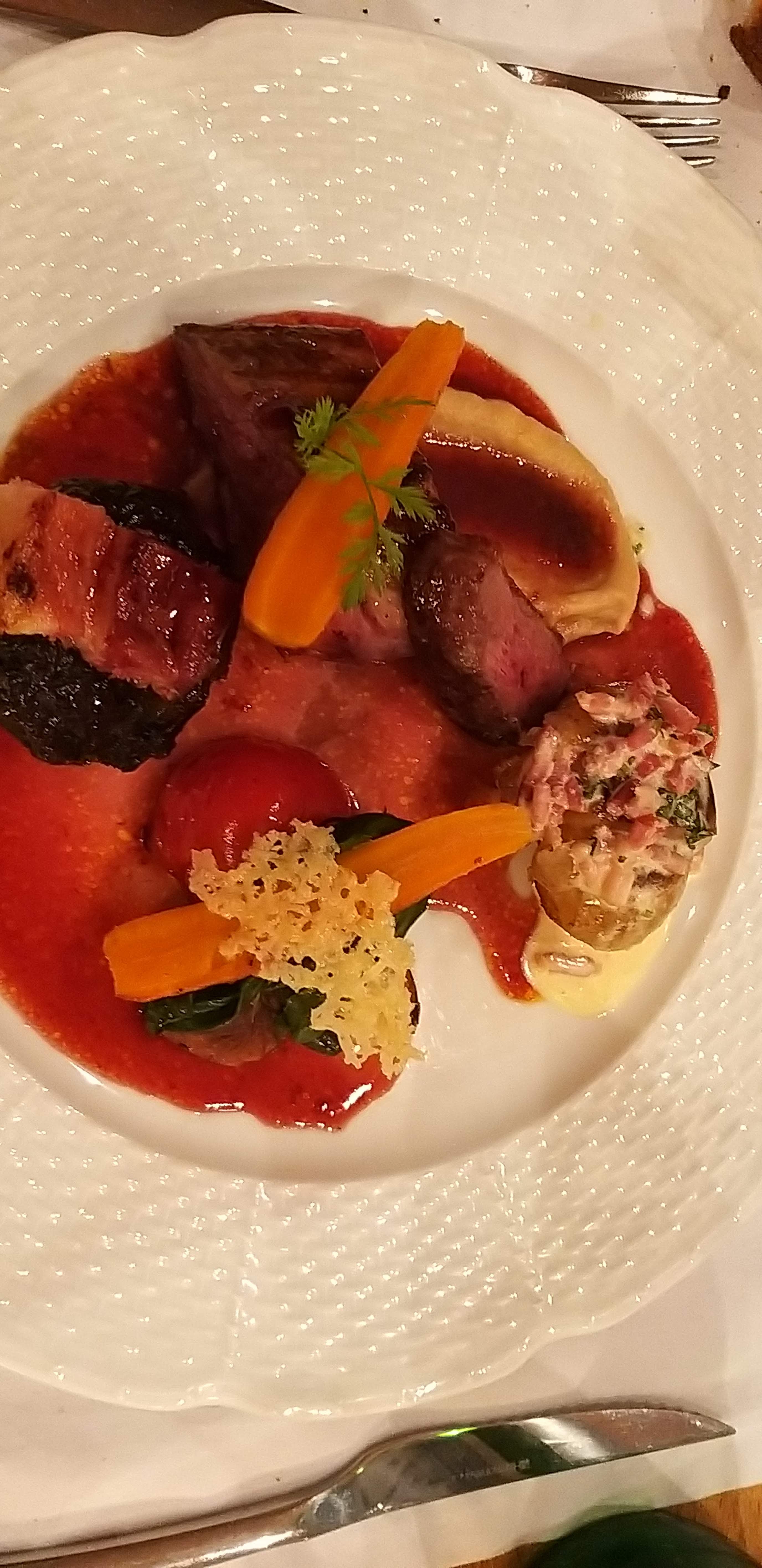 Axé sur la viande, cerf très sympa, veau cuit à mort. La seule chose que nous n'avons pas aimé, c'est que les plats d'accompagnement étaient les mêmes pour tous les plats. c'était comme un restaurant américain à cause de cela.