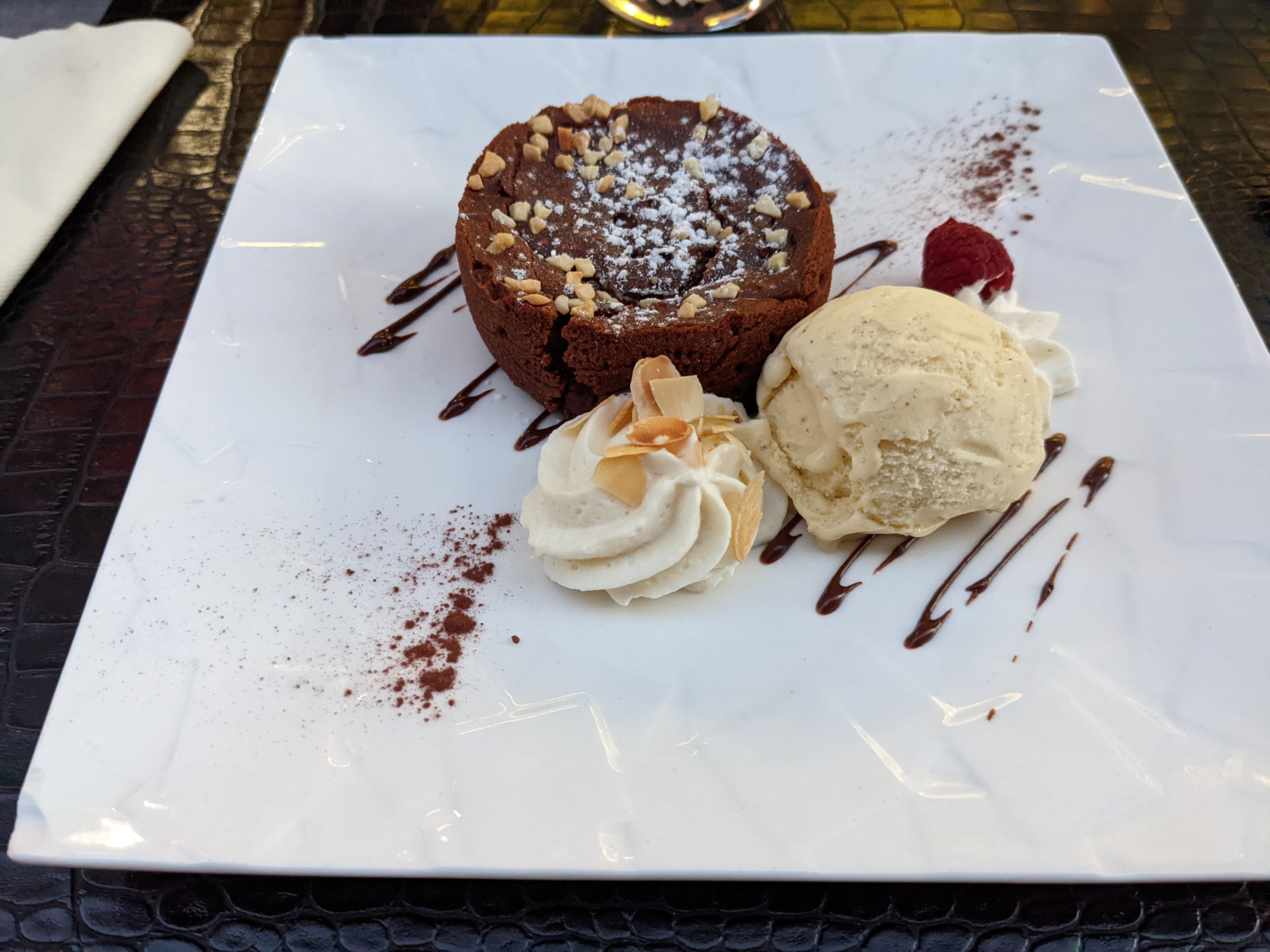 L'entrées salade dauphinoise et salade de chèvre produits frais leurs sauces sont d'une subtilitées qu'elles font voyager. En plats cevicher de gabillot et une joue de porc, pour la viande la cuisson est au top elle fond dans la bouche 🤑 pour le dessert un fondant au chocolat 🍫.je le conseille très fondant rien à dire. Vous pouvez fier aux autres commentaires