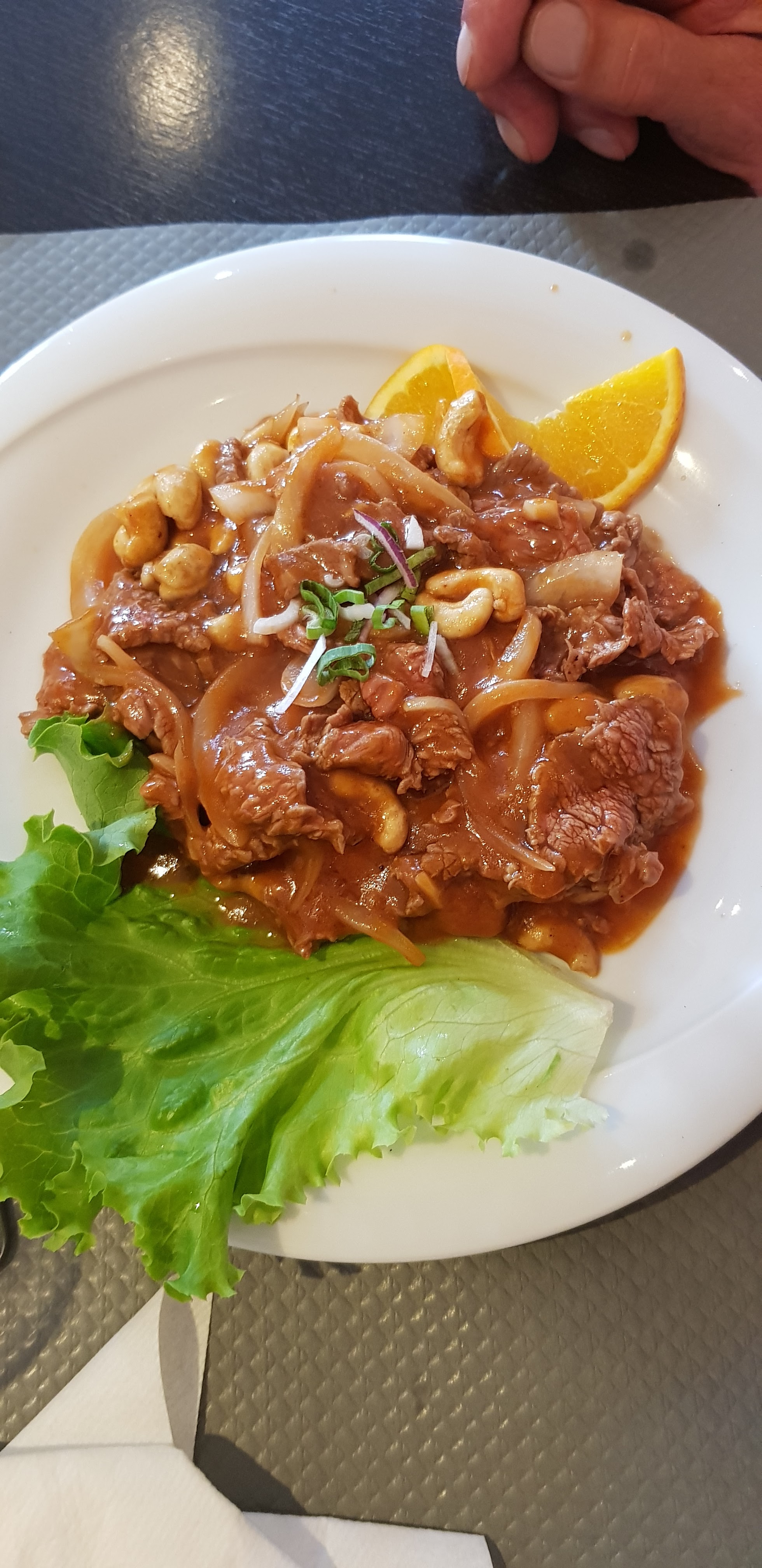 Cadre agréable, service rapide et prix à peu près correct. Le boeuf était vraiment délicieux avec les oignons. Par contre je déconseille sincèrement les nouilles en accompagnement. On s'attendait à des nouilles asiatiques mais entre la sauce au goût de Buitoni et le fait que c'était des spaghettis fins on a été un peu déçus. Pour le reste rien à dire. Les nems étaient délicieux. Merci de votre accueil.