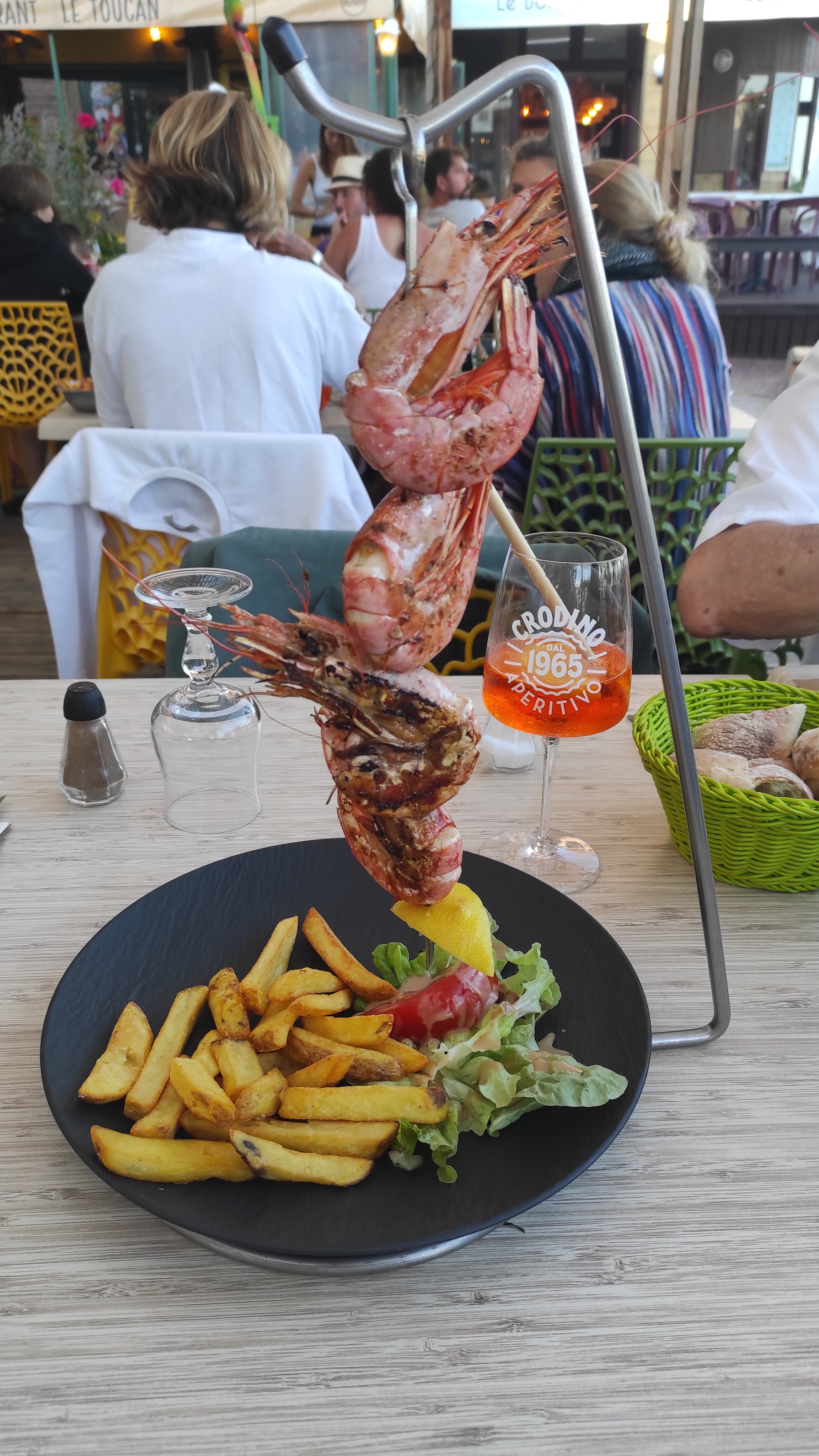 Très bonne accueil, serveurs (euses) aux ptits soins. Pour nous, brochettes du capitaine surprenantes et copieuses mmmmmm les frites Aaaahhhh j'ai oublié le cocktail : belle surprise. Moi pour finir café gourmand agréable, ma compagne, le Panama très frais.