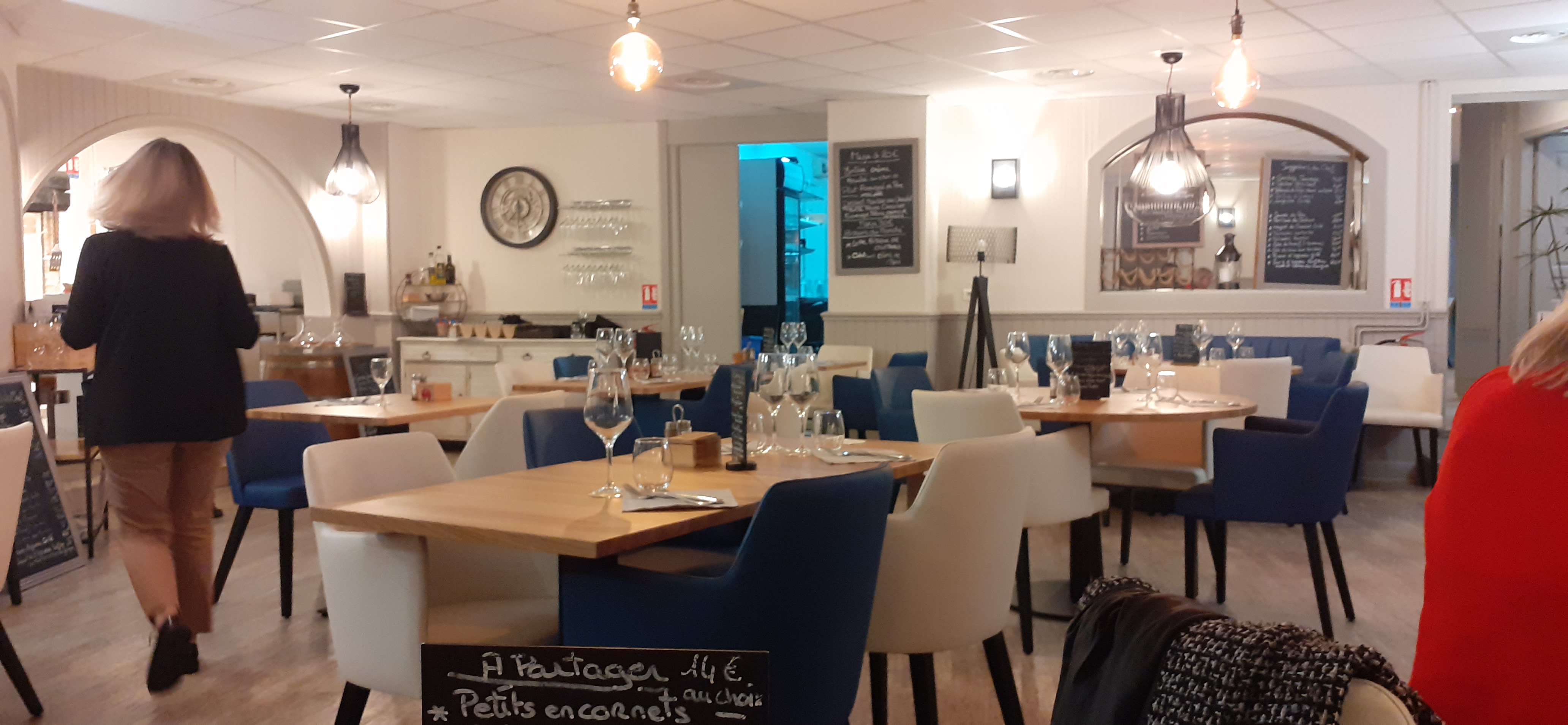 Tout d'abord , un accueil par un personnel souriant et serviable, ensuite nous avons pris un menu à 15,90 euro vins compris. Les entrées étaient copieuses, fraîches et délicieuses. Du très bon pain pour accompagner une terrine à volonté Le plat du jour était servi avec des frites fraîches( ça arrive) et des haricots verts très bien cuisinés. Les desserts étaient variés avec dans le choix une salade de fruits très frais. tout ceci servi sur des jolies nappes et des serviettes en tissus dans un décor très agréable et soigné. Un sans faute pour un prix plus que raisonnable pour une telle qualité. N'hésitez pas à faire le détour vous ne le regretterez pas