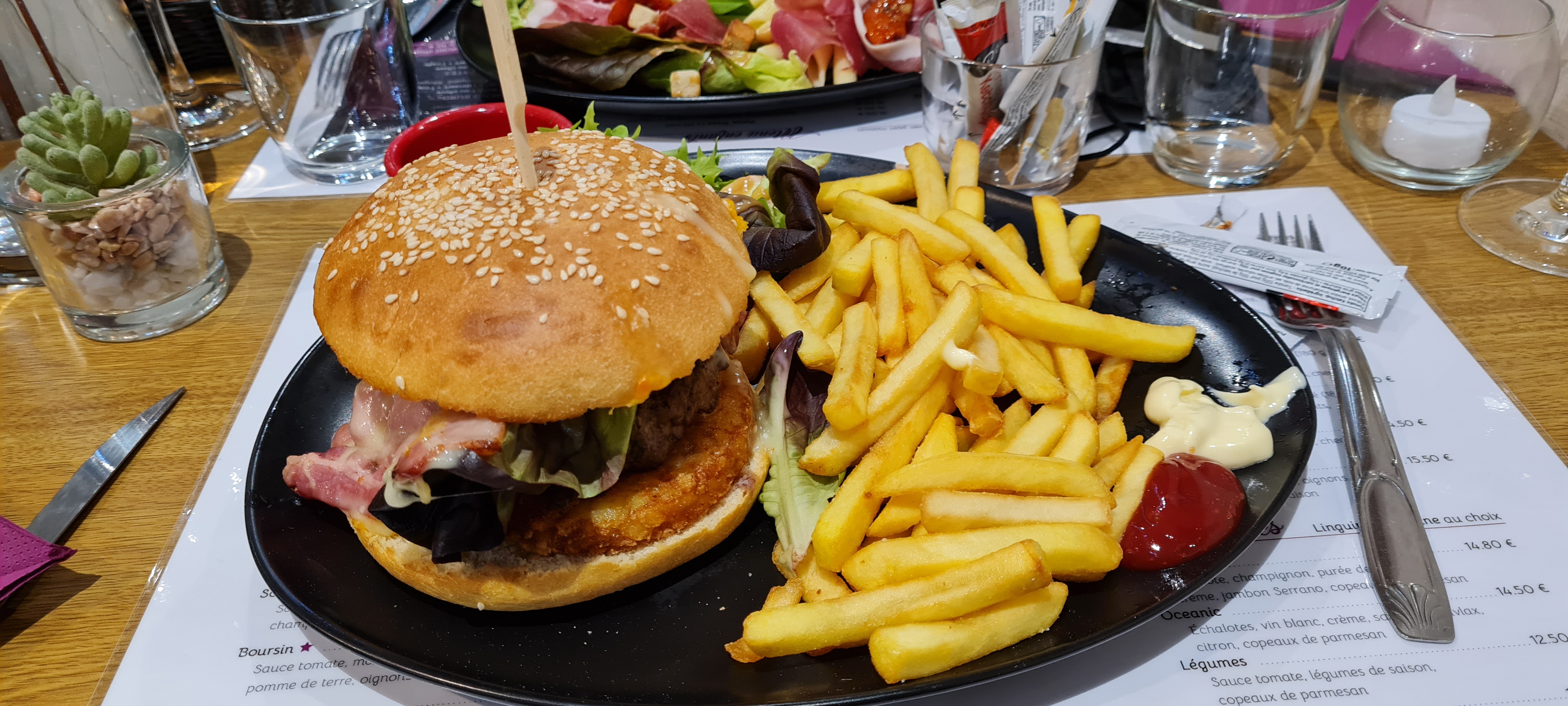 Très bon repas, servi plutôt vite. Burger frites très copieux ! Tarif plus que raisonnable, on y retournera sans hésiter !
