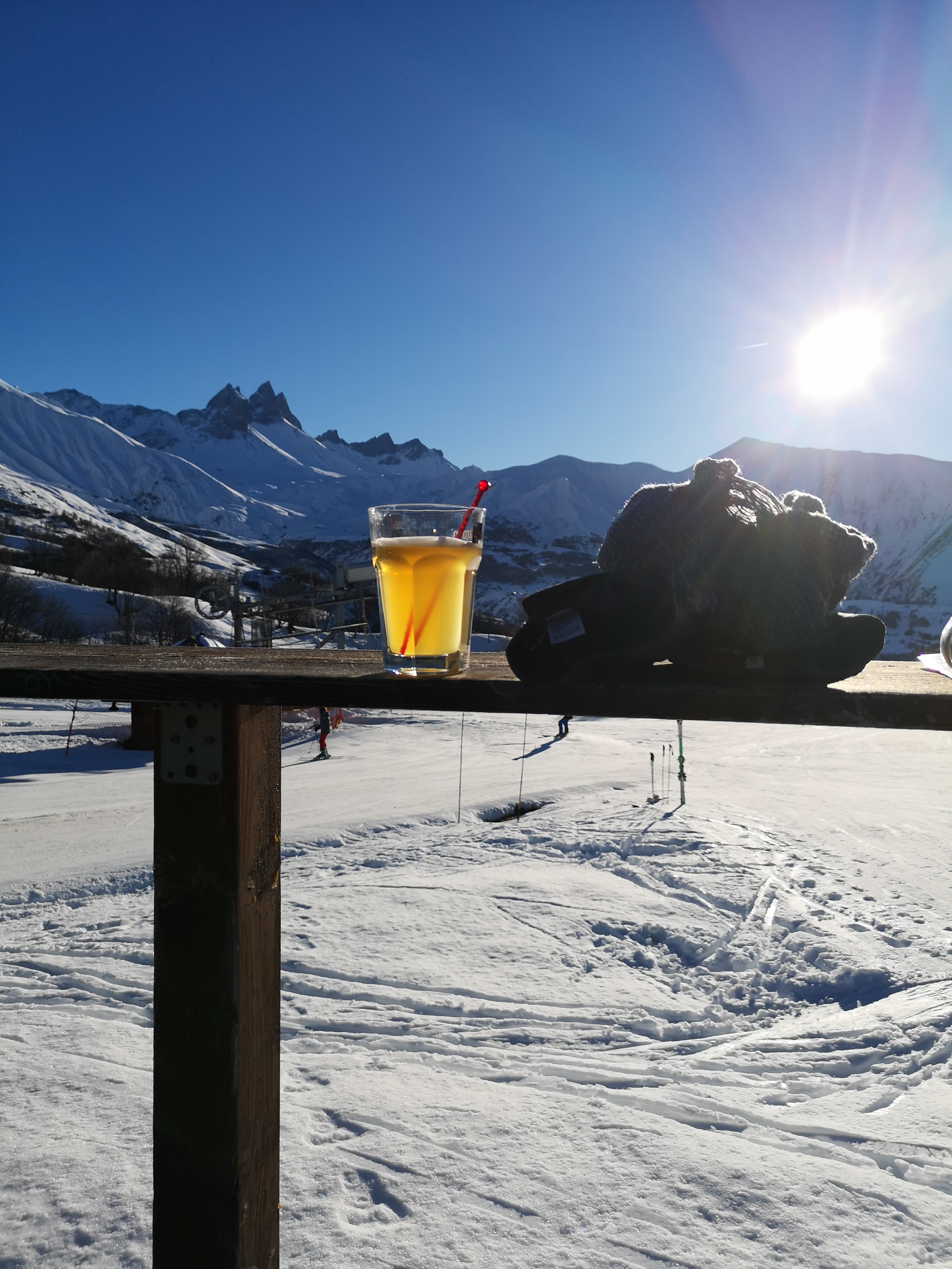 Qu'il fait bon pour y prendre un verre au soleil au bord des pistes. A partir de 16 h heure de pointe le service suit