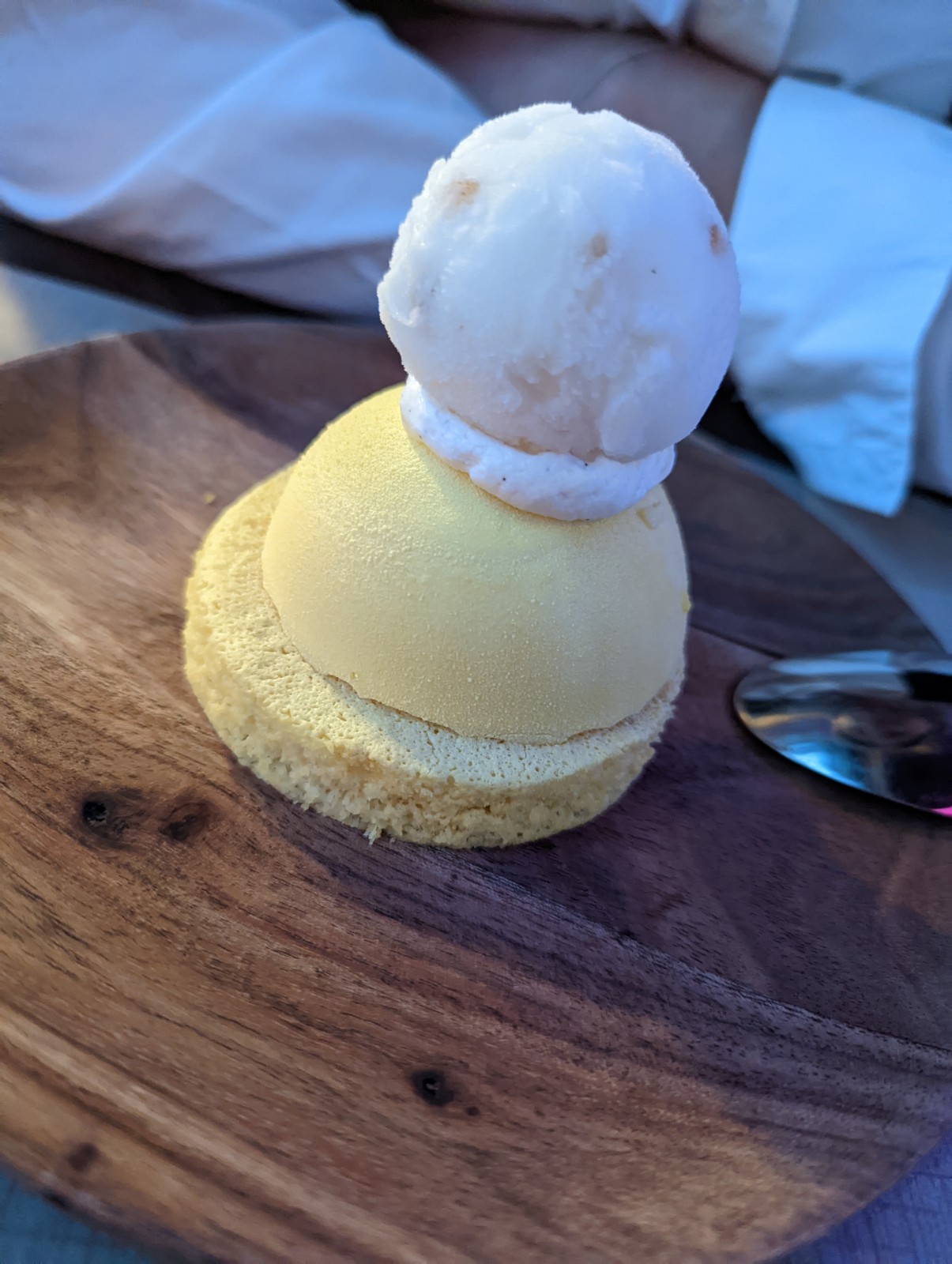 Repas frugal et raffiné que des bons produits locaux , bravo le changement expérience à renouveller agréable soirée