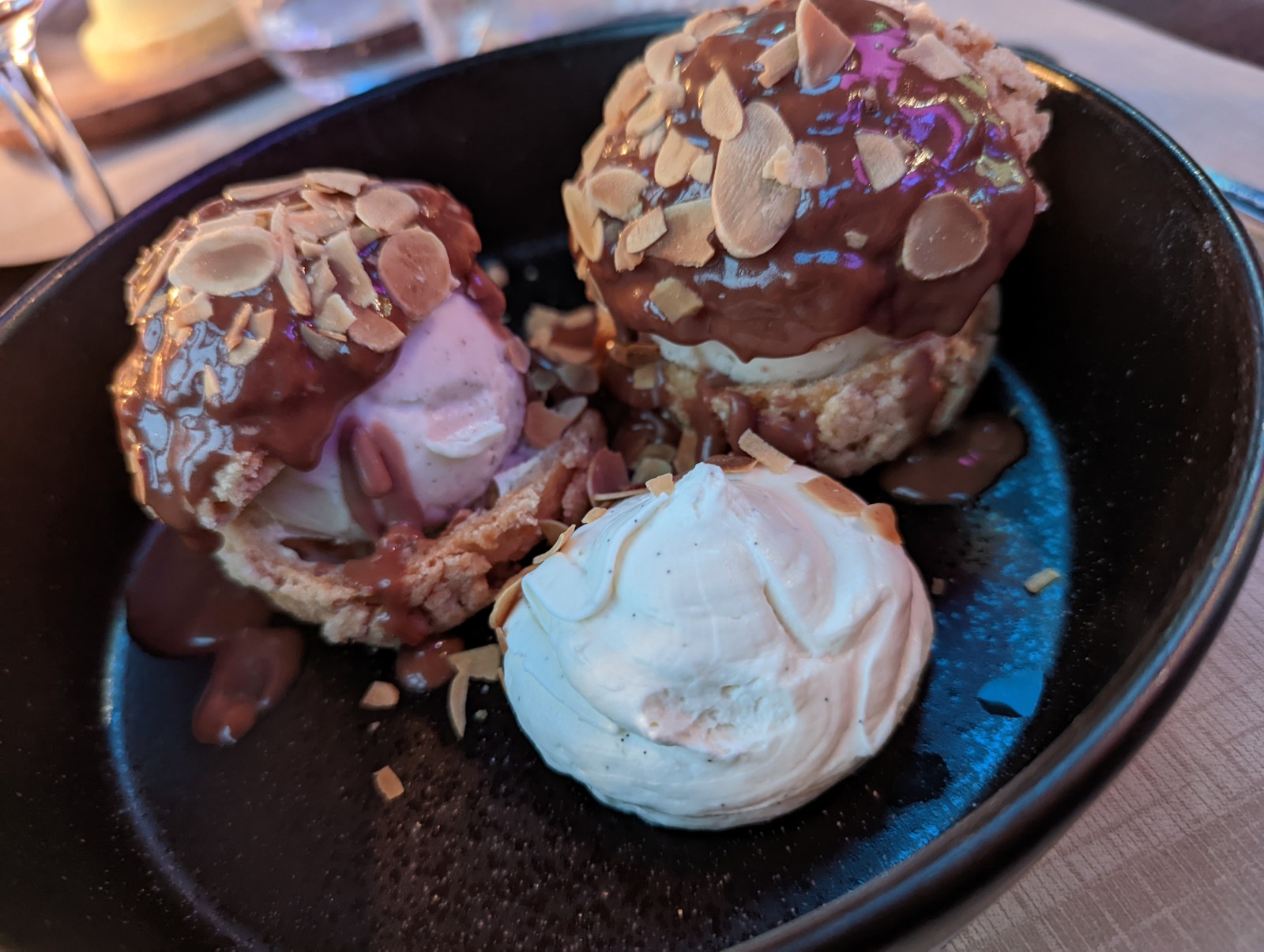 Une Pinã colada, un mojito et deux formules le ❤️ avec un fish and chips, une bavette, de profiteroles et l'agrume pour seulement 61,50. Nous sommes ressortis repu. Excellent rapport qualité,quantité prix.Service doux et a l'écoute.