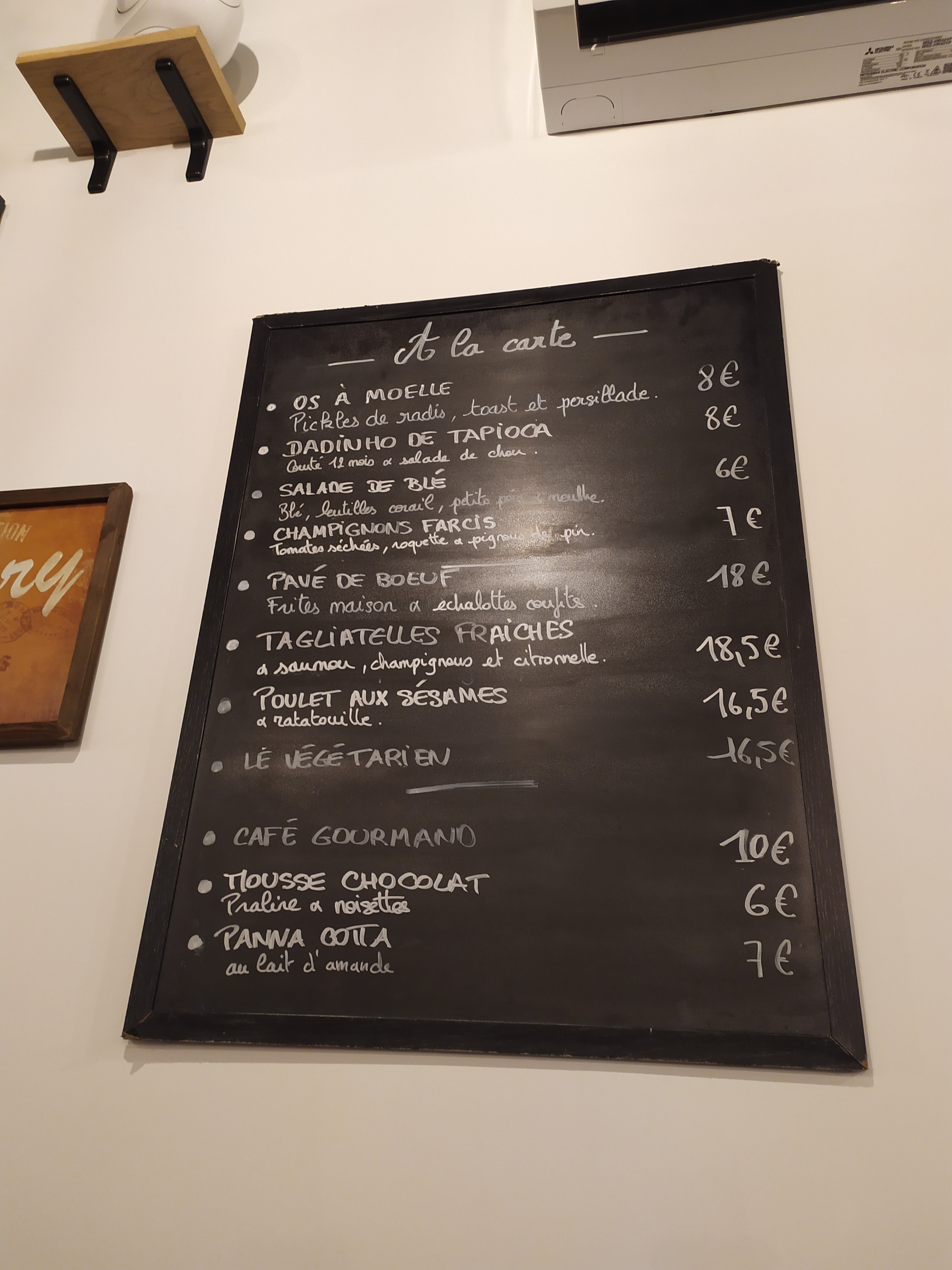 La carte est simple mais efficace. Les plats sont bons (et le burger est l'un des meilleurs que j'ai mangé) ! Ne surtout pas hésiter pour des repas amoureux ;)