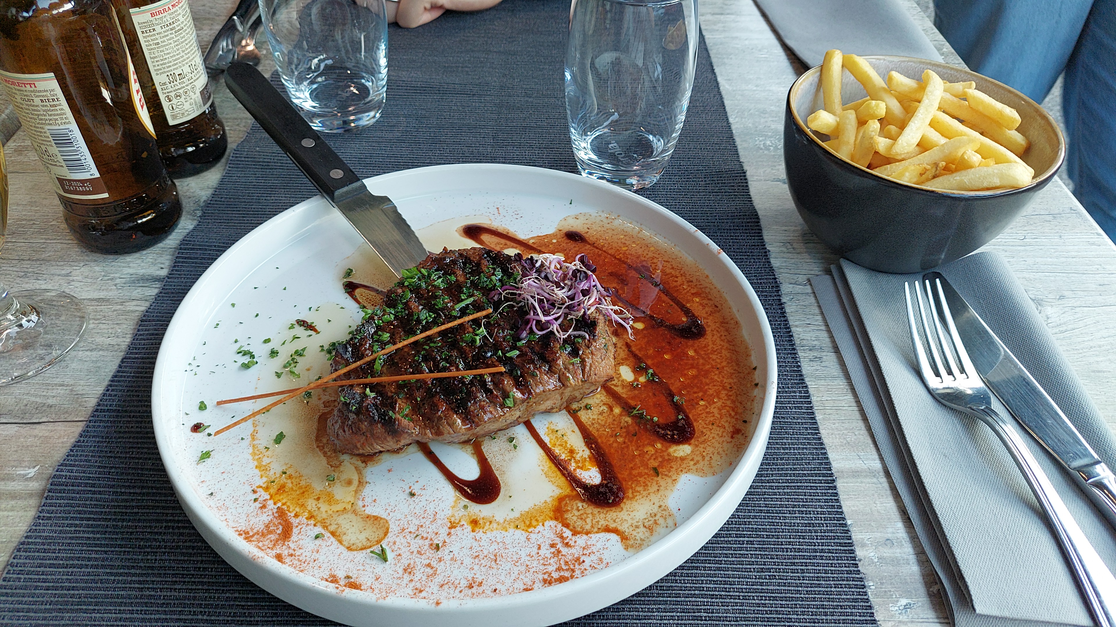 Tout simplement génial ! Déjeuner d’affaires ce jour. Brochette de bœuf pour moi et pâtes à la carbonara pour mon invité. La viande est de très grande qualité, la cuisson respectée, la sauce maison… tout simplement succulent ! Prix très correct pour la qualité et le service (mention spéciale pour le serveur en terrasse, très pro et très sympa !) Ce restaurant est peut-être « excentré » par rapport aux autres mais je le recommande vivement !