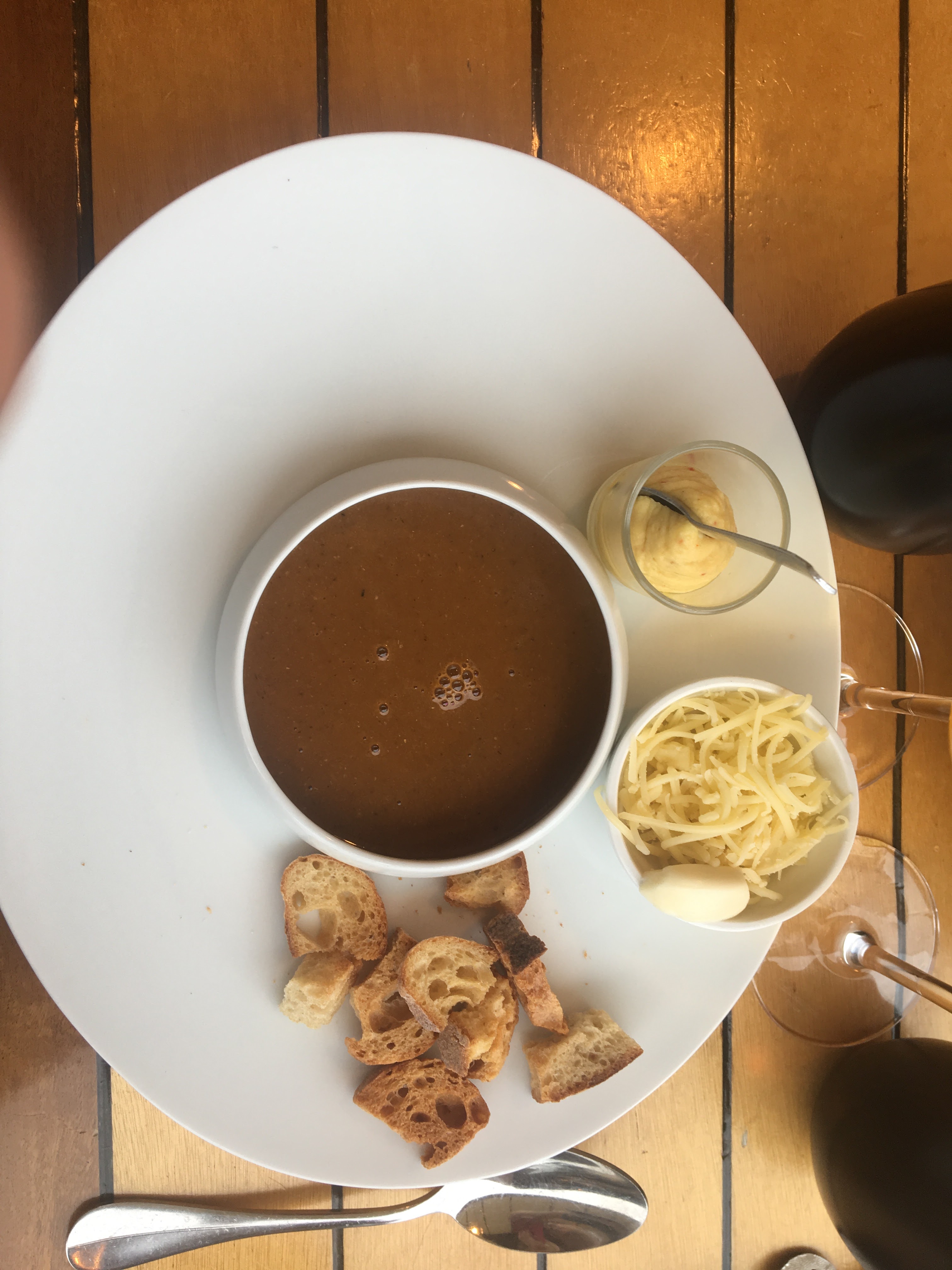 Soupe de poissons bonne, un risotto aux crevettes baignant dans de l'huile et un pain perdu qui ressemblait à tout sauf à un pain perdu, qui plus est, sans aucun gout. Avec une demi bouteille de vin blanc 1er prix : 78 € pour 2. Beaucoup trop cher surtout si l'on tient compte de l'accueil de la personne qui prend les commandes. Certainement la patronne, sinon je ne vois pas comment elle pourrait garder son emploi.