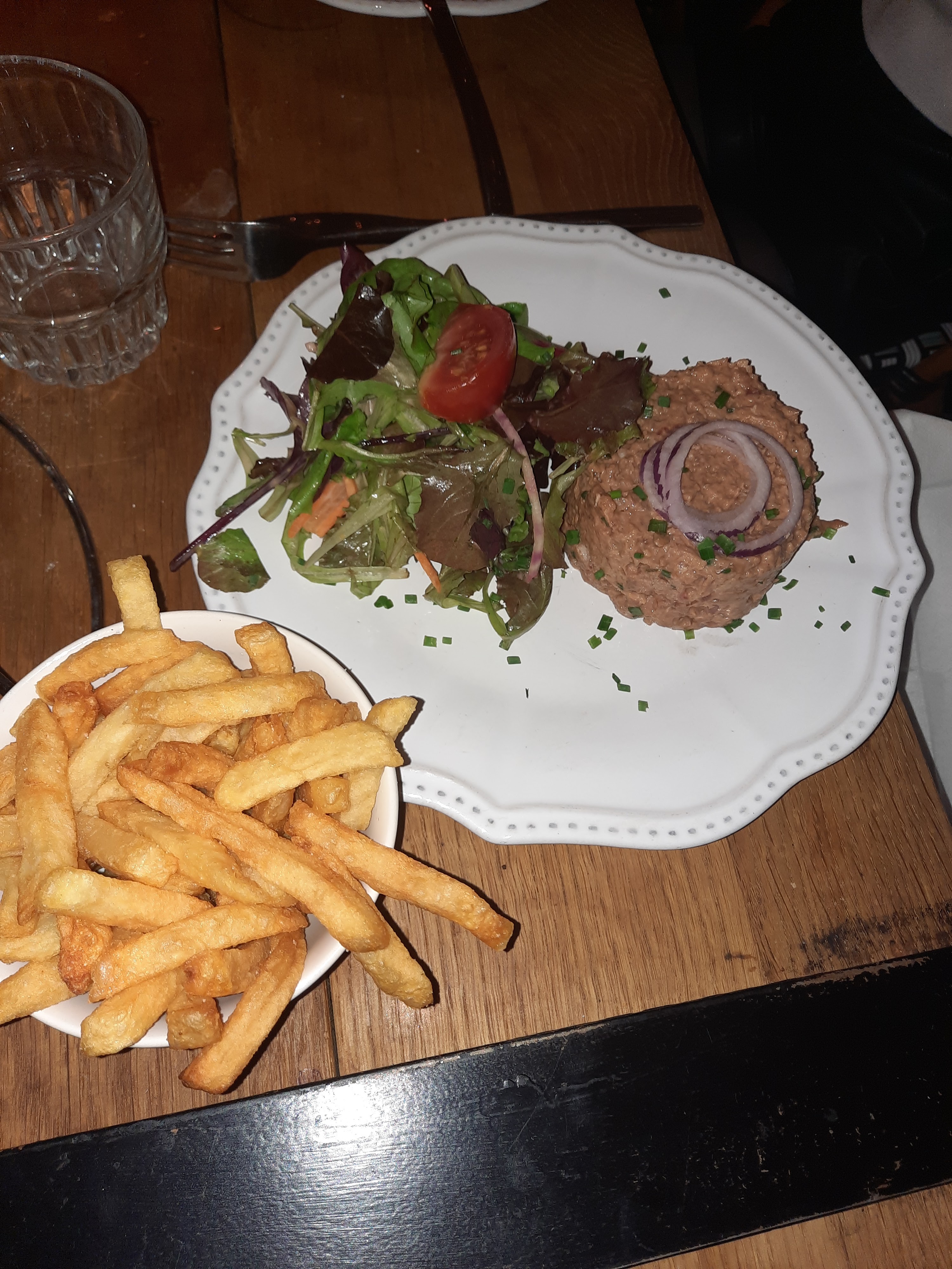 Ami des bonnes tables, passe ton chemin. Service catastrophique, serveurs désagréables, salle de restaurant enfumée parce que la porte de la terrasse doit rester ouverte, on mange dans les courants d’air en plein hiver, frites en carton qui dégoulinent de gras (il faut y mettre du sien pour rater des frites), bref une expérience à ne pas réitérer.